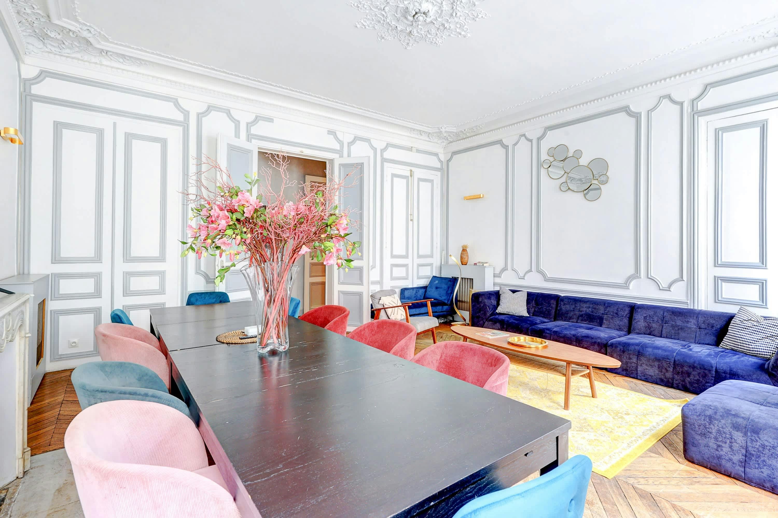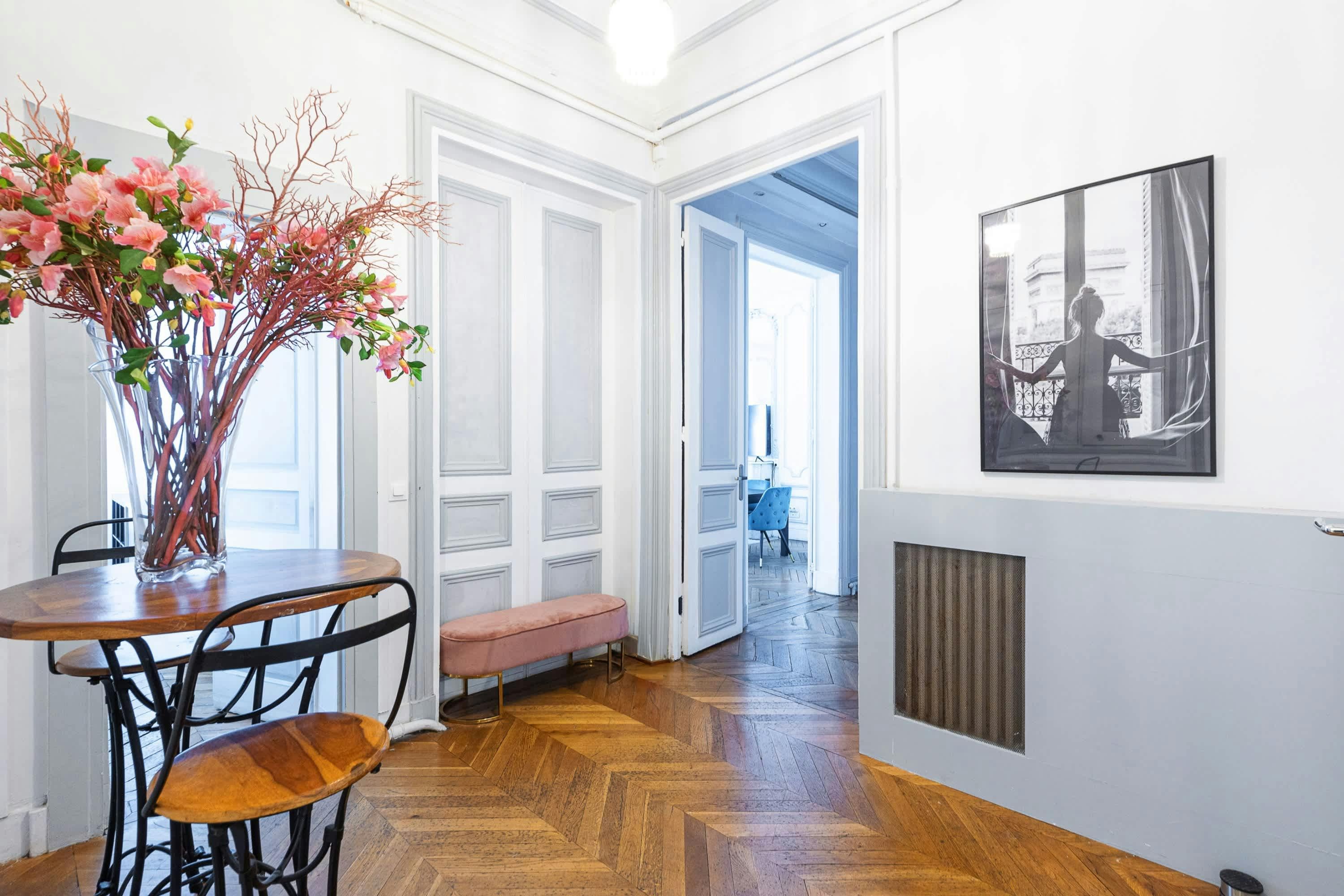 Conveniently situated mere minutes away from landmarks like the Champs-Élysées and the Arc de Triomphe, this classically elegant apartment puts you right in the heart of Paris. Stroll to the Seine, meander around Montmartre or take your pick of classic Parisian cafés and eateries just around the corner. Perfect for families or groups of up to 10, the apartment includes a bright, spacious living area, three bedrooms and three bathrooms. With high-speed Wi-Fi, a flat-screen TV, and thoughtful amenities, this apartment makes exploring Paris effortless and comfortable.