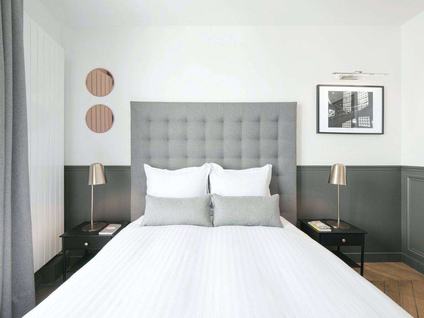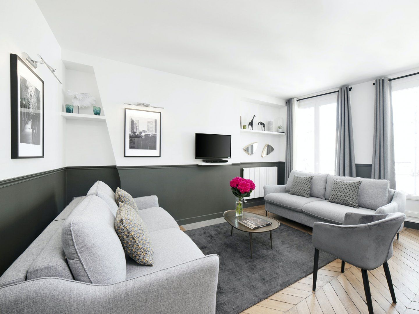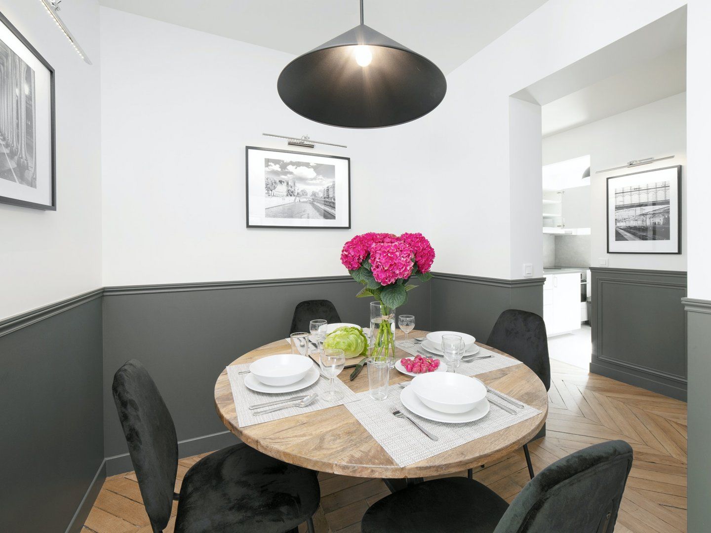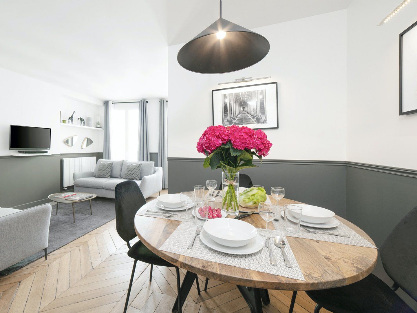 Stylishly modern but with plenty of classical French charm in its parquet floors, chic furnishings, chiminea and French windows, this top-floor apartment in Paris’ Grands Boulevards neighbourhood provides a comfortable, central base from which to explore the city. We love the sleek grey colour palette here that feels very haute-couture while the bistro-inspired dining area is all set to host breakfasts over fresh coffee and croissants or sociable soirées with the bottle of wine provided. You’ll love the views of the Sacré-Cœur Basilica from the balcony, while the two bedrooms are elegantly pared backed and offer 10th arrondissement views from their wrought-iron Juliet balconies. With a glossy kitchen and en-suite bathrooms equipped with luxurious rainfall showers, you’re all set for a relaxing, carefree stay in the City of Light. When you’re ready to explore your surroundings, you’ll find the Opéra Garnier a twenty-three-minute walk away, the vibrant Marais district twenty minutes away on foot and the Canal Sain-Martin a fifteen-minute stroll away. For an even more delicious way to spend an afternoon, make a beeline for the Musée du Chocolat, a five-minute walk from your home.