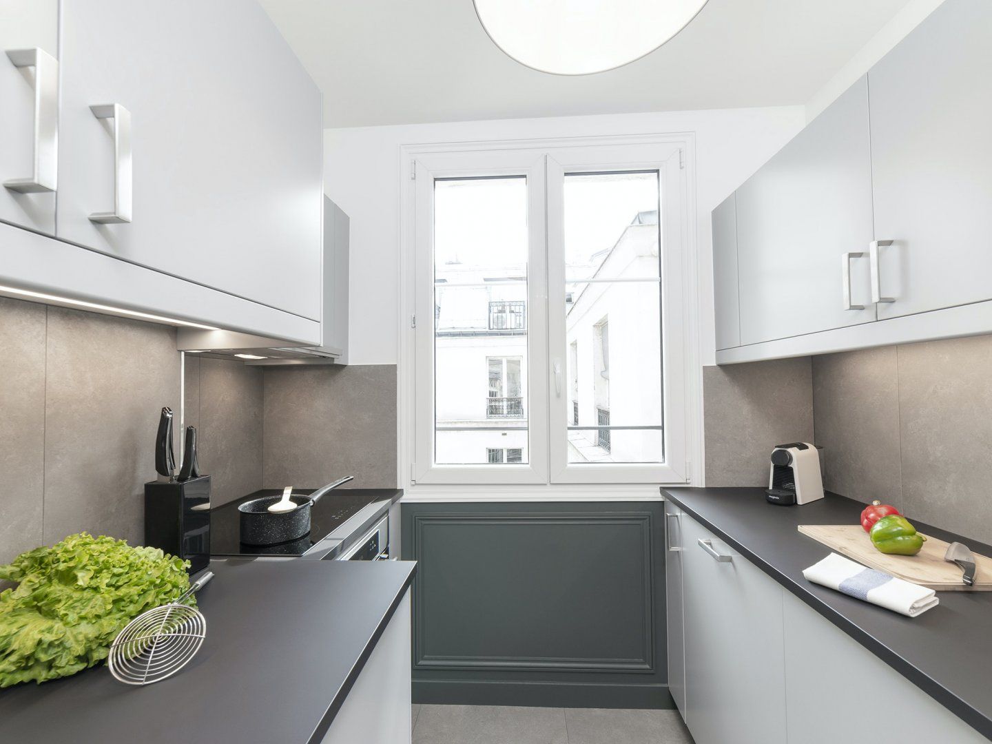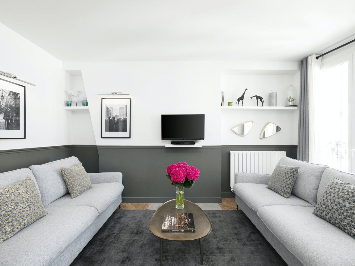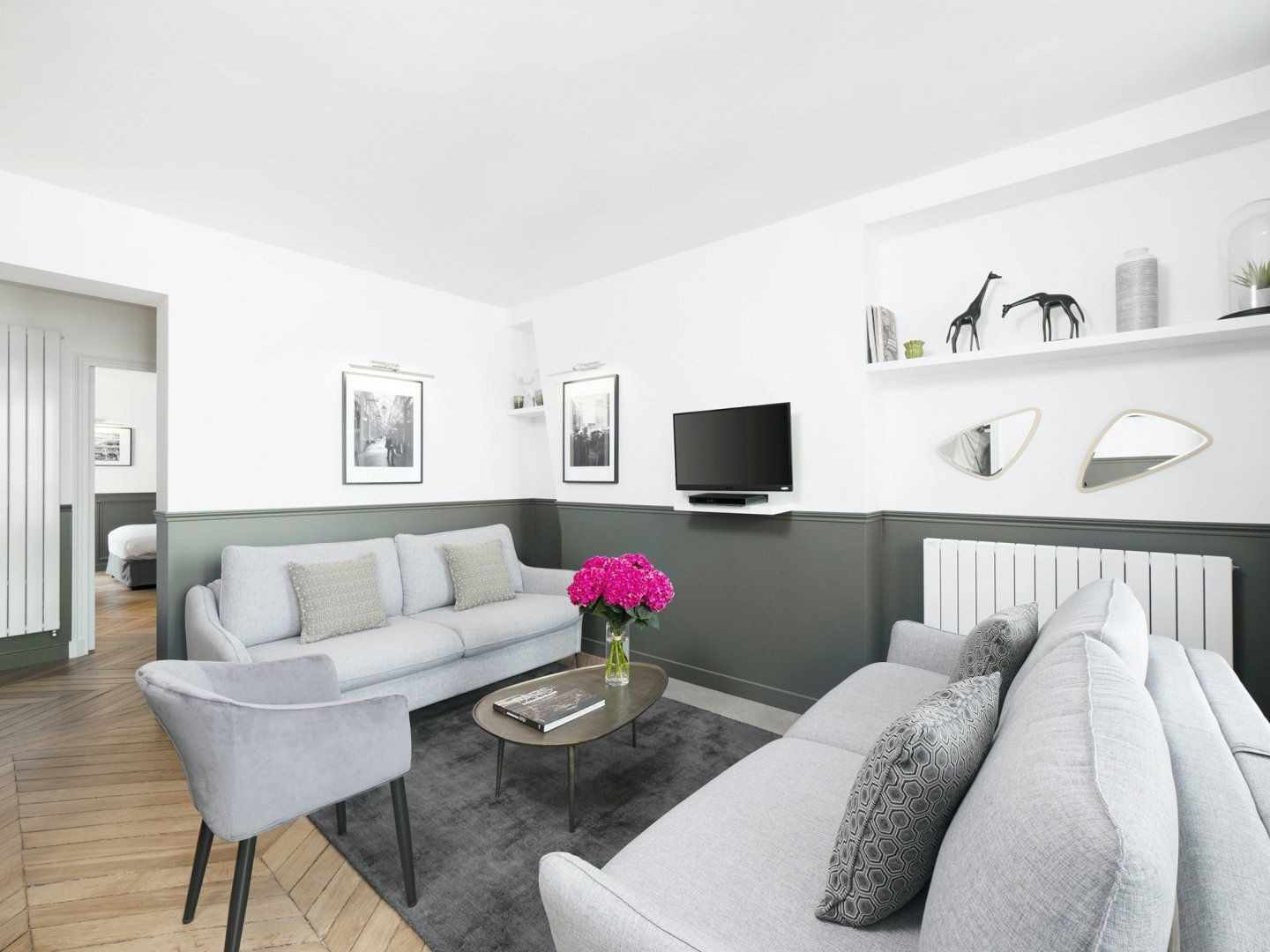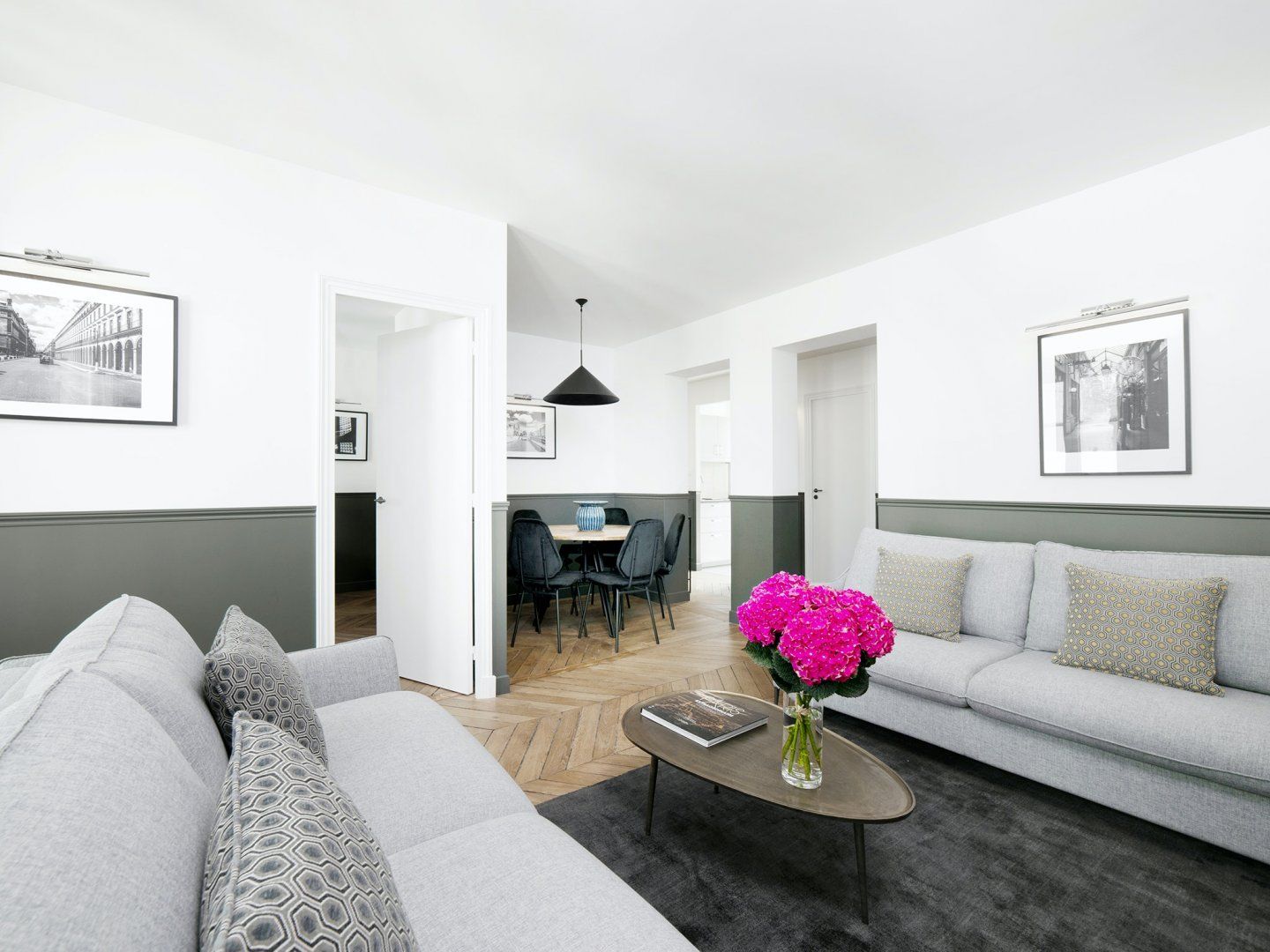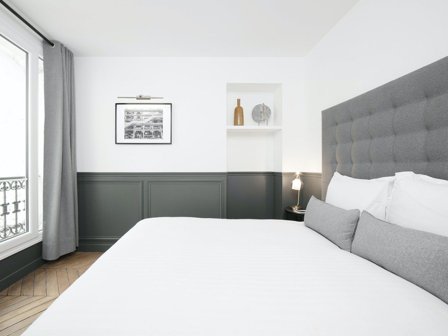 Stylishly modern but with plenty of classical French charm in its parquet floors, chic furnishings, chiminea and French windows, this top-floor apartment in Paris’ Grands Boulevards neighbourhood provides a comfortable, central base from which to explore the city. We love the sleek grey colour palette here that feels very haute-couture while the bistro-inspired dining area is all set to host breakfasts over fresh coffee and croissants or sociable soirées with the bottle of wine provided. You’ll love the views of the Sacré-Cœur Basilica from the balcony, while the two bedrooms are elegantly pared backed and offer 10th arrondissement views from their wrought-iron Juliet balconies. With a glossy kitchen and en-suite bathrooms equipped with luxurious rainfall showers, you’re all set for a relaxing, carefree stay in the City of Light. When you’re ready to explore your surroundings, you’ll find the Opéra Garnier a twenty-three-minute walk away, the vibrant Marais district twenty minutes away on foot and the Canal Sain-Martin a fifteen-minute stroll away. For an even more delicious way to spend an afternoon, make a beeline for the Musée du Chocolat, a five-minute walk from your home.