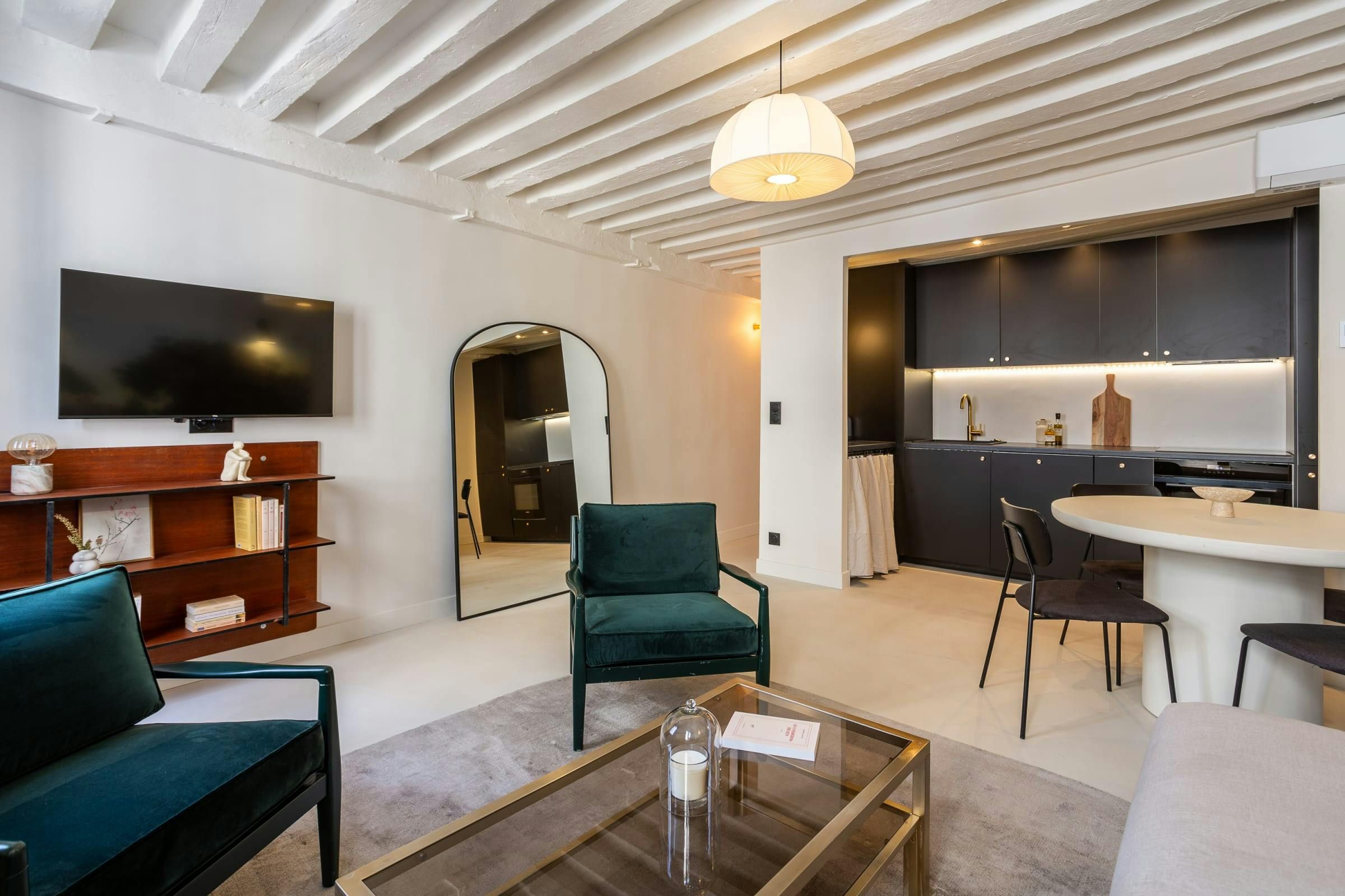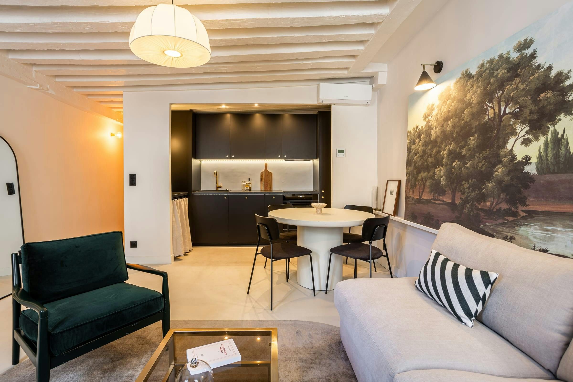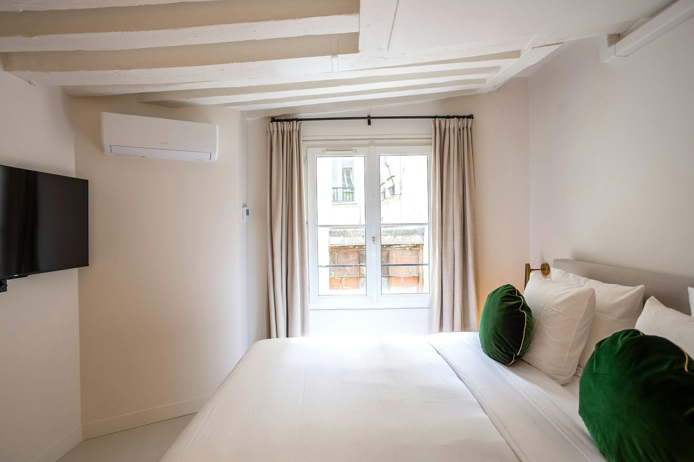 Situated in the vibrant Montorgueil district, you'll be surrounded by bakeries, cheese shops, wine merchants and Parisian bistros, so it's ideal for foodies. The area has excellent transport links to the rest of the city, so exploring is easy. Attractions within walking distance include Centre Pompidou, the Grands Boulevards, and the Marais district. Back at this elegant, compact apartment with its character features, you’ll find a well-equipped kitchen for cooking some French cuisine. The open-plan living area also has a sofa bed for guests three and four. This place is ideal for a family, couples or business professionals seeking an authentic slice of the City of Light.