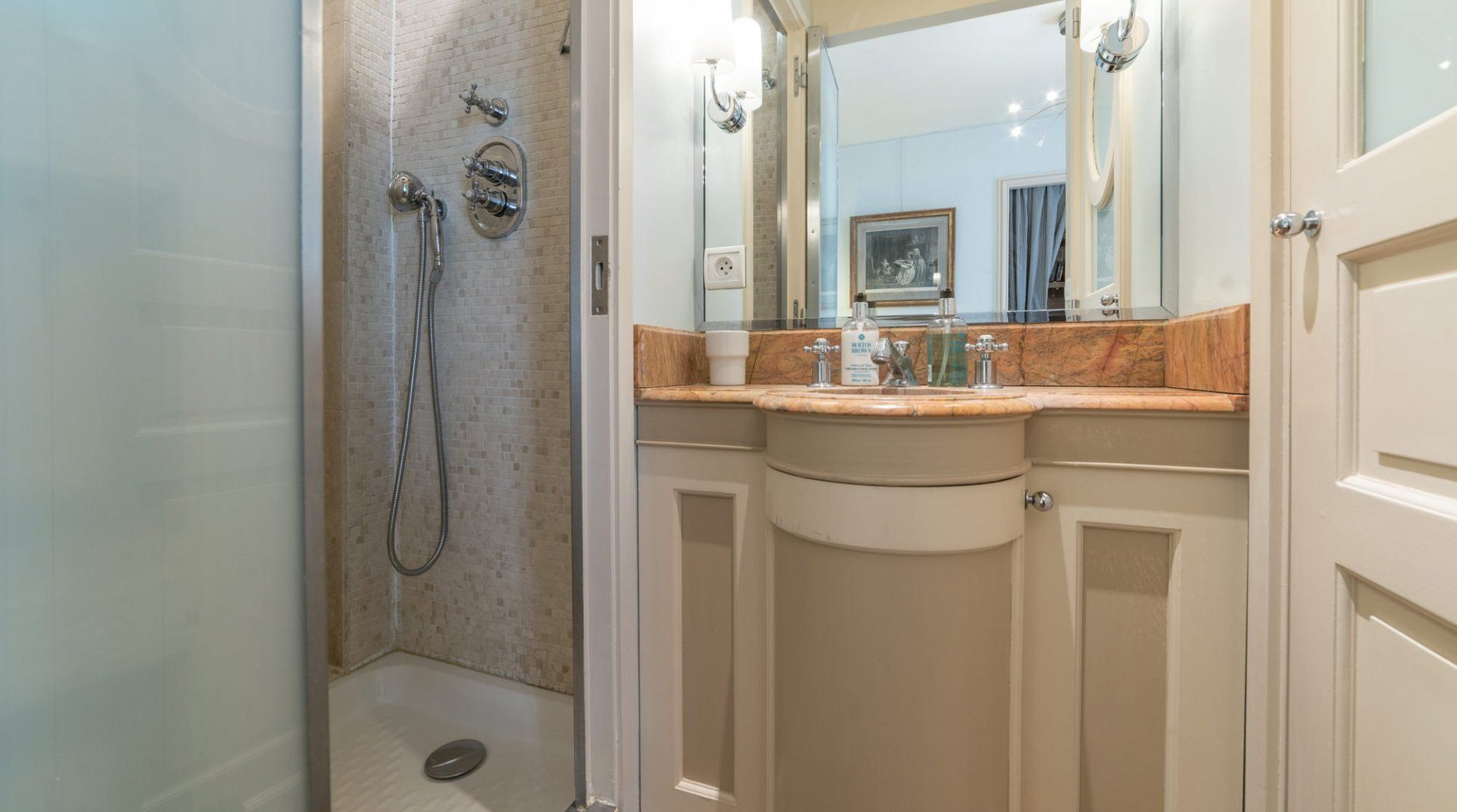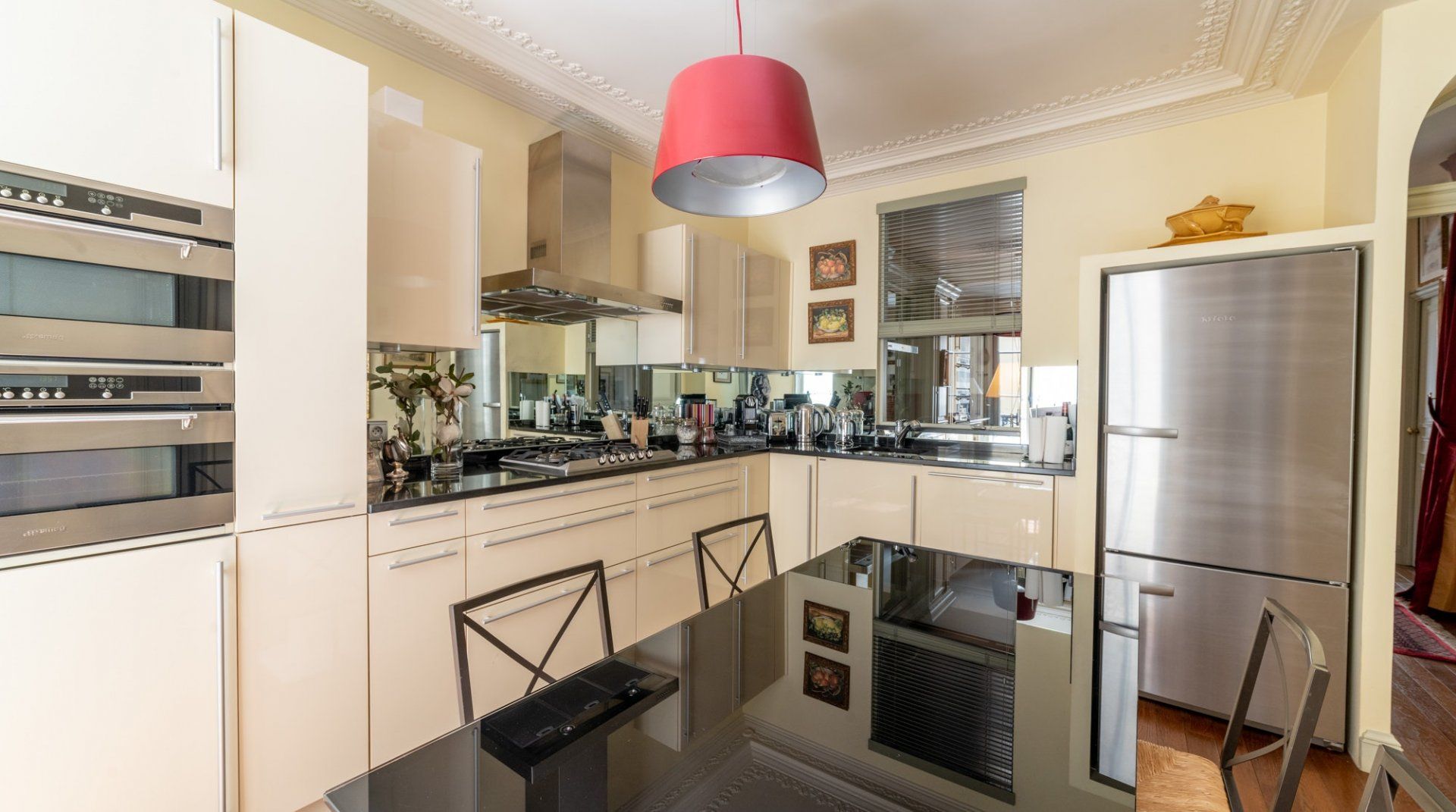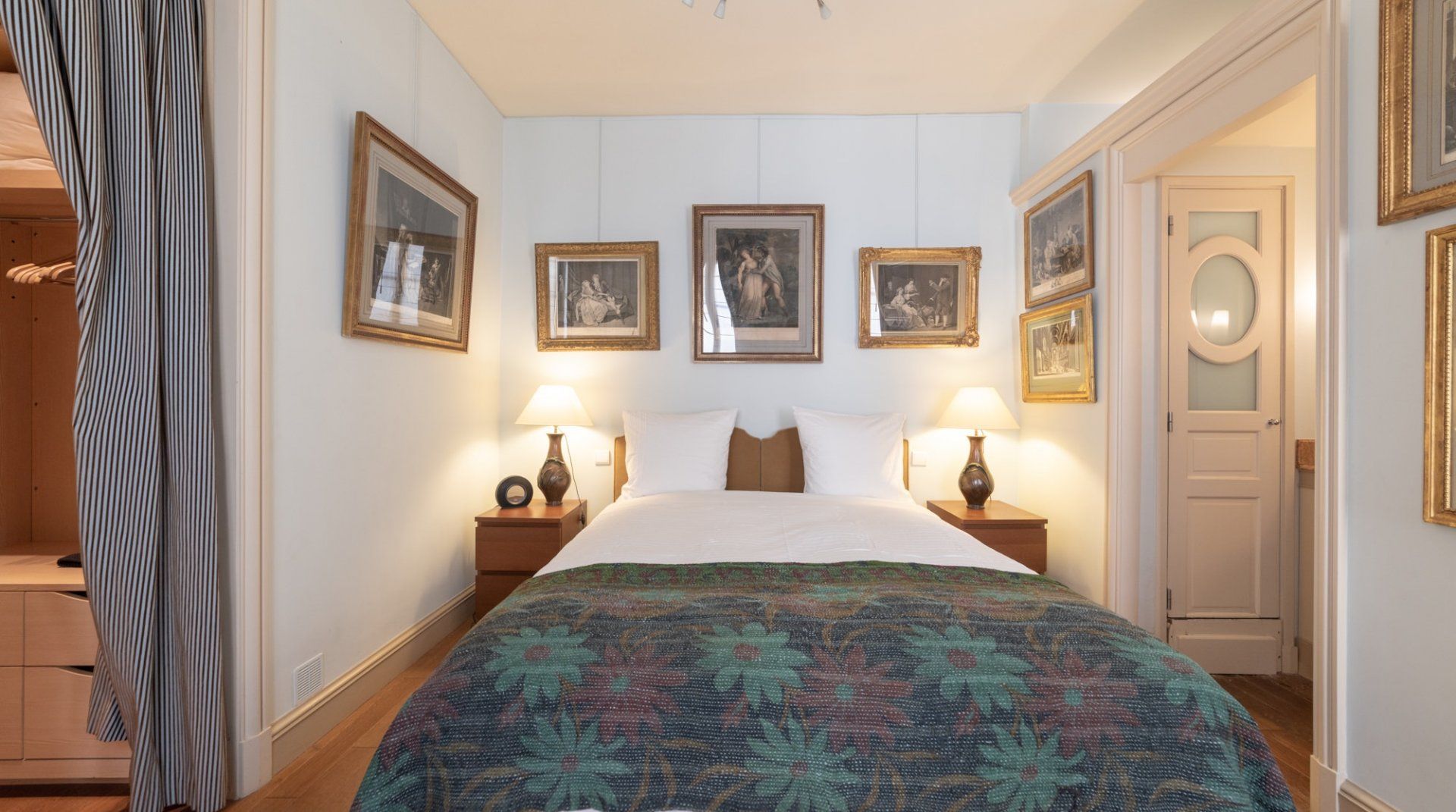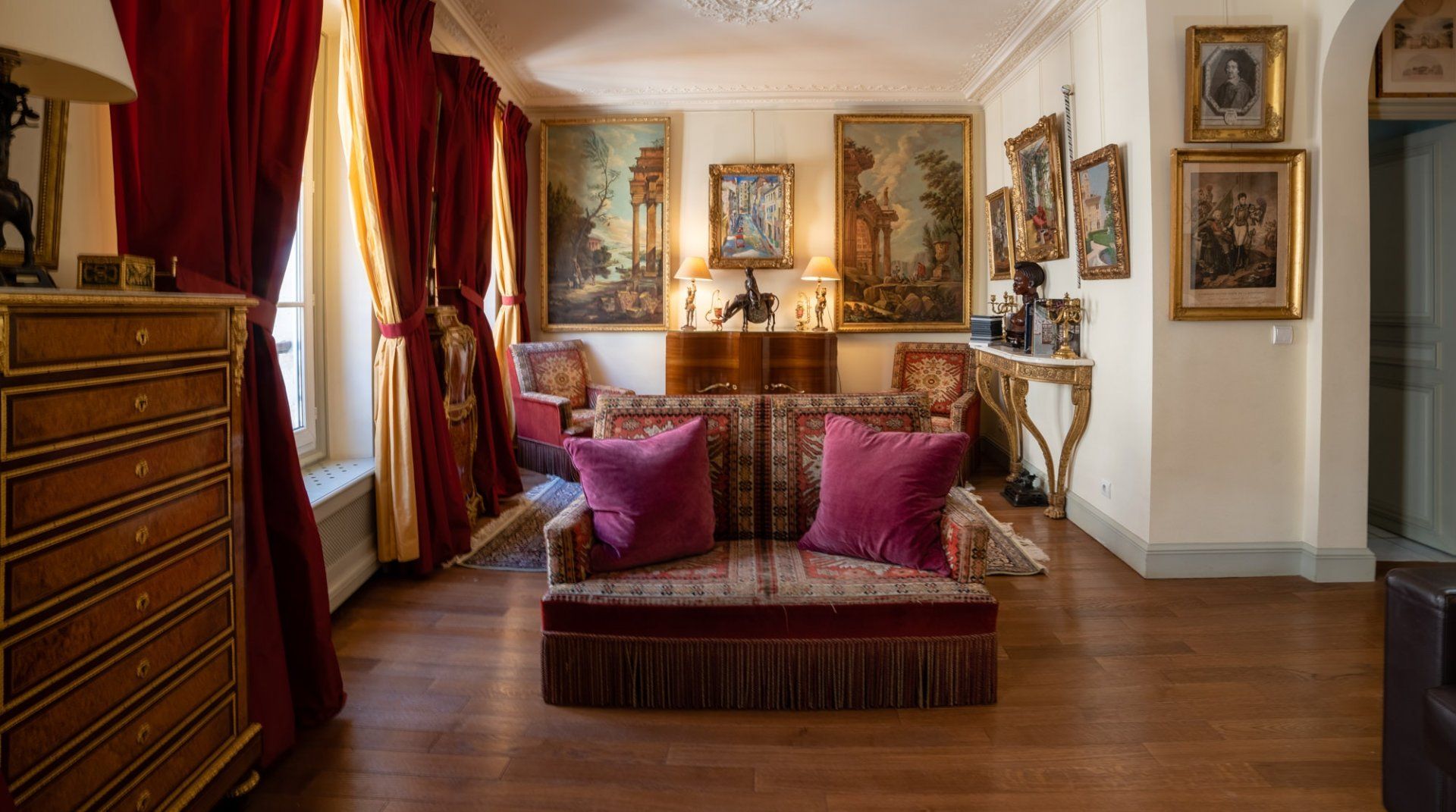 Think of the Champs-Élysées, and you'll immediately conjure up an image of classic luxury and opulence. Hold that thought, then multiply it by a hundred – this home is the epitome of 18th-century elegance. First off, your host welcomes you into this sumptuous abode with a chilled bottle of champagne – santé! Take a sip while you look around at Persian rugs, fringed sofas, vintage hardwood cabinets, a record player, and trinkets galore. Gilded frames line the walls, ornate golden candlesticks illuminate the dining table, and of course, Italian marble bathrooms come as standard. If you’re an antique connoisseur, you’ll simply be in awe of the collection here. It feels like living in old-world France in a stately palace, or visiting a gallery. If you’re looking for the real deal, take a five-minute walk to Le Palais de l’Élysée, or fifteen to the Musée du Parfum. Or you can take a break from your antique world, just for an afternoon, and head eight minutes to designer shopping on the Avenue des Champs-Élysées. Pick up something to wear out to a fancy dinner in the neighbourhood. And with the Miromesnil metro two minutes from home, you don’t even need to stay local (although we highly recommend it).