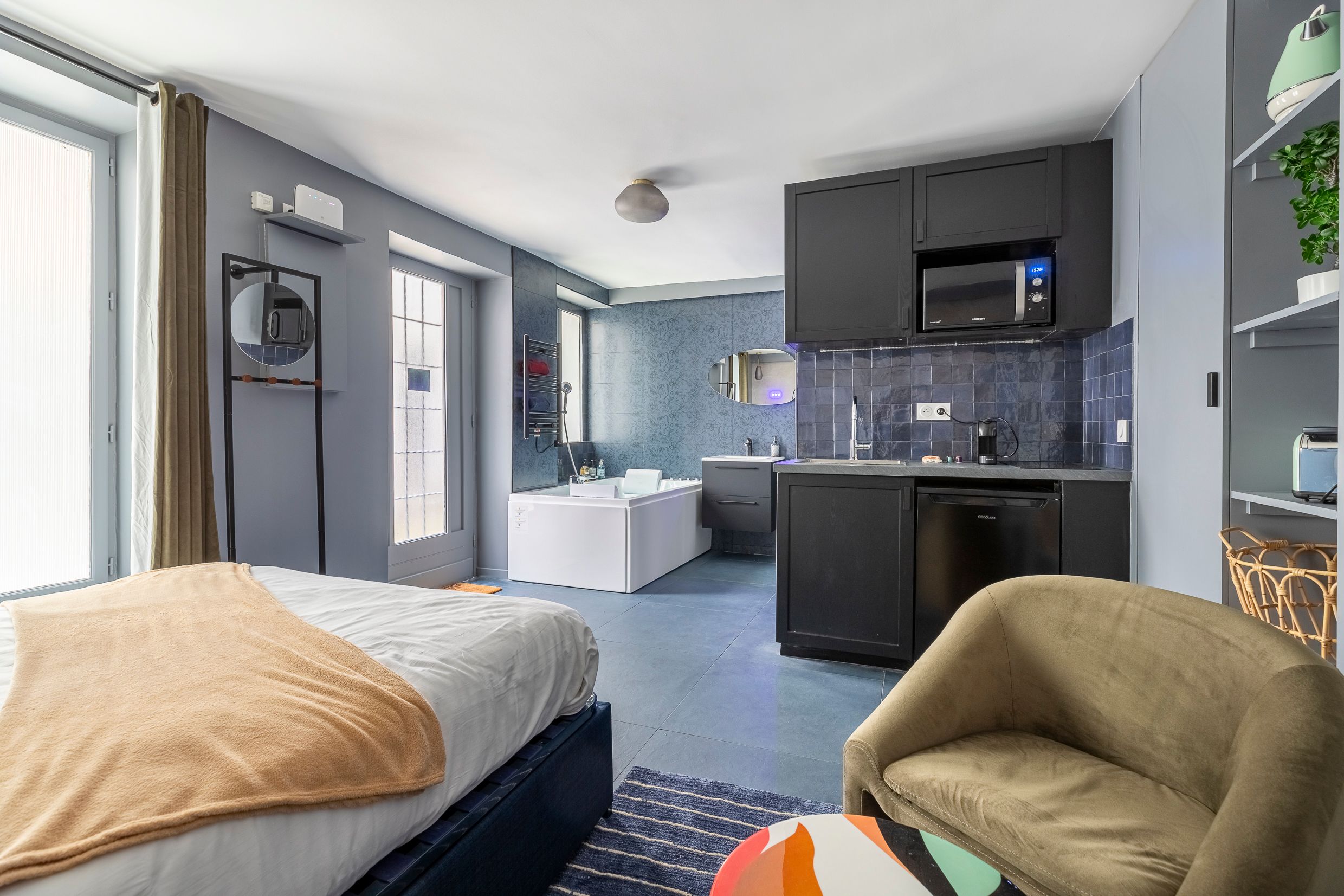Set back from the streets of one of Paris' most vibrant arrondissements, this peaceful ground floor apartment offers comfort and convenience in equal measure. Though it may be hard to leave the apartment's showpiece jacuzzi once those bubbles are roaring, the culture and cuisine of Montmartre lie just beyond the courtyard, with the Paris Opera only a short walk down the road. Sporting a king-size bed and a large walk-in shower, this stylish studio makes an excellent base for whirlwind weekends or longer stays.