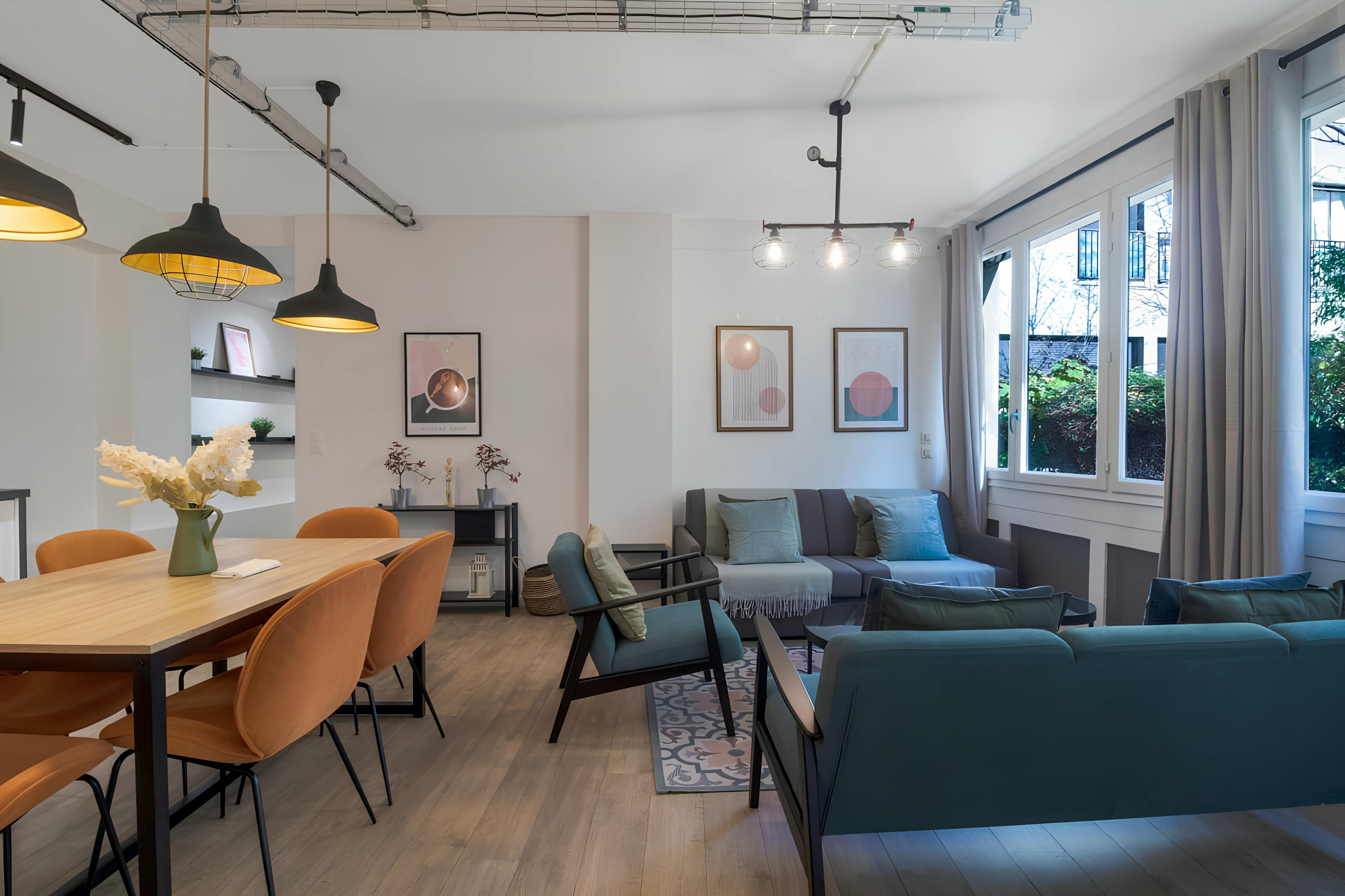 Situated in the 20th arrondissement, this apartment is surrounded by a rich tapestry of culture, nightlife, and verdant green spaces. There are plenty of charming cafes and restaurants in the neighbourhood too. Plus, most of Paris's key landmarks and attractions can be easily reached using the excellent public transport links just a short walk away. Inside this ground-floor apartment, you can take in the views over the leafy communal courtyard – this space also sleeps guests seven and eight on a sofa bed. One thing to note – the kitchen has no oven, though there’s a hob and microwave. Overall, this apartment offers a relaxing retreat after a day of exploring the City of Light.