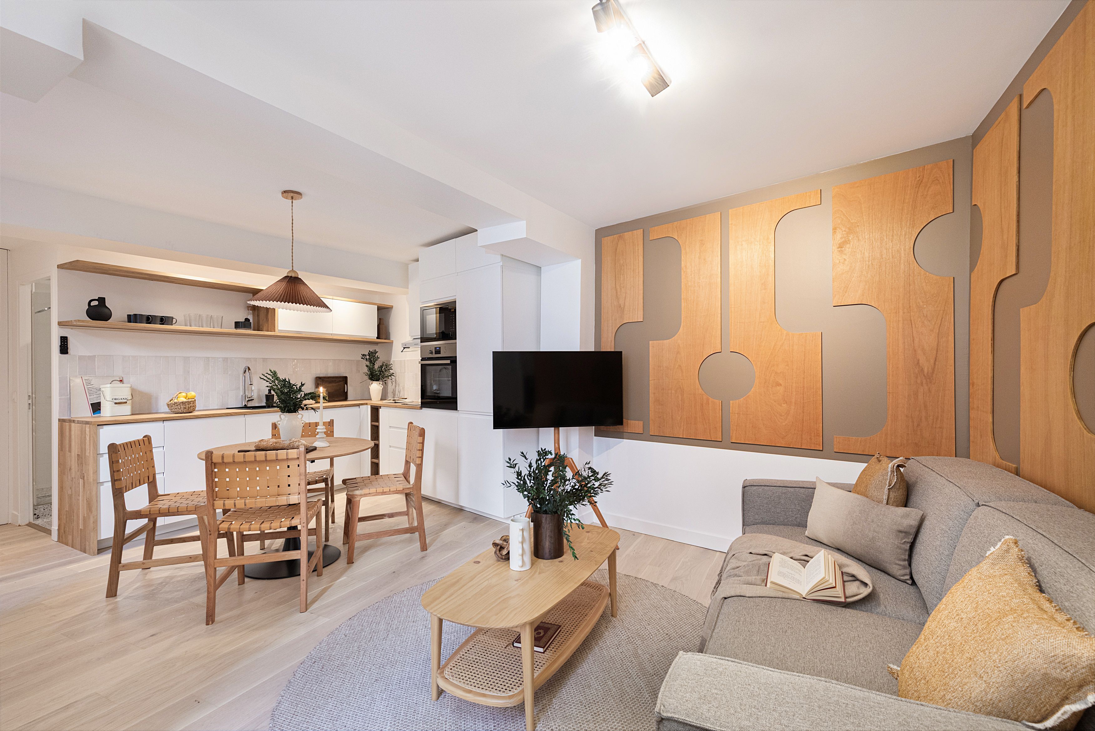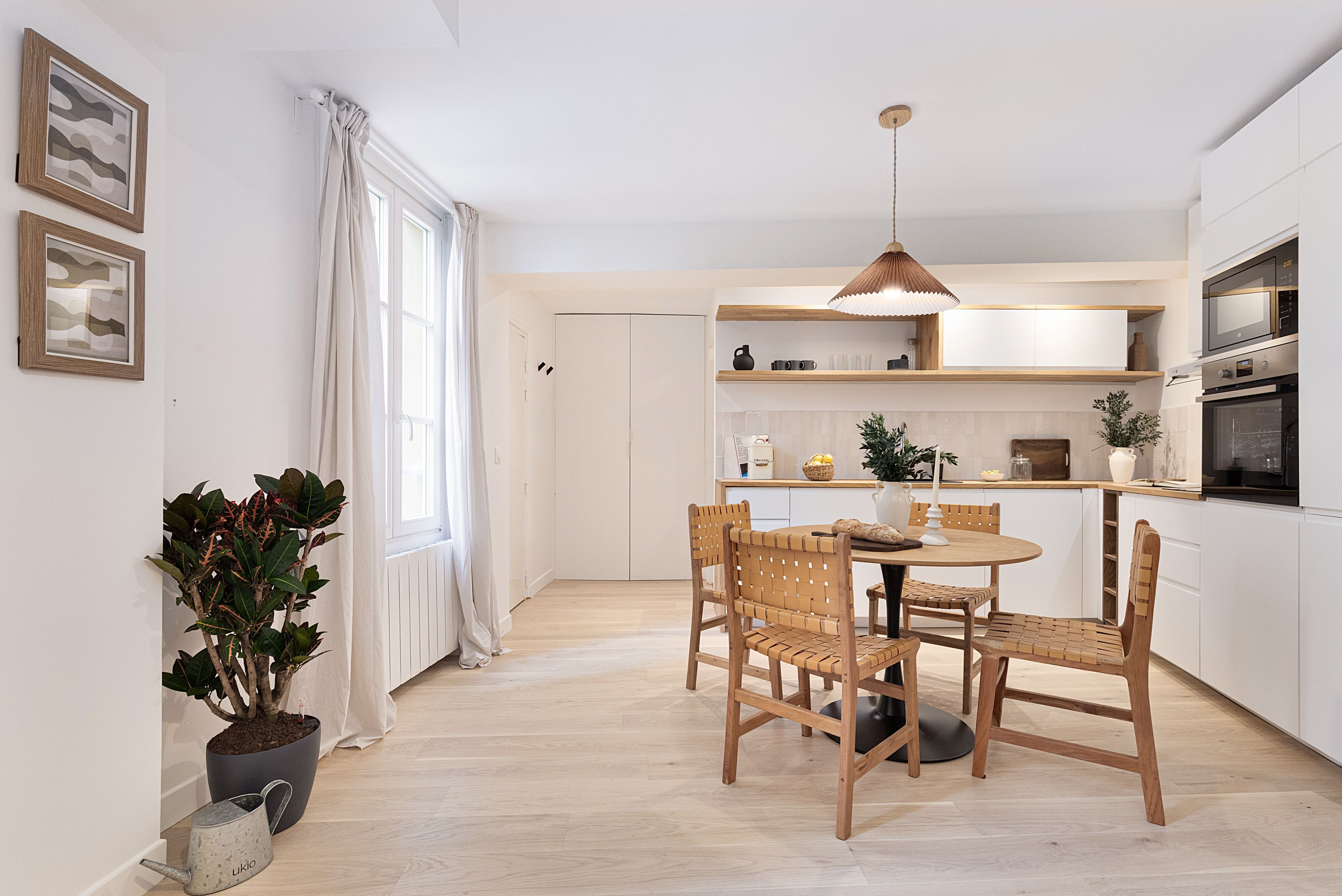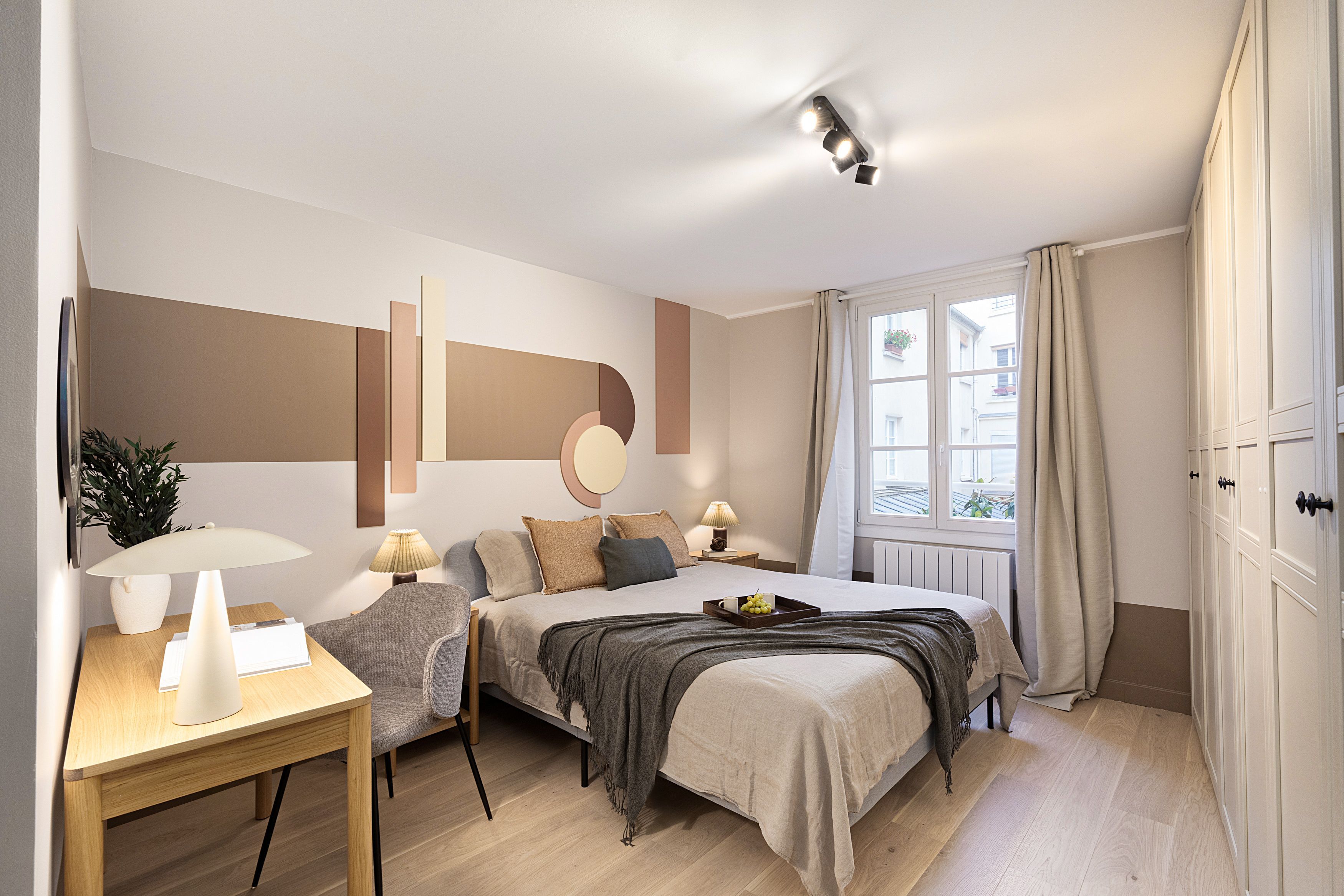 Staying in the Latin Quarter gives you effortless access to some of Paris’ best eateries and attractions. This Left Bank home is just a short walk from the Panthéon and Jardin des Plantes, fifteen minutes from Île Saint-Louis and the Notre-Dame. You’ll be next door to the Sorbonne, returning home from sightseeing amid intellectuals and students. If you’ll be working during your stay, there’s a desk in the bedroom. There’s also a well-equipped kitchen, if you feel like cooking.