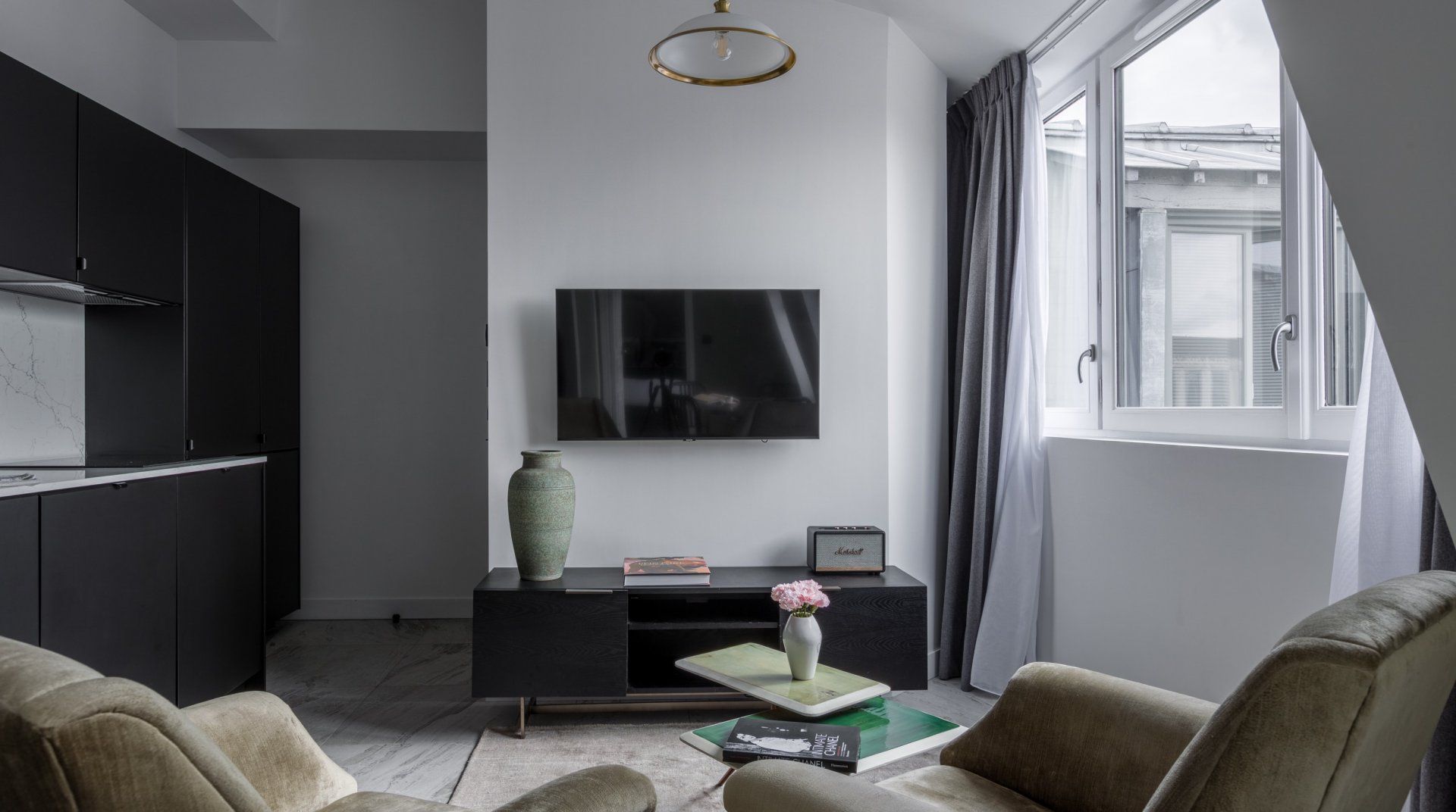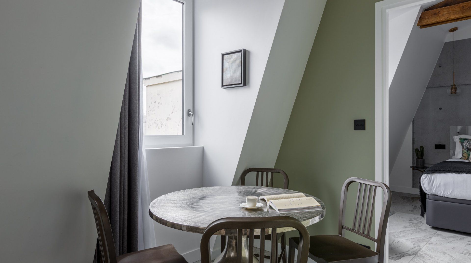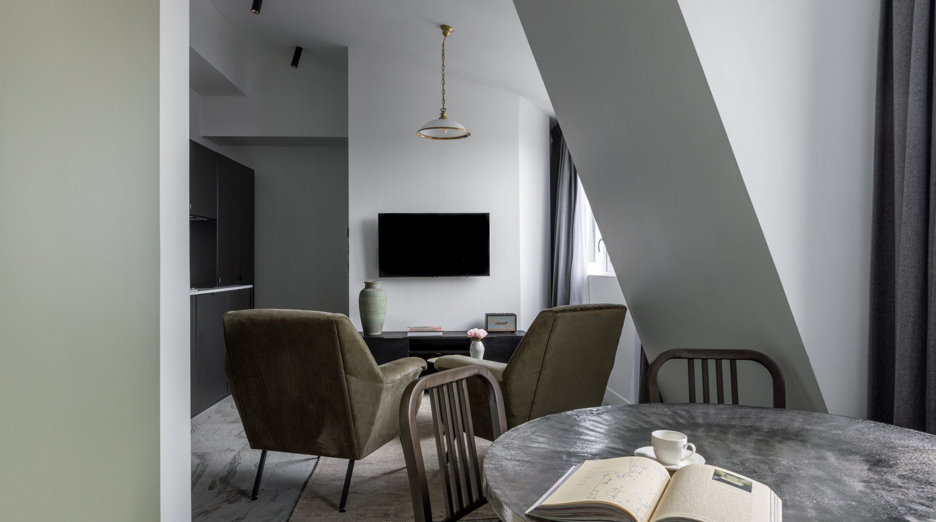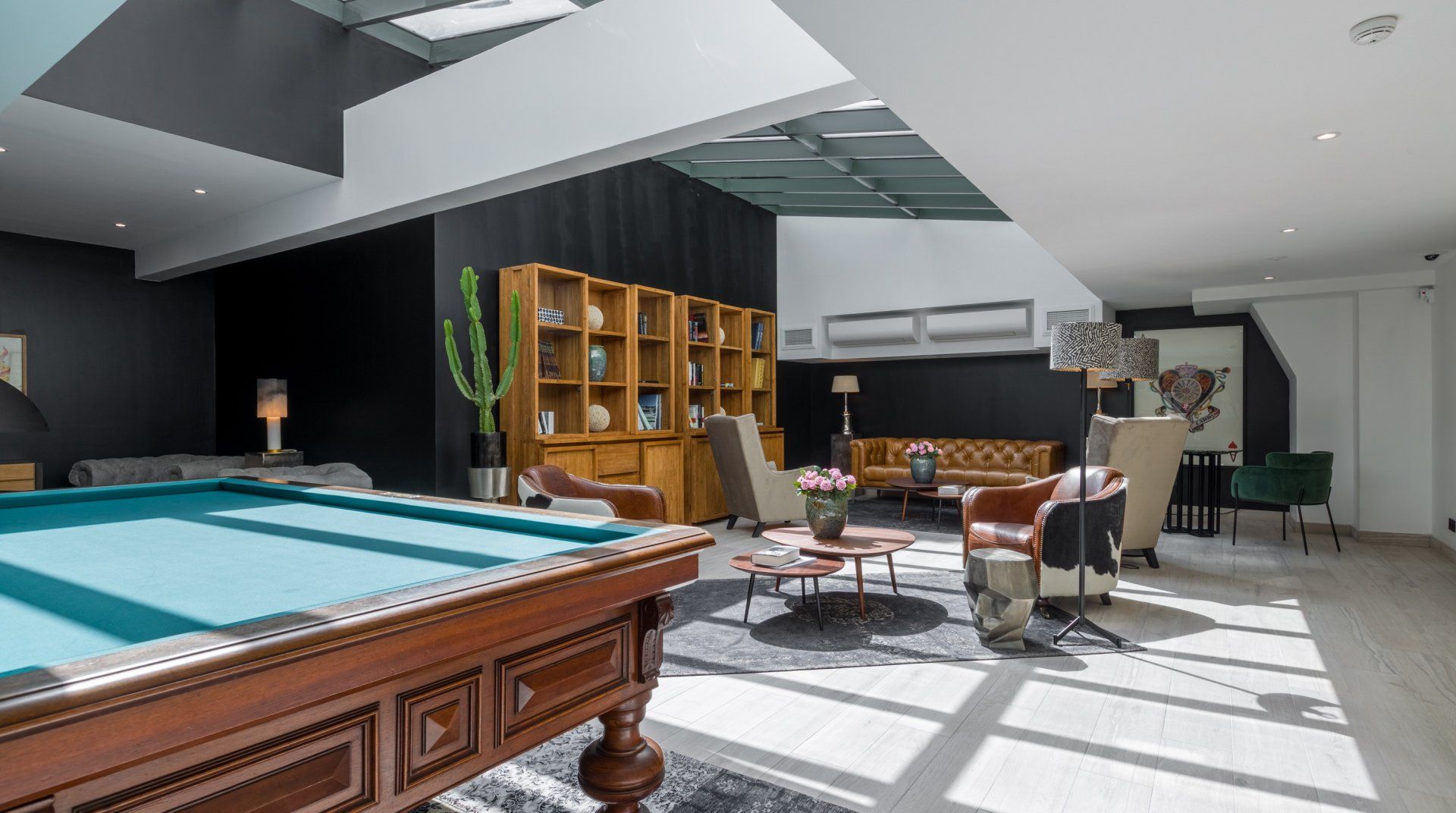 Set within a grand building just a five-minute walk from the Arc de Triomphe and the Champs-Élysées, this chic apartment feels wonderfully Parisian. With its beamed vaulted ceiling, stylish furnishings and sleek appliances, it's the epitome of old-world meets new. Take in views of your elegant neighbourhood from the living room’s large windows and relax on the pair of armchairs while listening to some chansons on the sound system. We love the pared-back elegance of the bedroom with its satin sheets and sweet corner chair, while the bathroom’s green and gold-flecked marble shower looks like it belongs in the pages of a design magazine. When you’re not relaxing in your sophisticated apartment, head downstairs to the shared lounge where a pool table provides competitive fun and the indoor fire-pit invites cosy sociable evenings over drinks.