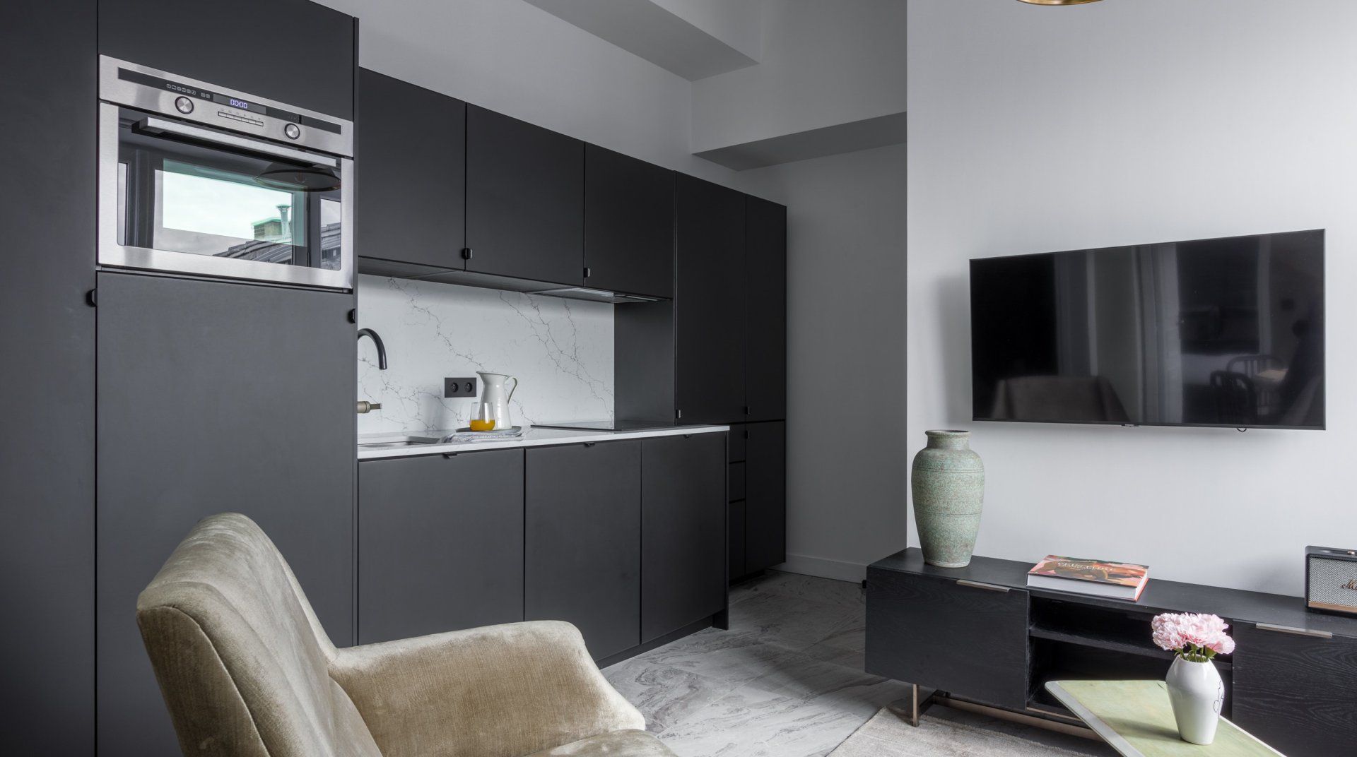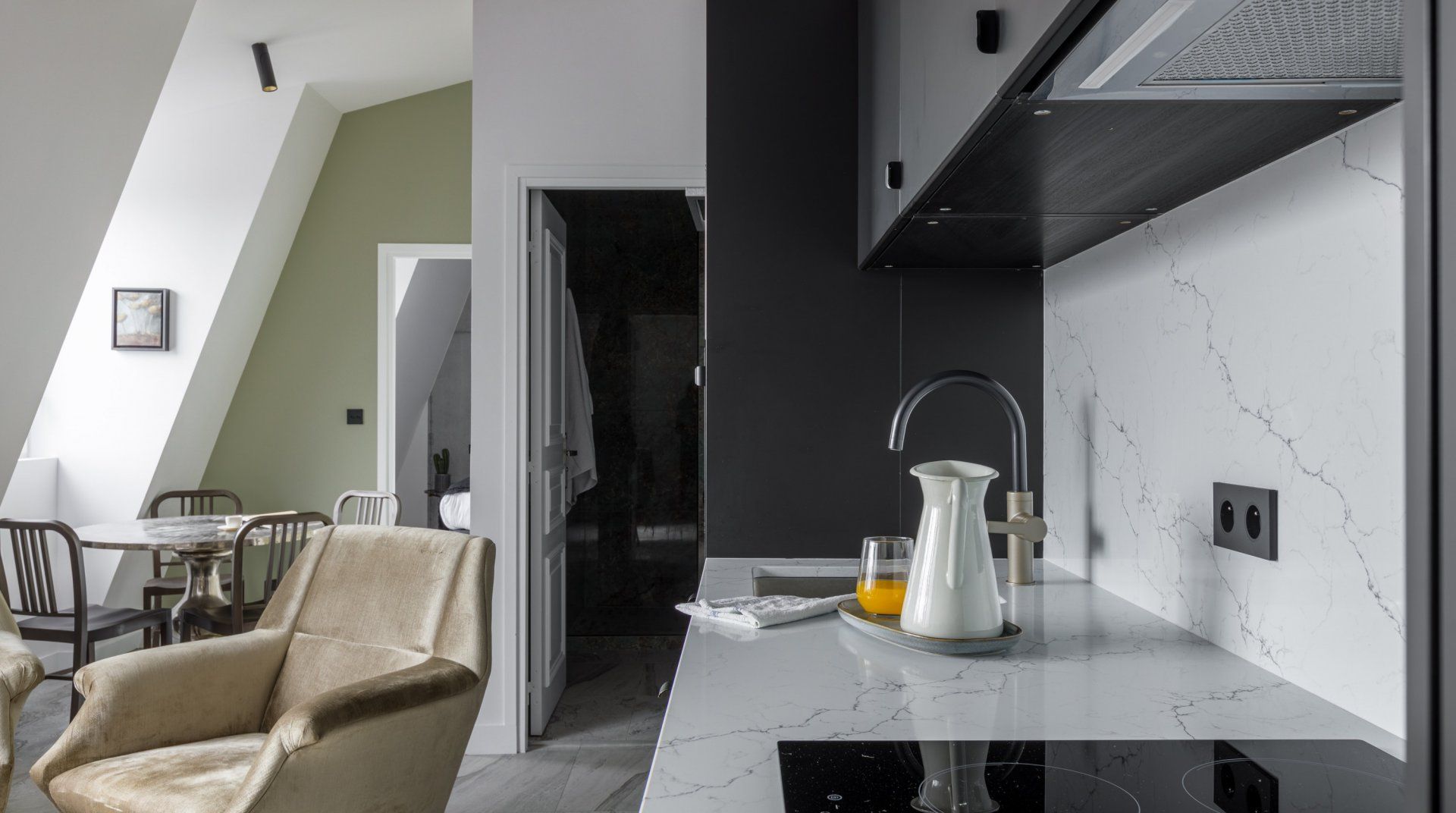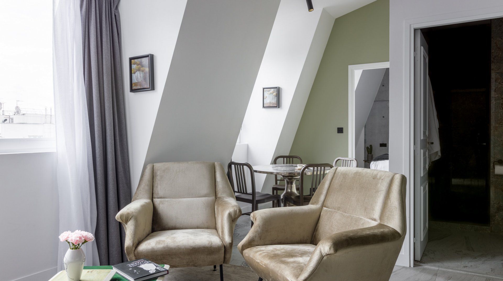 Set within a grand building just a five-minute walk from the Arc de Triomphe and the Champs-Élysées, this chic apartment feels wonderfully Parisian. With its beamed vaulted ceiling, stylish furnishings and sleek appliances, it's the epitome of old-world meets new. Take in views of your elegant neighbourhood from the living room’s large windows and relax on the pair of armchairs while listening to some chansons on the sound system. We love the pared-back elegance of the bedroom with its satin sheets and sweet corner chair, while the bathroom’s green and gold-flecked marble shower looks like it belongs in the pages of a design magazine. When you’re not relaxing in your sophisticated apartment, head downstairs to the shared lounge where a pool table provides competitive fun and the indoor fire-pit invites cosy sociable evenings over drinks.