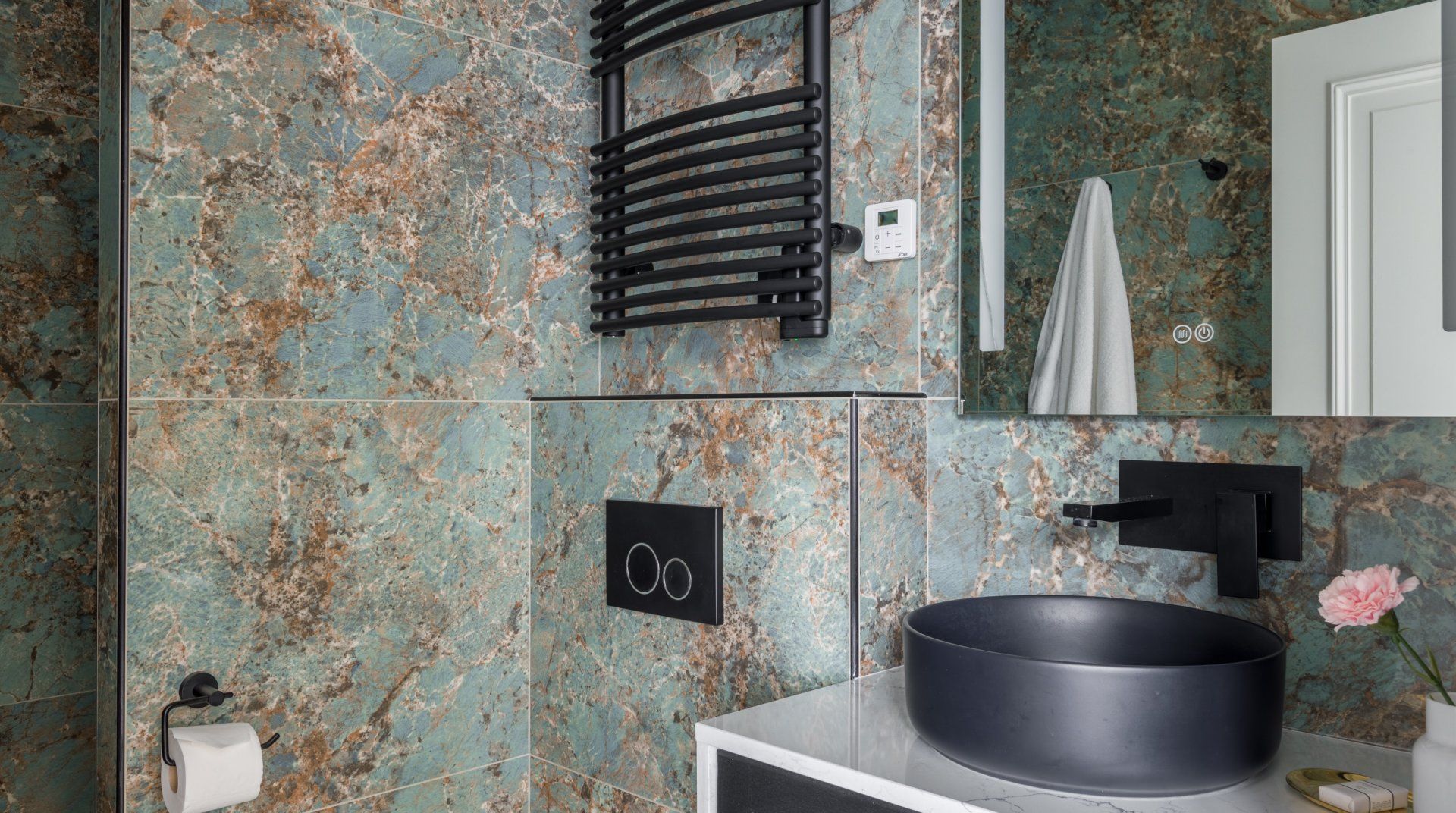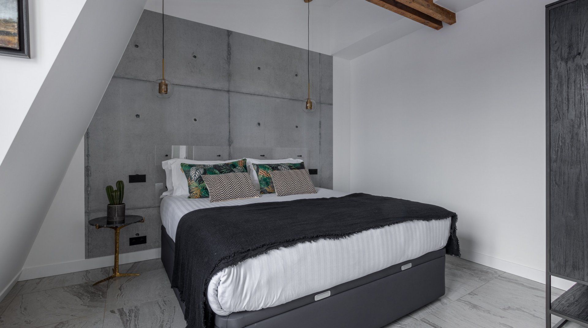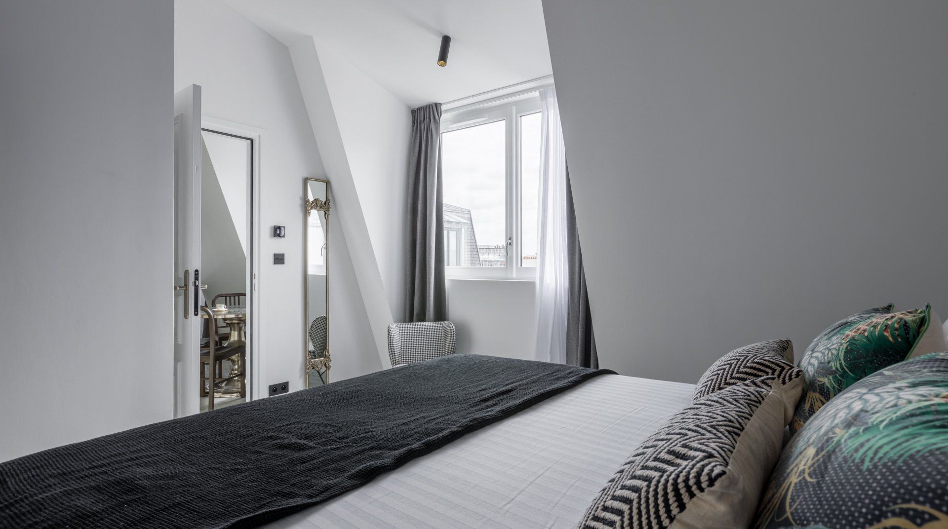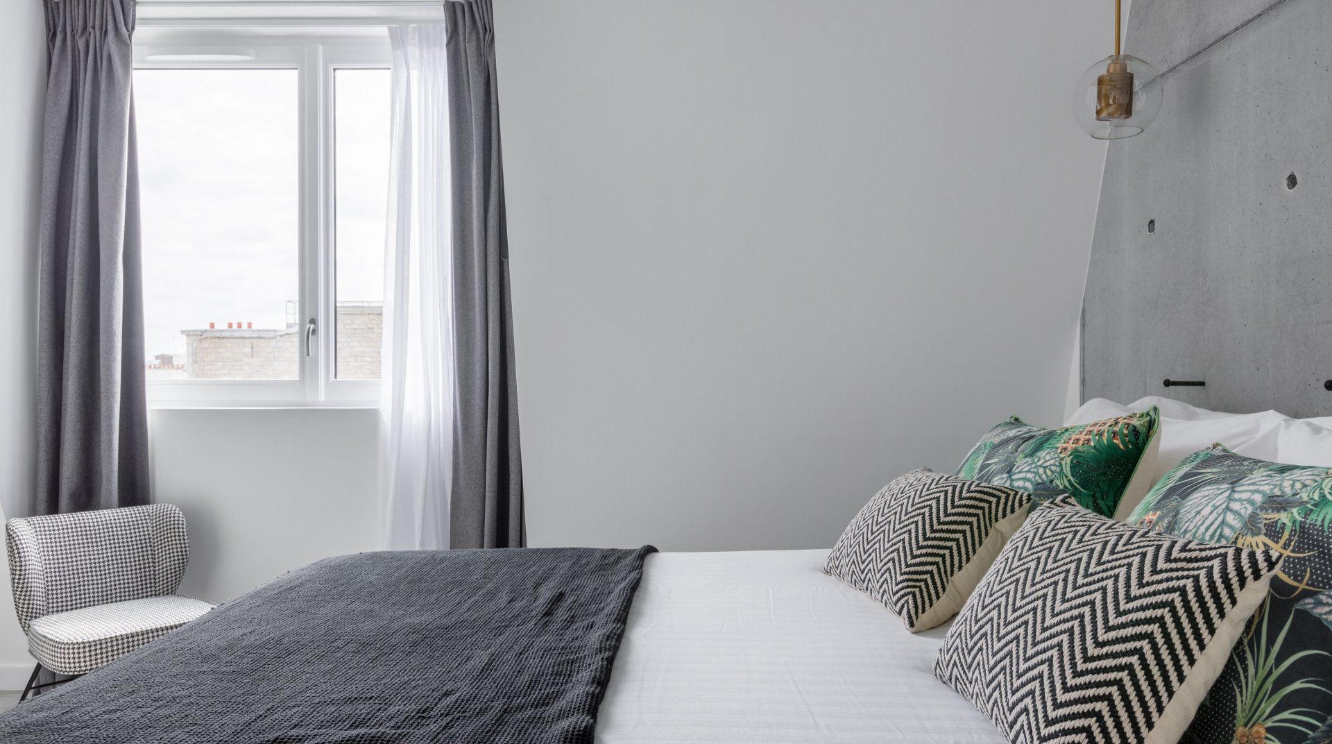 Set within a grand building just a five-minute walk from the Arc de Triomphe and the Champs-Élysées, this chic apartment feels wonderfully Parisian. With its beamed vaulted ceiling, stylish furnishings and sleek appliances, it's the epitome of old-world meets new. Take in views of your elegant neighbourhood from the living room’s large windows and relax on the pair of armchairs while listening to some chansons on the sound system. We love the pared-back elegance of the bedroom with its satin sheets and sweet corner chair, while the bathroom’s green and gold-flecked marble shower looks like it belongs in the pages of a design magazine. When you’re not relaxing in your sophisticated apartment, head downstairs to the shared lounge where a pool table provides competitive fun and the indoor fire-pit invites cosy sociable evenings over drinks.