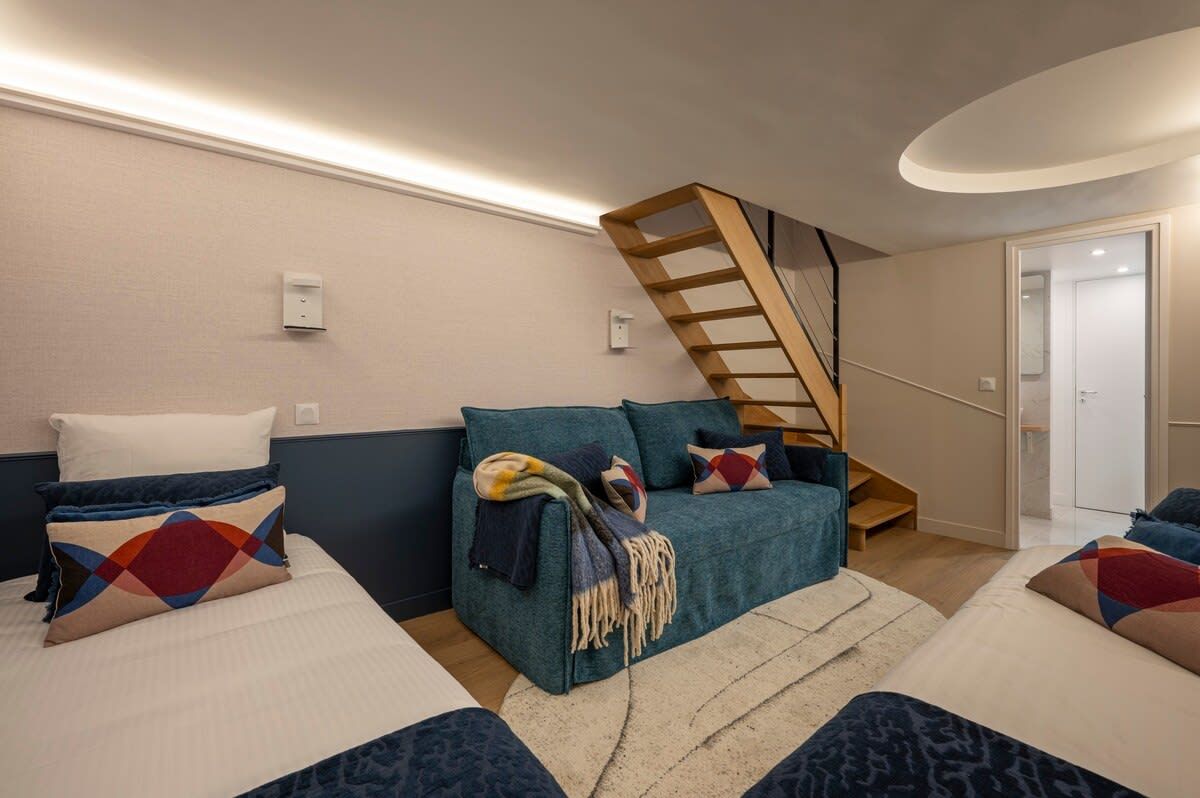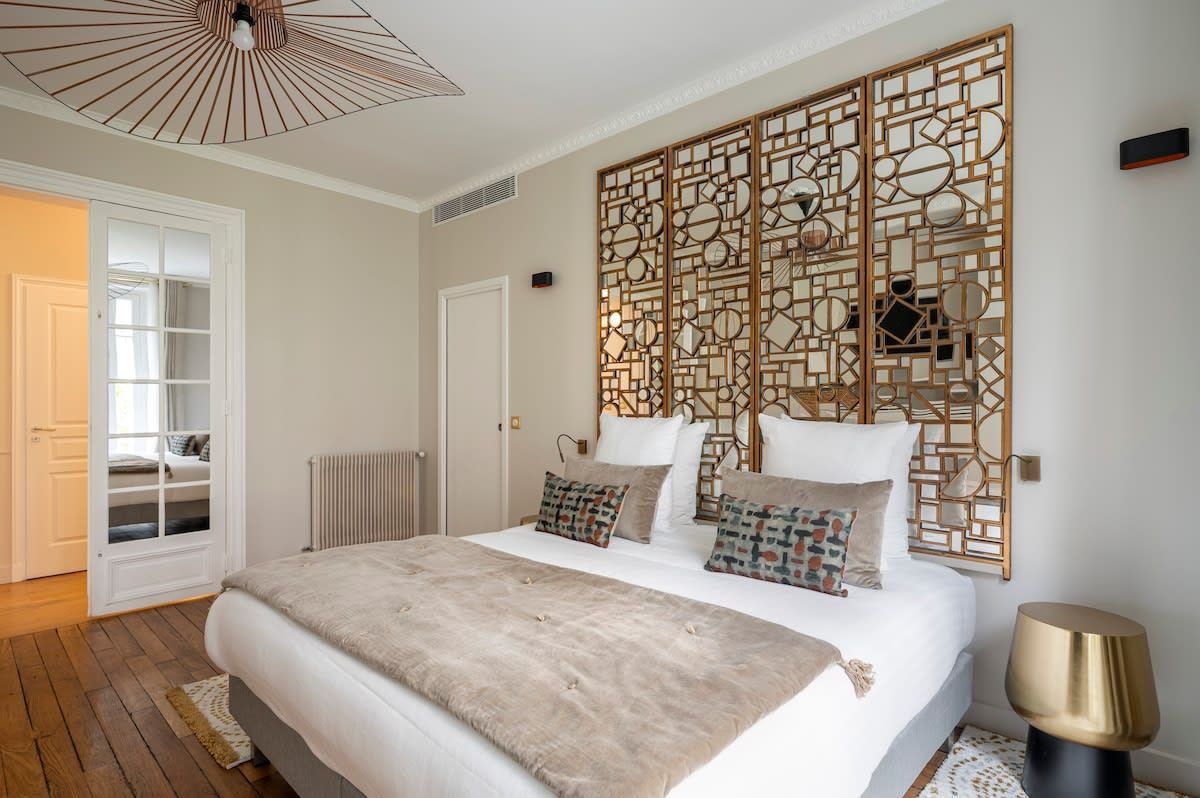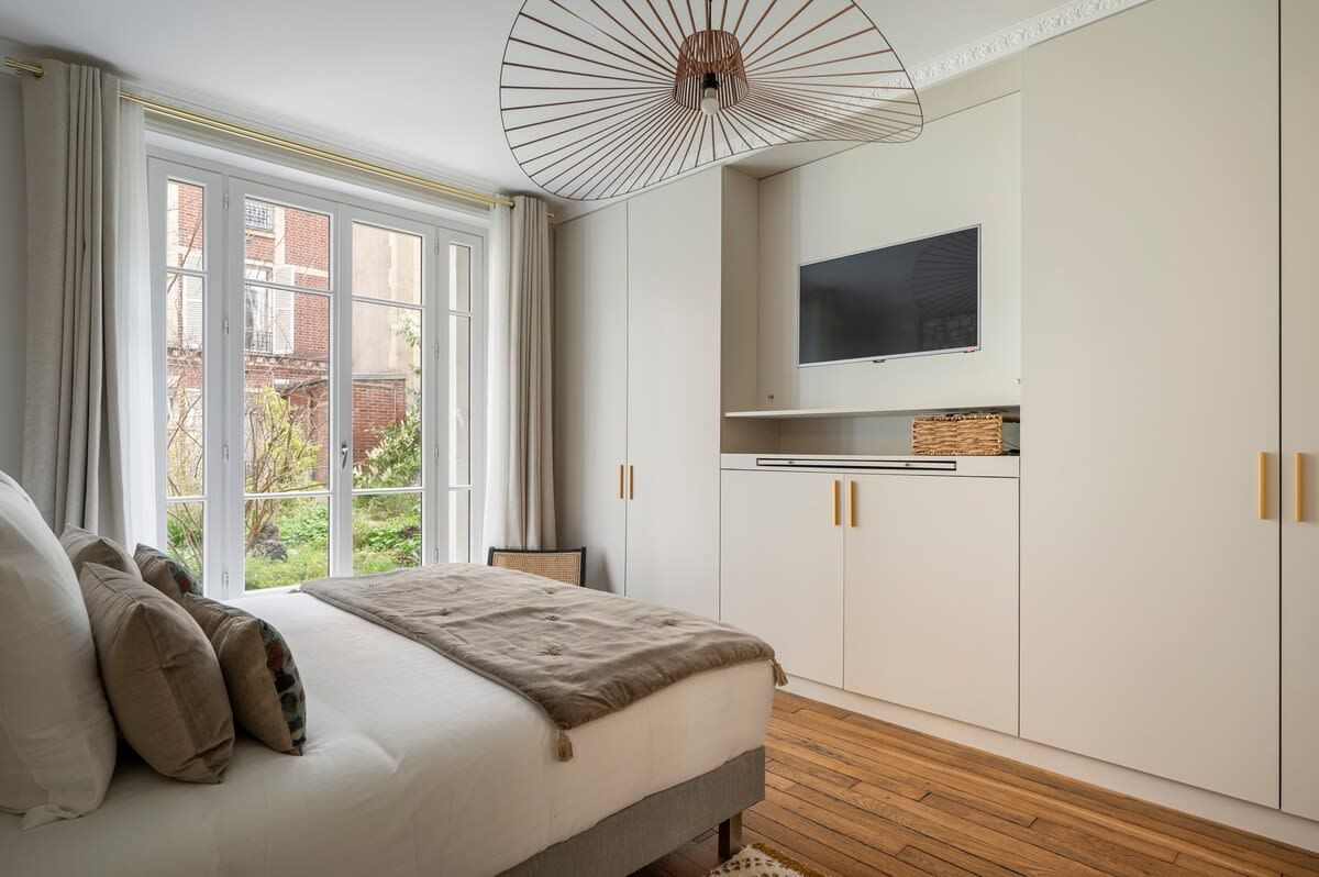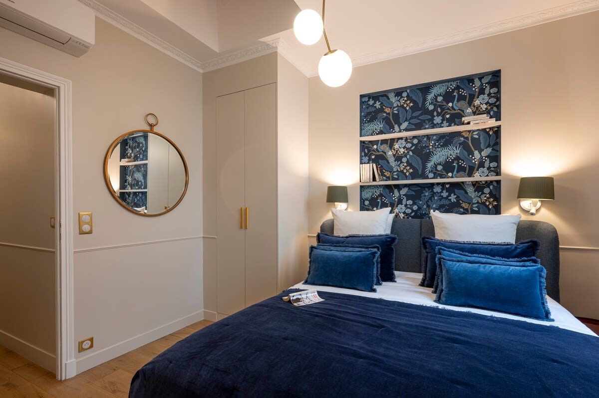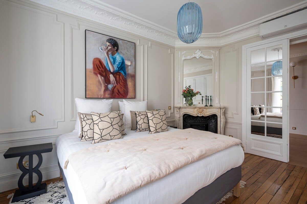 This stunning apartment is located in lower Montmartre, on a peaceful cobblestoned street. It’s a haven of peace amidst the hustle and bustle of Paris, close to Place de Clichy and just a fifteen-minute walk from the Moulin Rouge. Cafes, brasseries, and restaurants are all on your doorstep. Renovated by a renowned interior designer, this apartment has refined, elegant finishes. We love the open-plan living and dining space, with its tall windows and chic decor. The bedrooms are oh-so-comfortable, perfect for restful sleep after busy days of sightseeing.