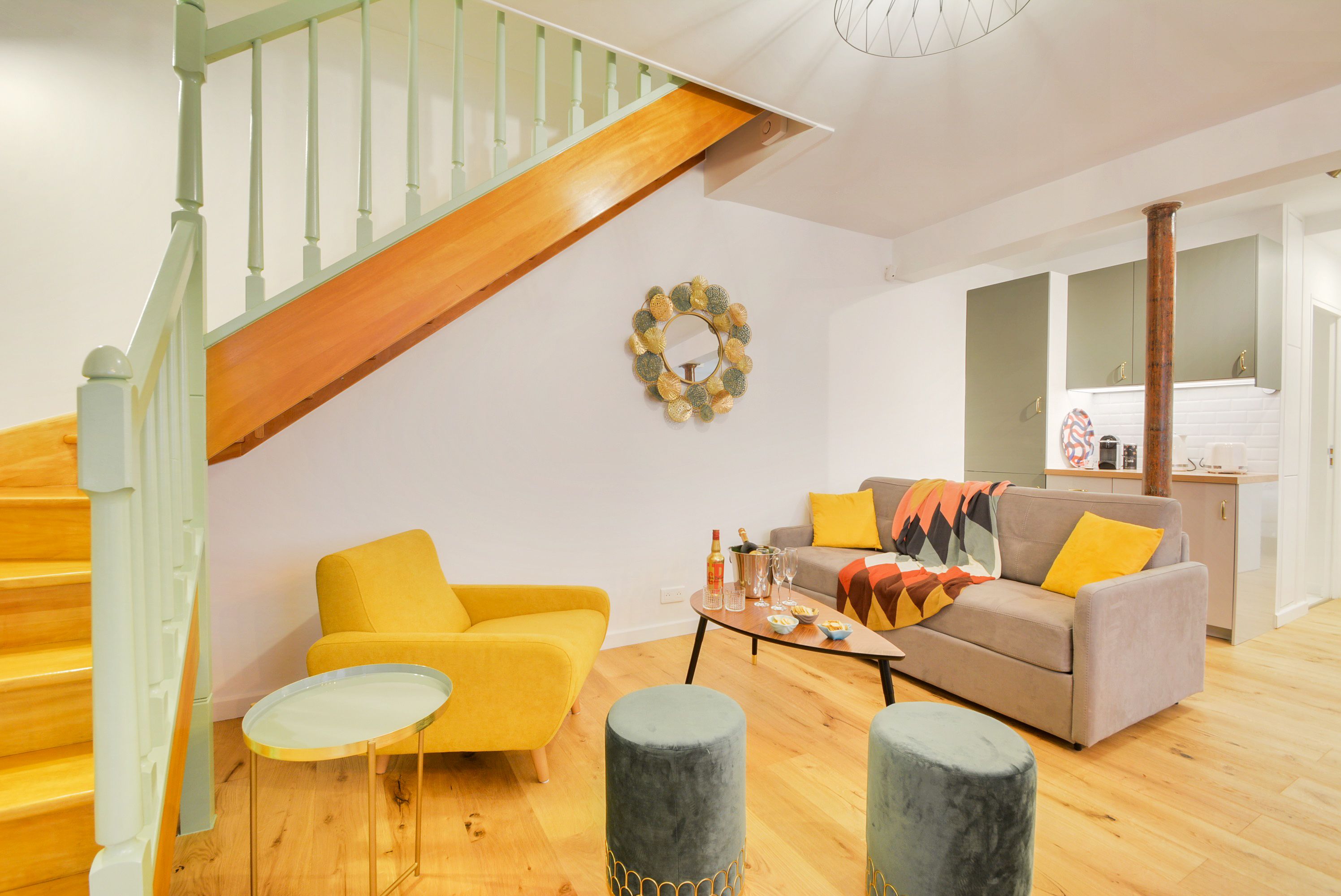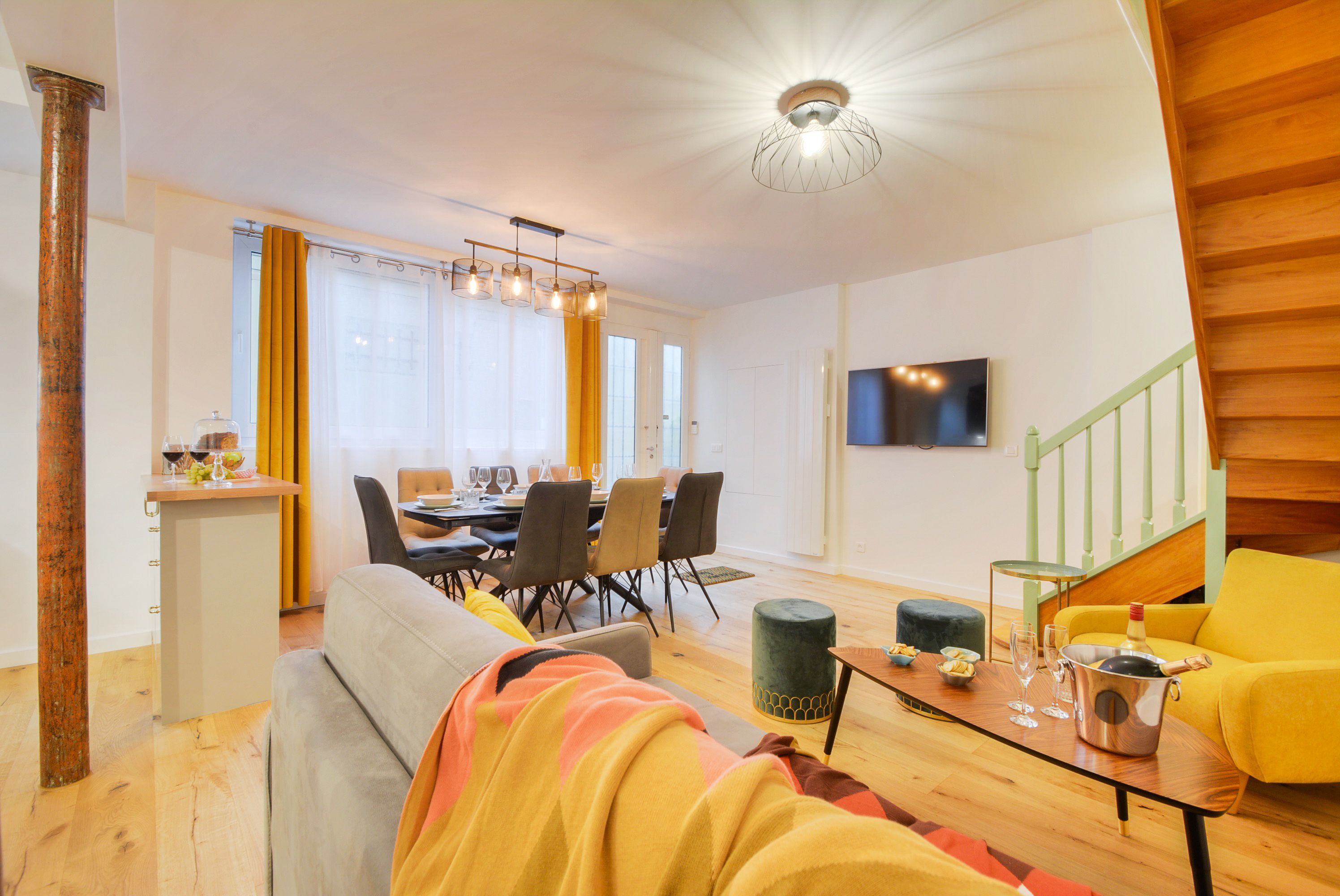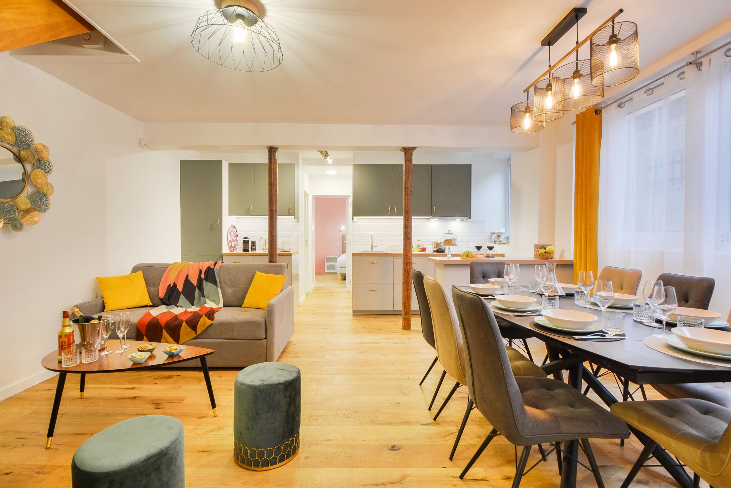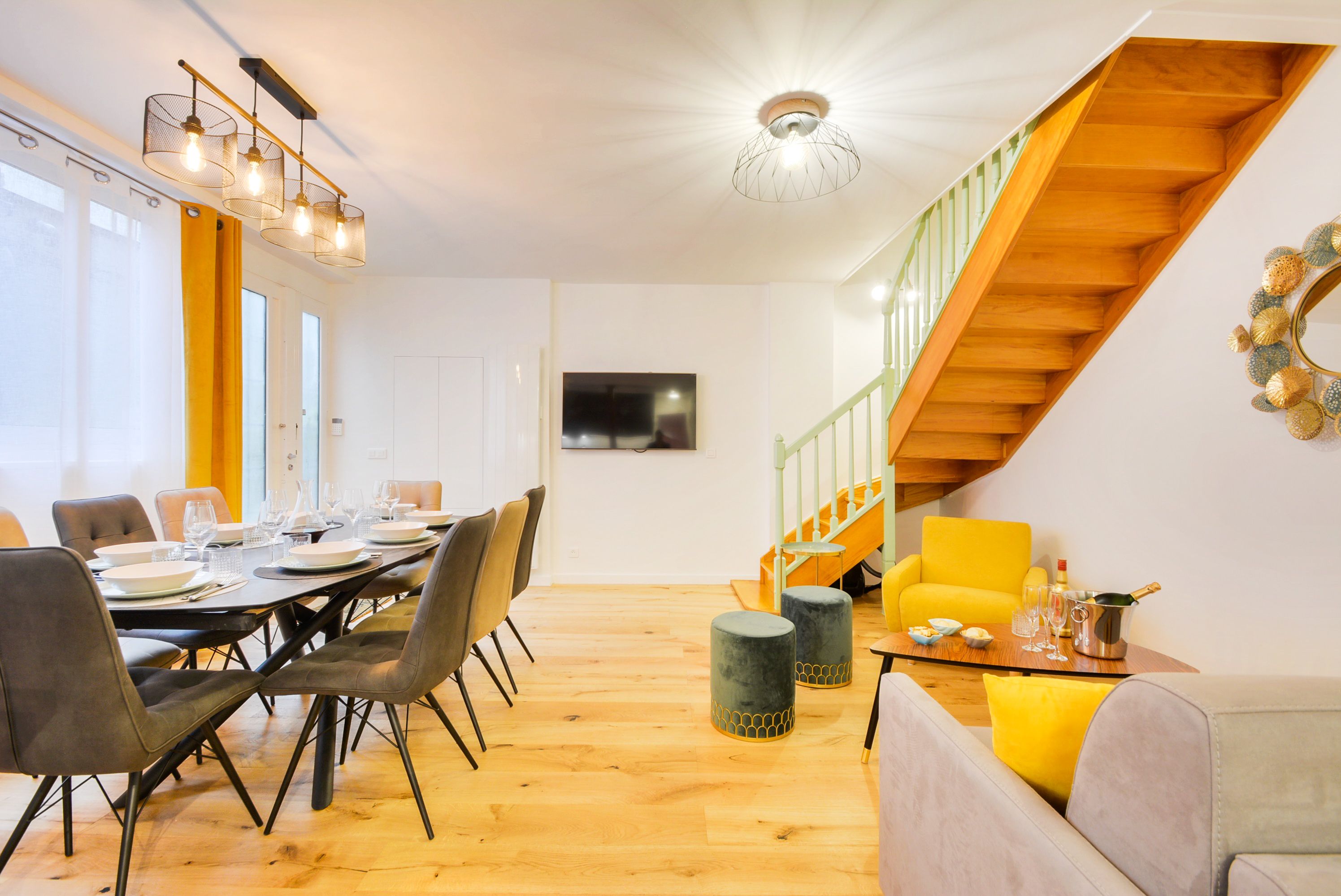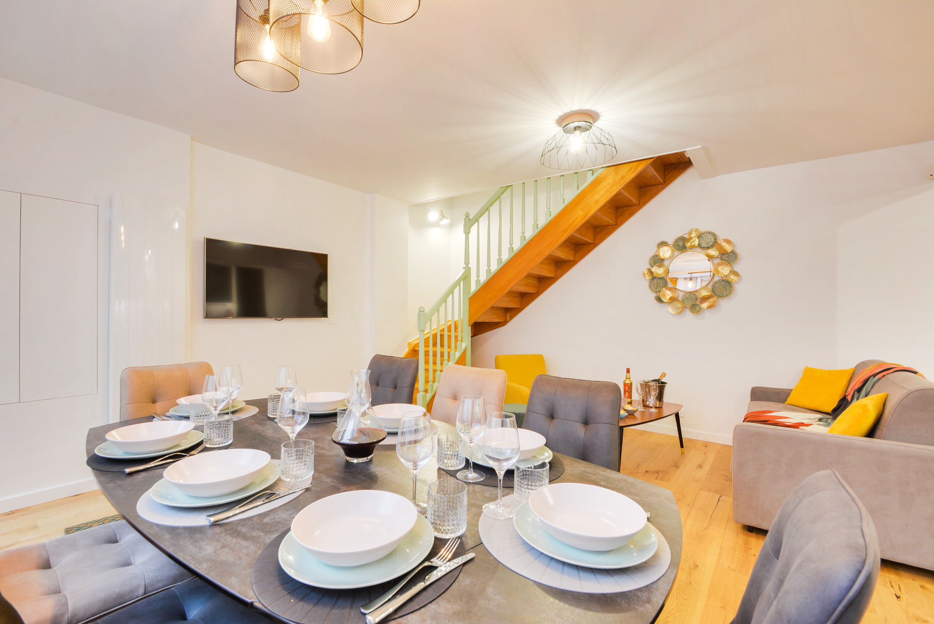 This apartment is situated in one of the trendiest neighbourhoods of Paris, with trendy interiors to match. Set over two floors, there's space for eight with the sofa bed, so it's perfect for group getaways. After a day of exploring the local, vibrant neighbourhoods – from Canal St Martin to Le Marais – dine together in the colourful open-plan dining and living area, or retreat to your own room. There's a TV in each one – ideal if you can't agree on an evening film to wind down with.