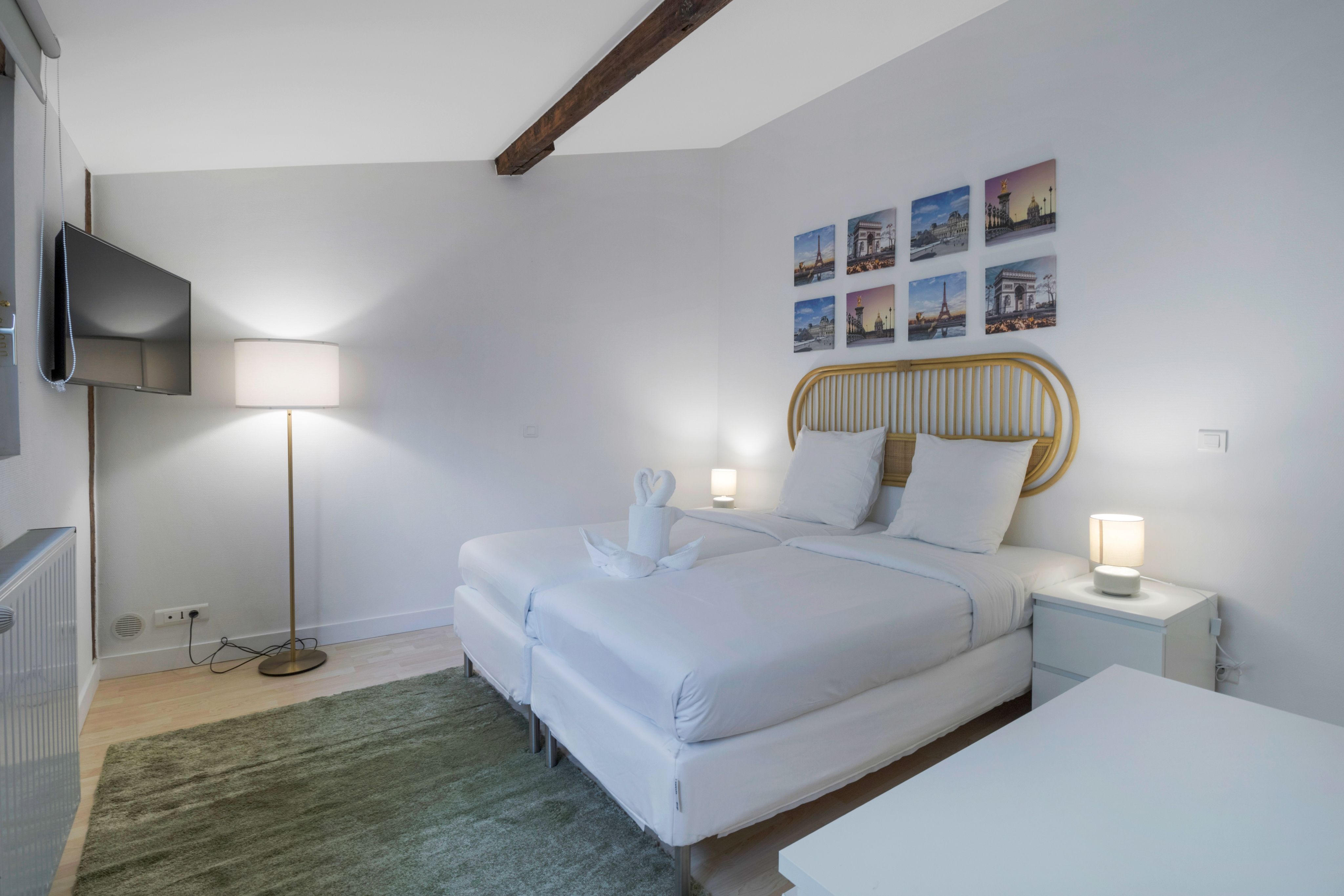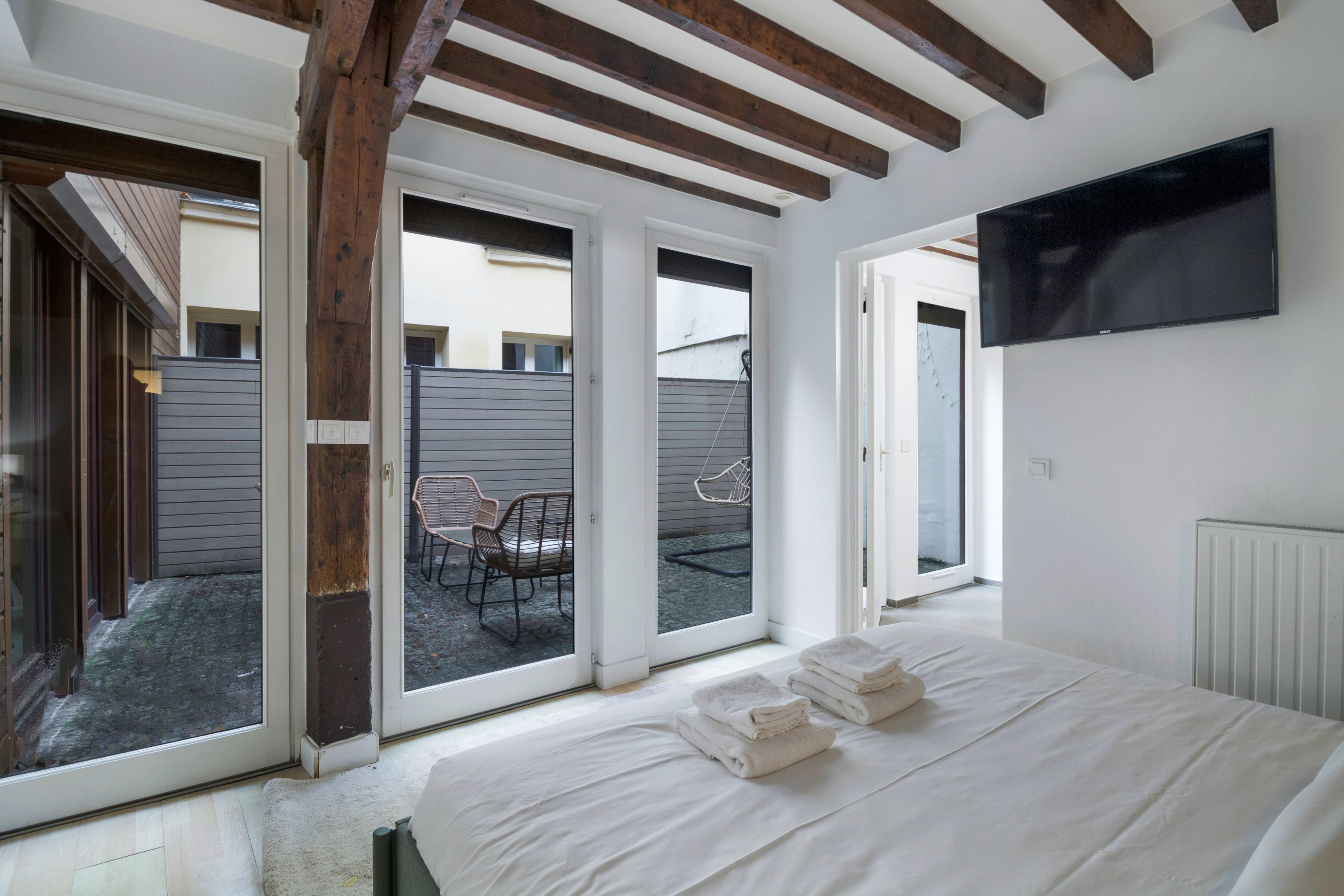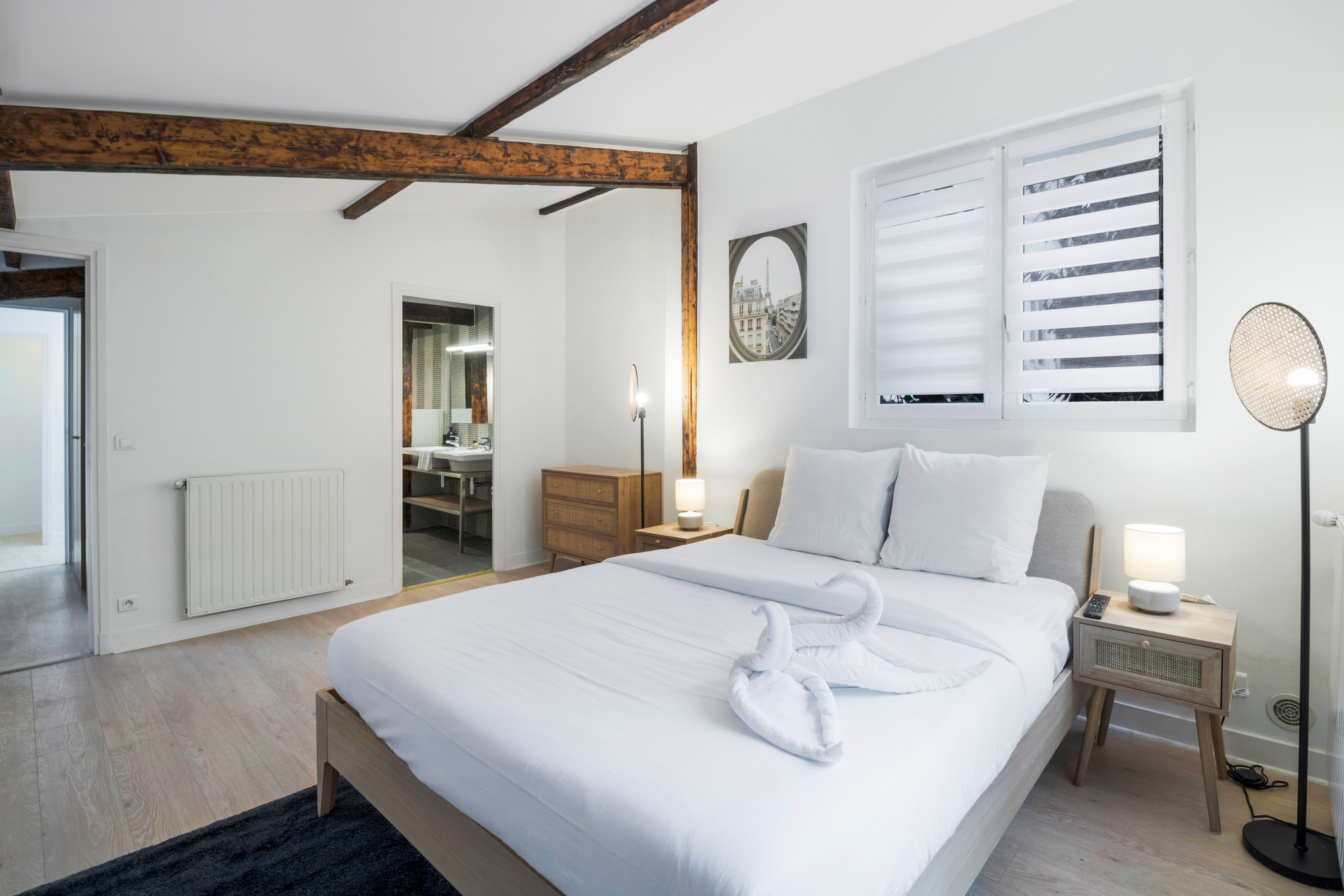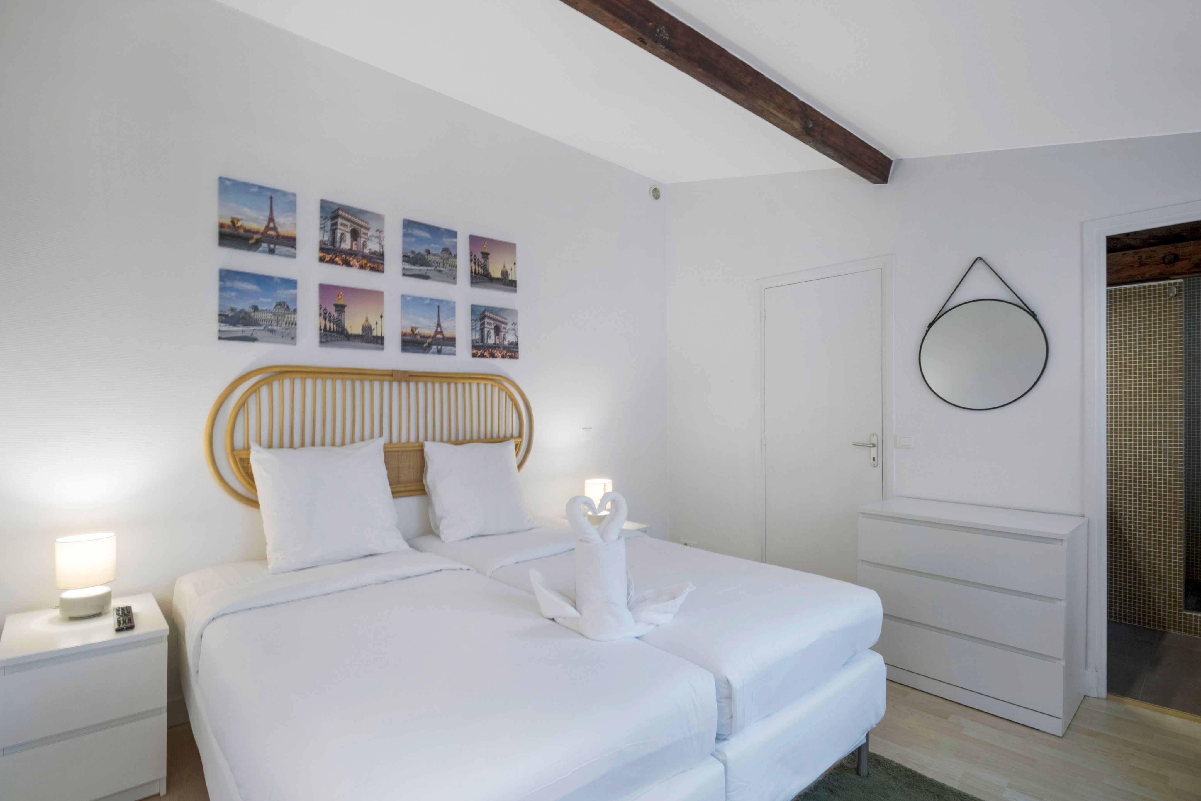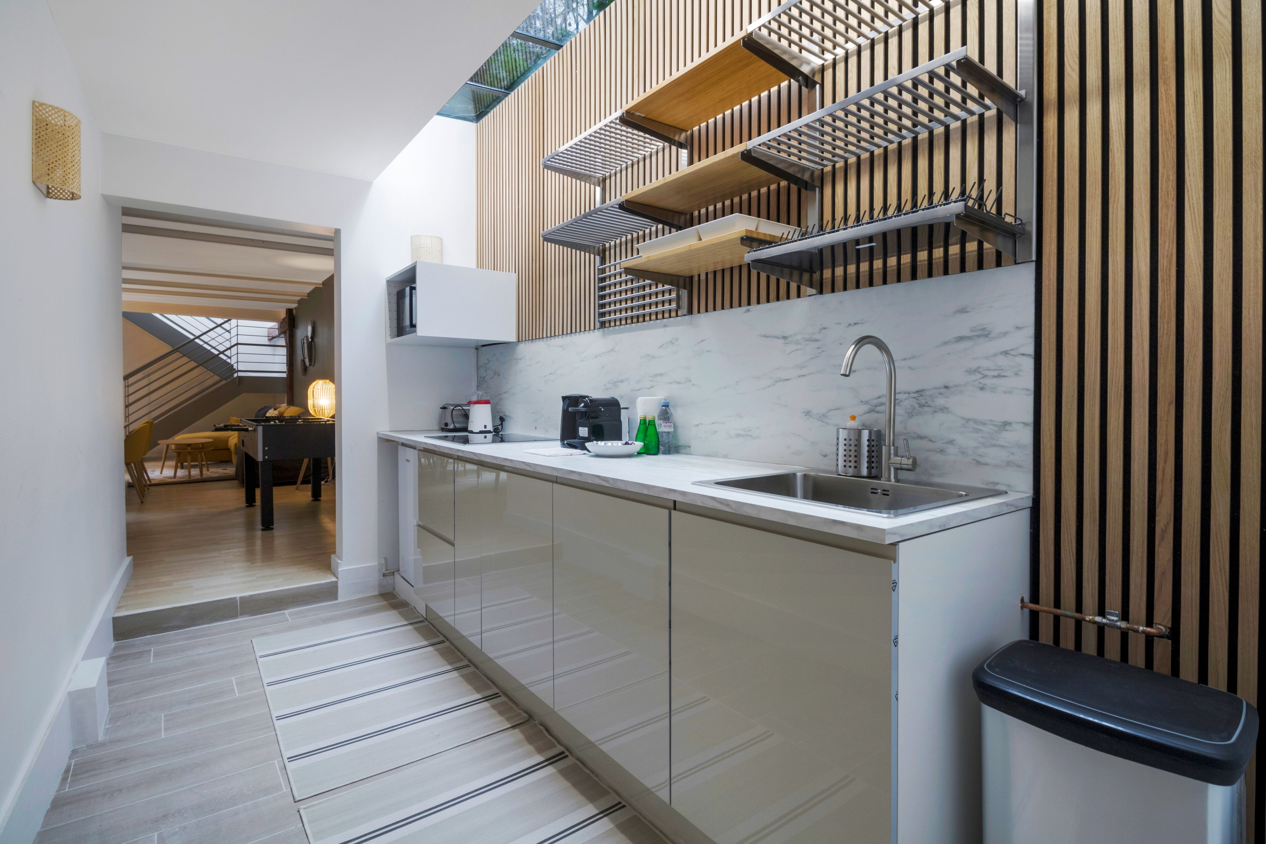 Located in a quiet residential courtyard in the lively Latin Quarter, this cosy home has plenty of space for groups of friends or family to spread out across two floors – including two terraces. Gather in the living room for meals with the patio doors open, or step out to the Rue Mouffetard, where you'll find dozens of restaurants to try. Kids (and big kids) won't be able to resist the table football, while evening drinks on the terrace are certainly in order. The Latin Quarter is known for its vibrant community atmosphere, where locals and students mingle at food markets, terrace cafes, and wine bars – so this home is an ideal escape from the tourist sights.