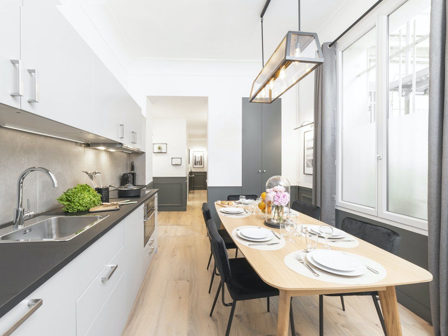 This home will help you settle into la belle vie in no time at all. Step through the door, and you'll find a sophisticated space full of effortless French charm. The tall windows bathe the living space in natural light, while the greyscale colour palette gives the home a smart, upmarket ambience. You'll love admiring the collection of black and white photography on the walls, and gathering your guests at the dining table to share a quick breakfast or a delicious evening meal. Outside, you'll find a buzzing neighbourhood full of both locals and tourists, where classic pavement cafés meet trendy cocktail bars. If you like exploring cities on foot, then both the Musée des Arts et Métiers, and the Palais Garnier opera house are less than twenty minutes away. And, if you want to travel further afield, then just hop on the métro at Cadet and start ticking off your sightseeing list.