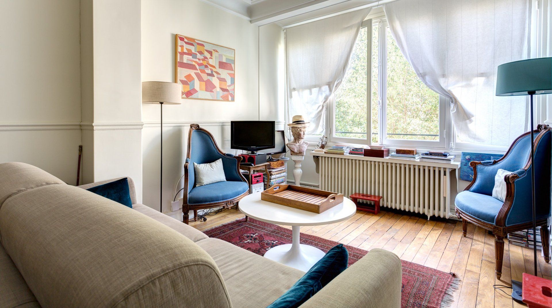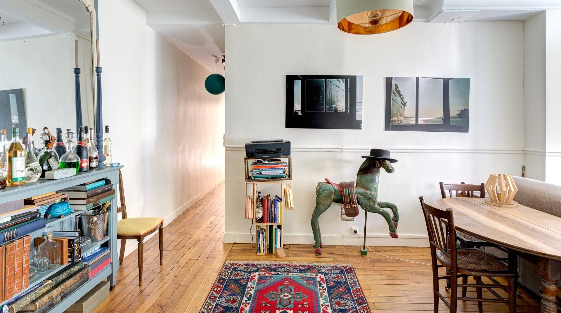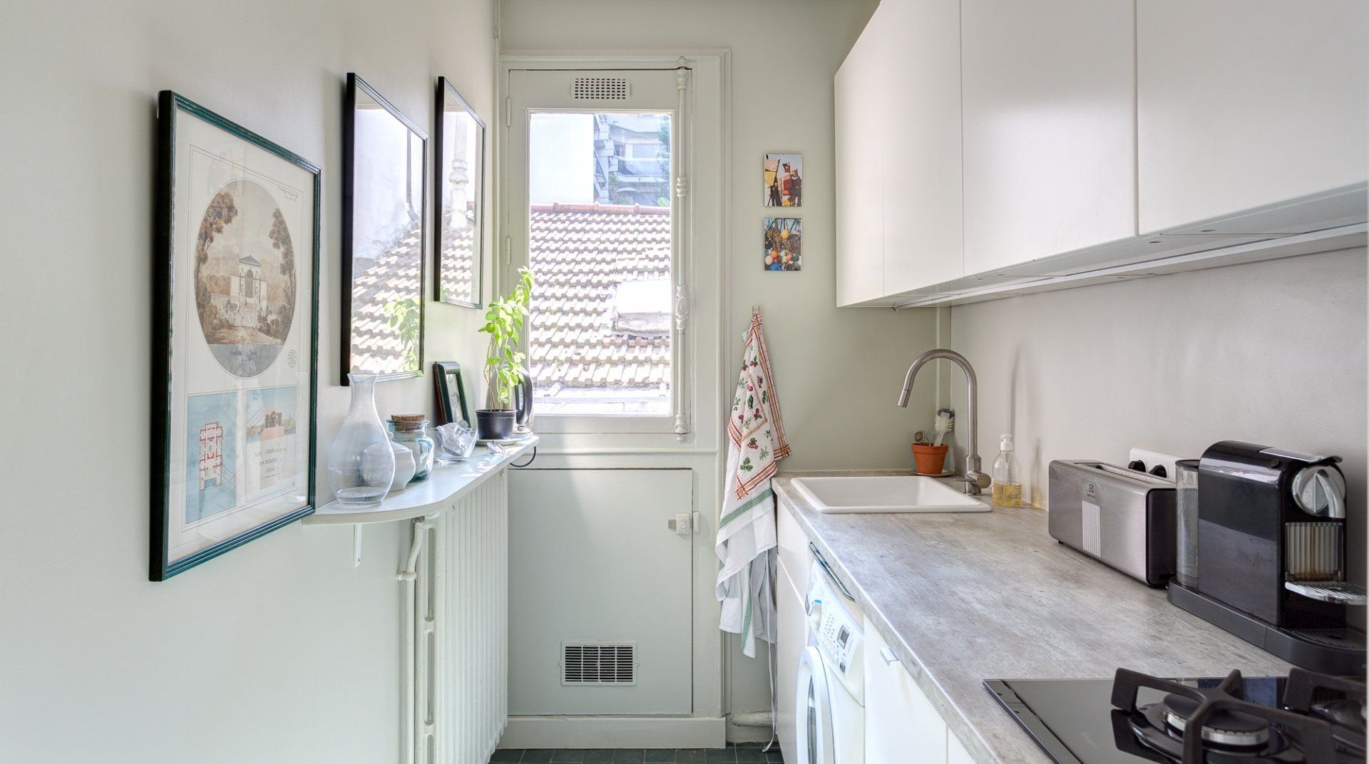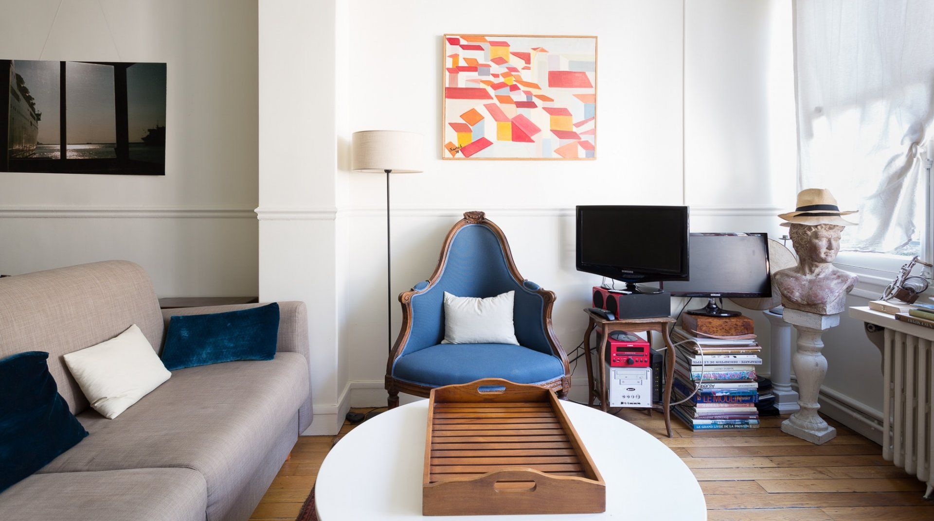 This one bedroom apartment is located away from the centre of Paris in the 17th arrondissement, perfect if you’ve ticked the tourist hotspots off your list and want to immerse into a real local’s neighbourhood. Just off a main street, the apartment overlooks a beautiful plant and flower-filled courtyard. It is light and bright, and has a quirky mixture of vintage furniture (like the Louis XVI armchairs in the living room), modern design (like the well-equipped kitchen) and hand-made artefacts (like the furniture robot created by your hosts brother!).