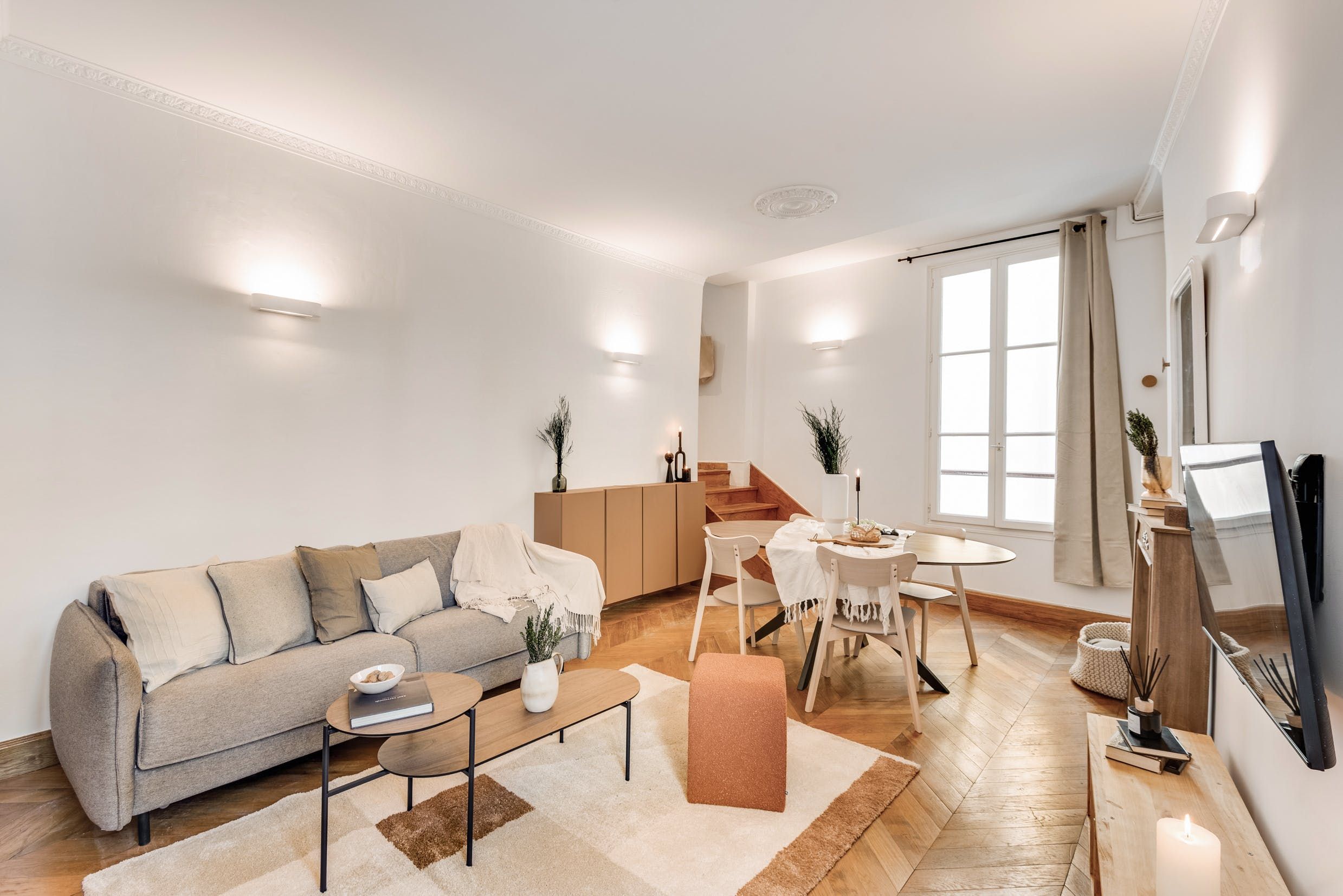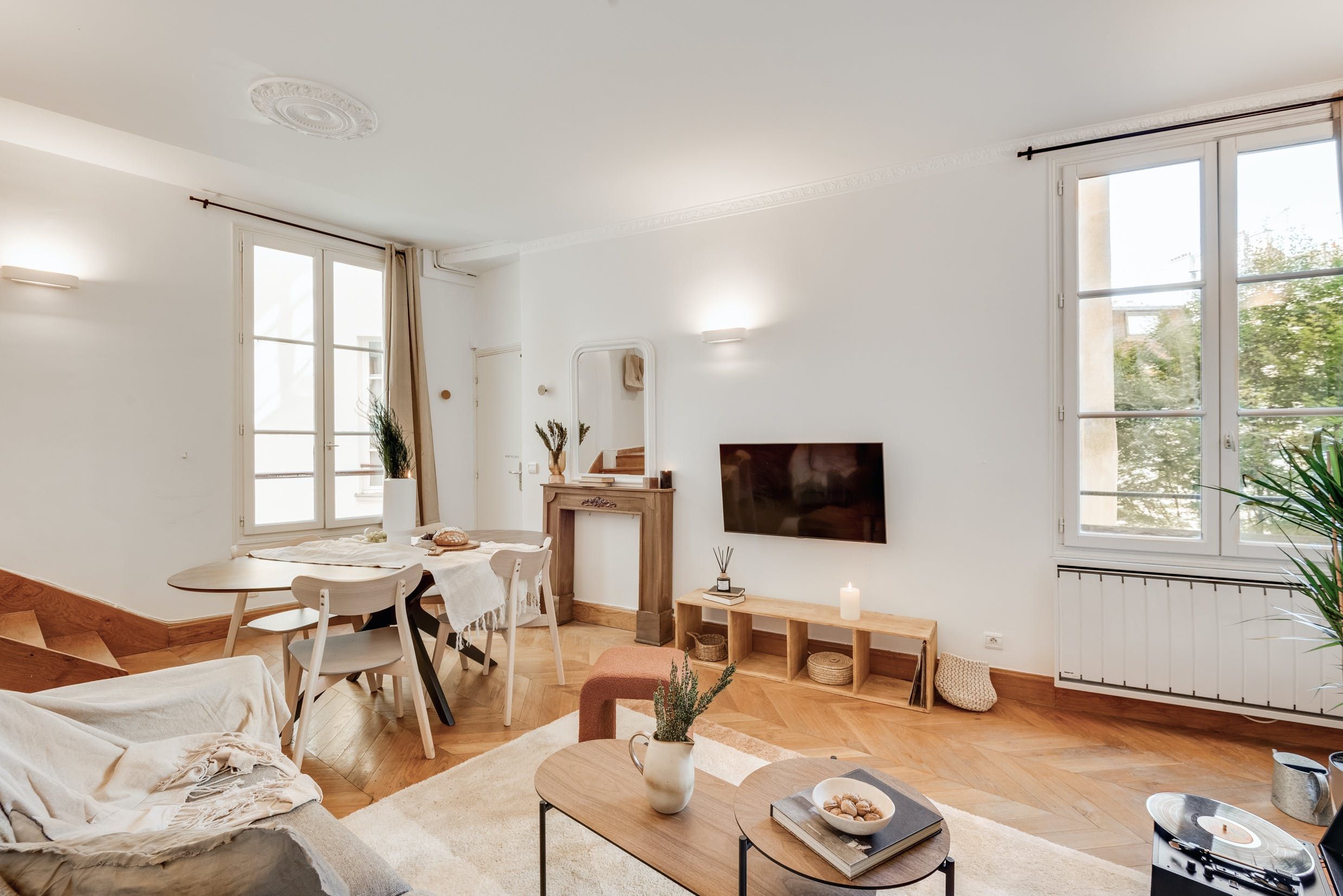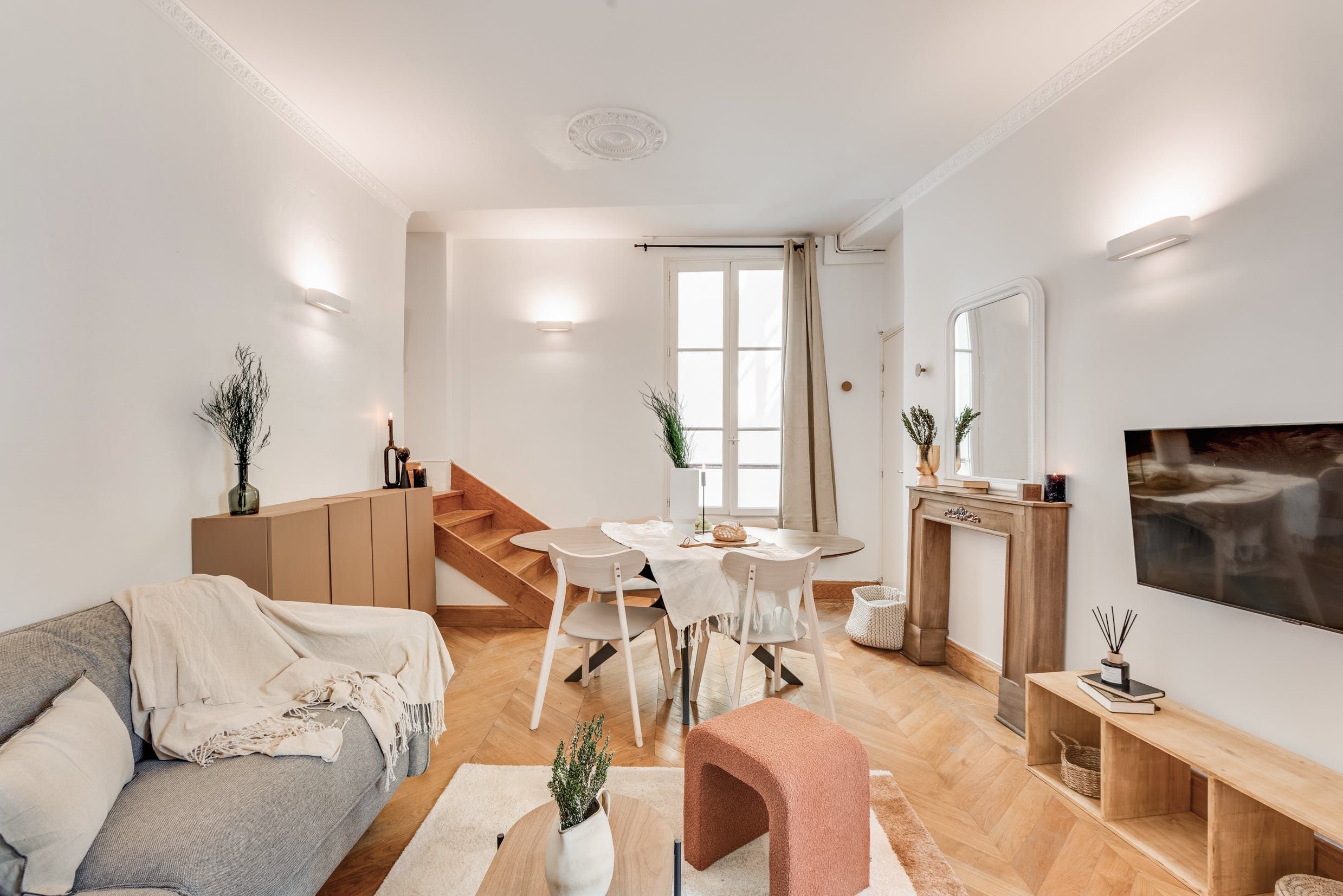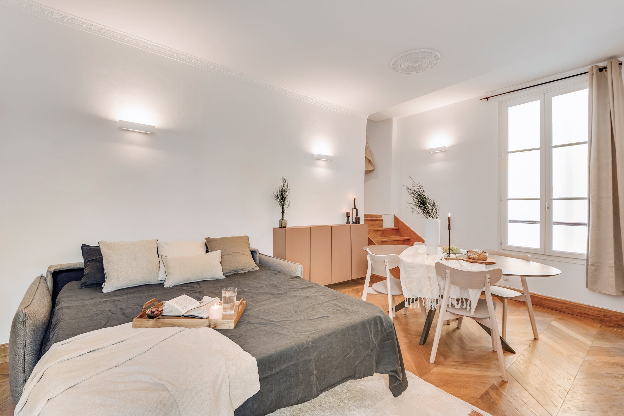 Tucked away in the 6th arrondissement of Paris, this apartment puts you within walking distance of some of the most iconic sights. Stroll to The Louvre Museum, Notre Dame or Sainte-Chapelle. And when you're home, take a load off in the open living and dining area. There's also a laptop-friendly workspace for anyone sitting in on Zoom calls, and thanks to classic French architecture, the home is suffused with light from the large windows. Two additional guests are welcome to the sofa bed in the living room without compromising the comfort of the space. Well located and practical? Yes please.