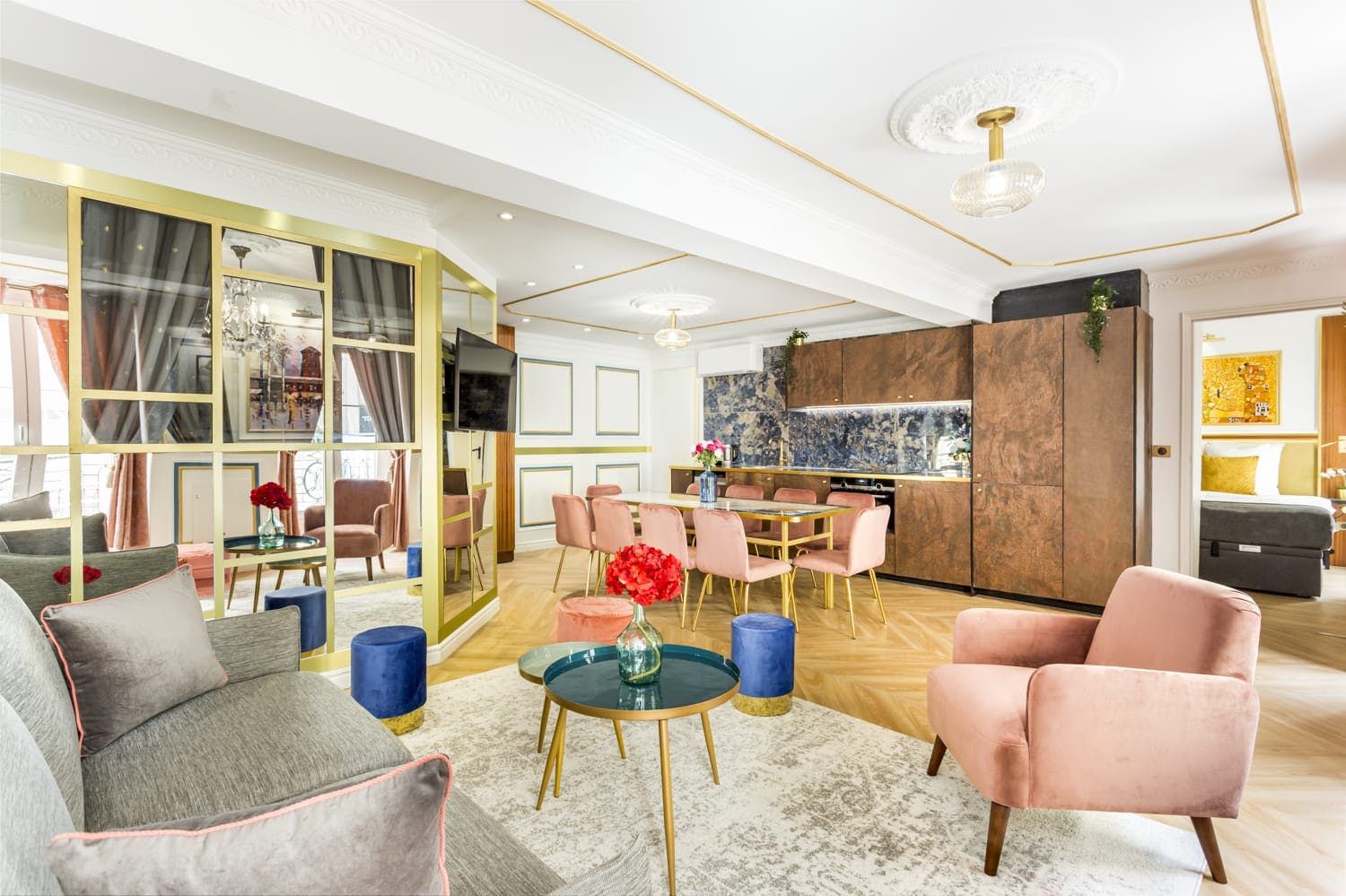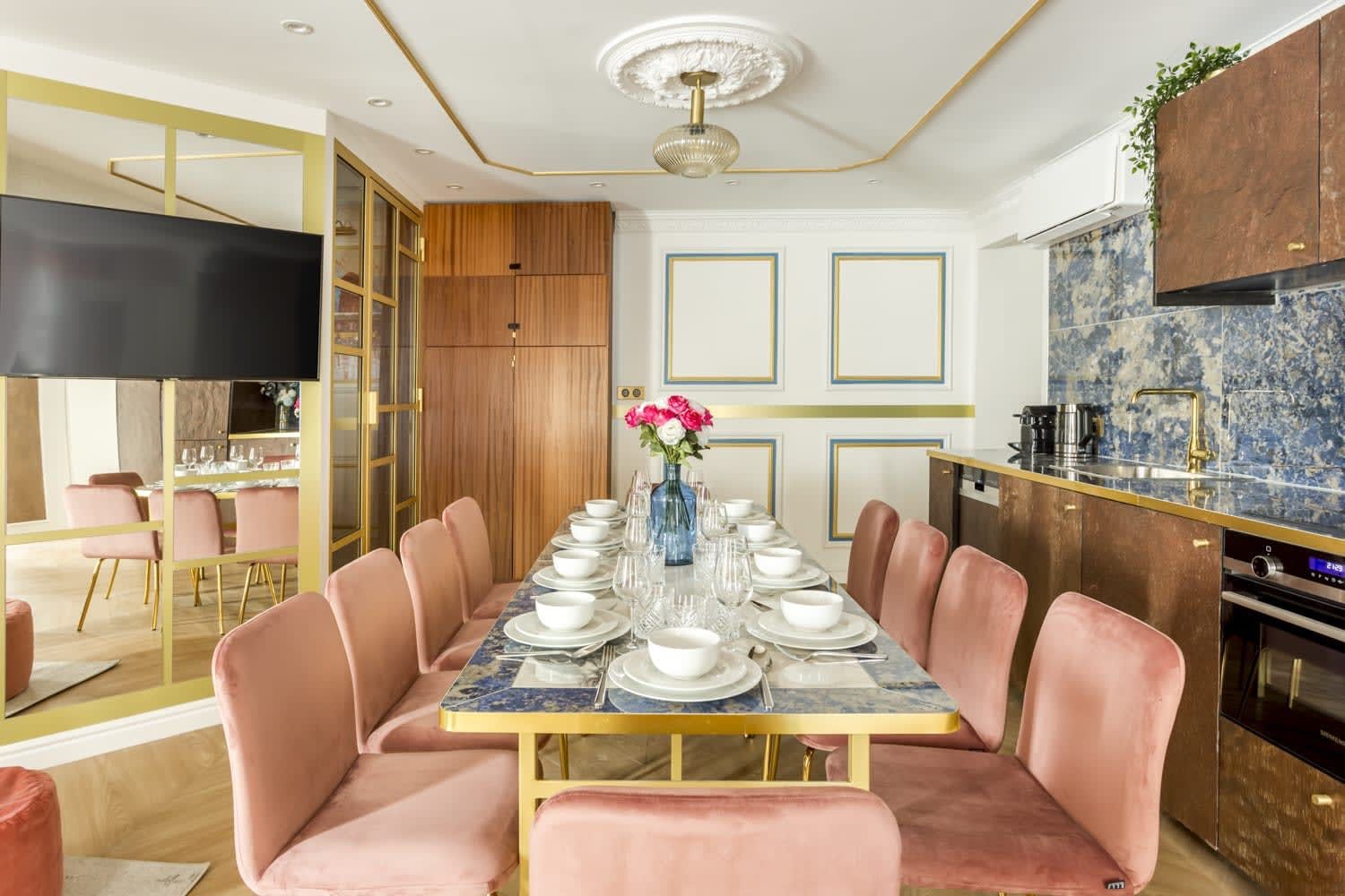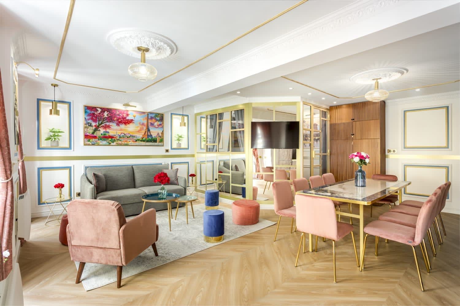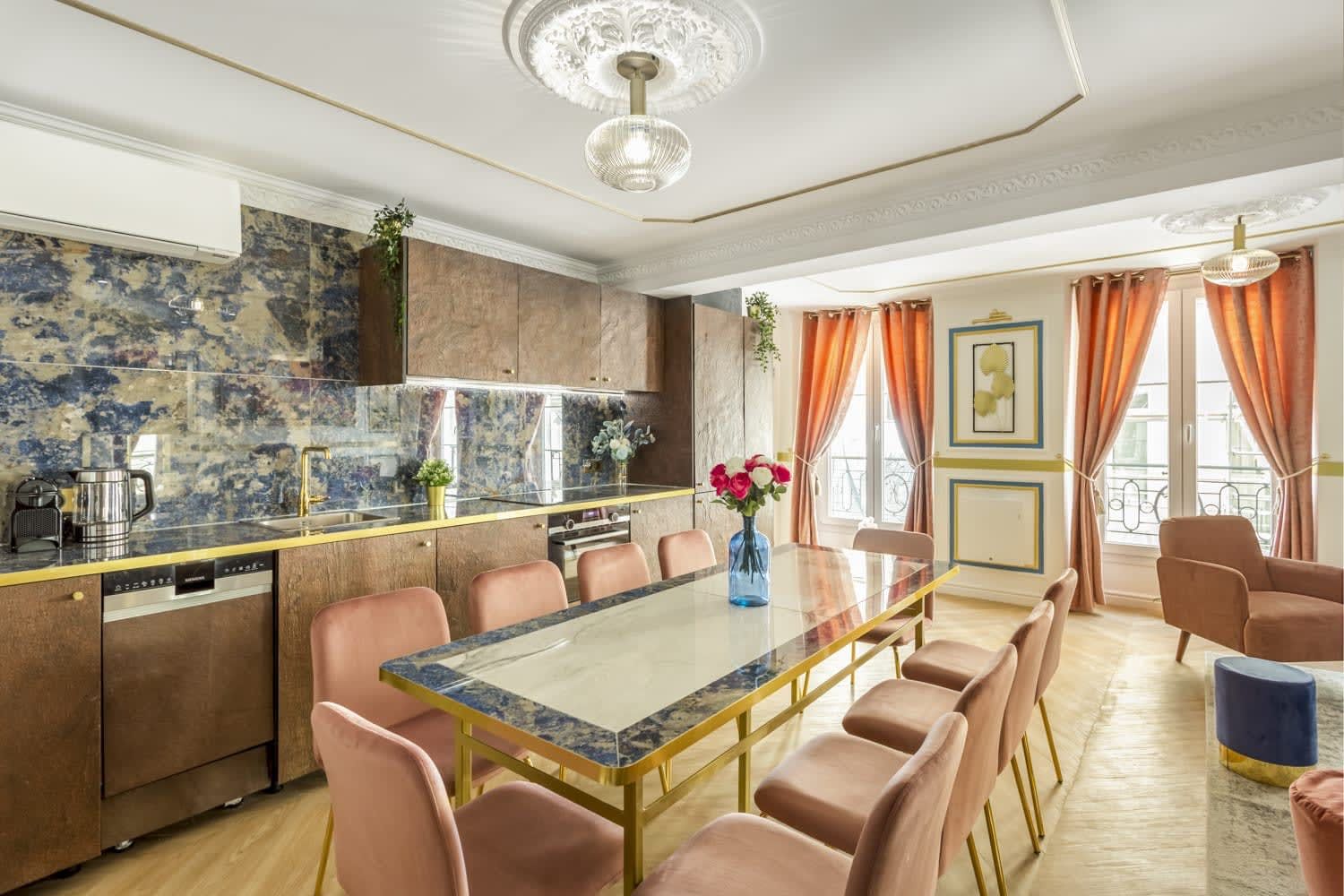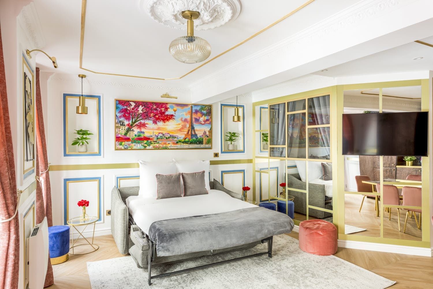 This colourful home is situated in the 2nd arrondissement – this Parisian apartment is the ideal city retreat. It has been designed by architects and features panelling and a palette of blues, greens, pinks and golds, giving the place a royal vibe. We love the sumptuous marble bathrooms, perfect for getting ready for an evening out in the City of Love. This home is well suited to business professionals, a group of friends or a family looking for a great location.