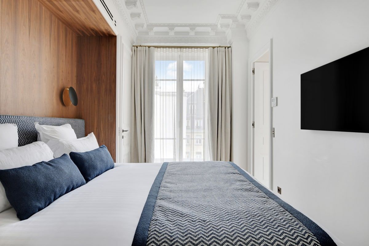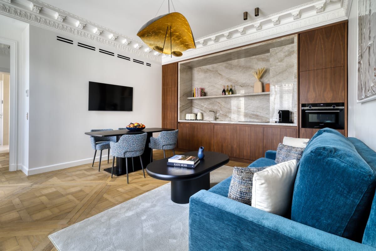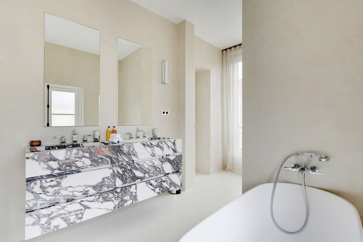 This apartment has a great address if you’re looking to immerse yourself in Paris’s cultural history. It’s just a short stroll from the Louvre Museum, the Palais Royal and the Jardin des Tuileries, while other attractions within walking distance include the Place de la Concorde and the Centre Pompidou. Back at this elegant home, there’s an open-plan living room which also accommodates guests three and four on a sofa bed. We have to say we love the luxurious bathroom here too – this place is perfect for a stylish City of Light getaway.