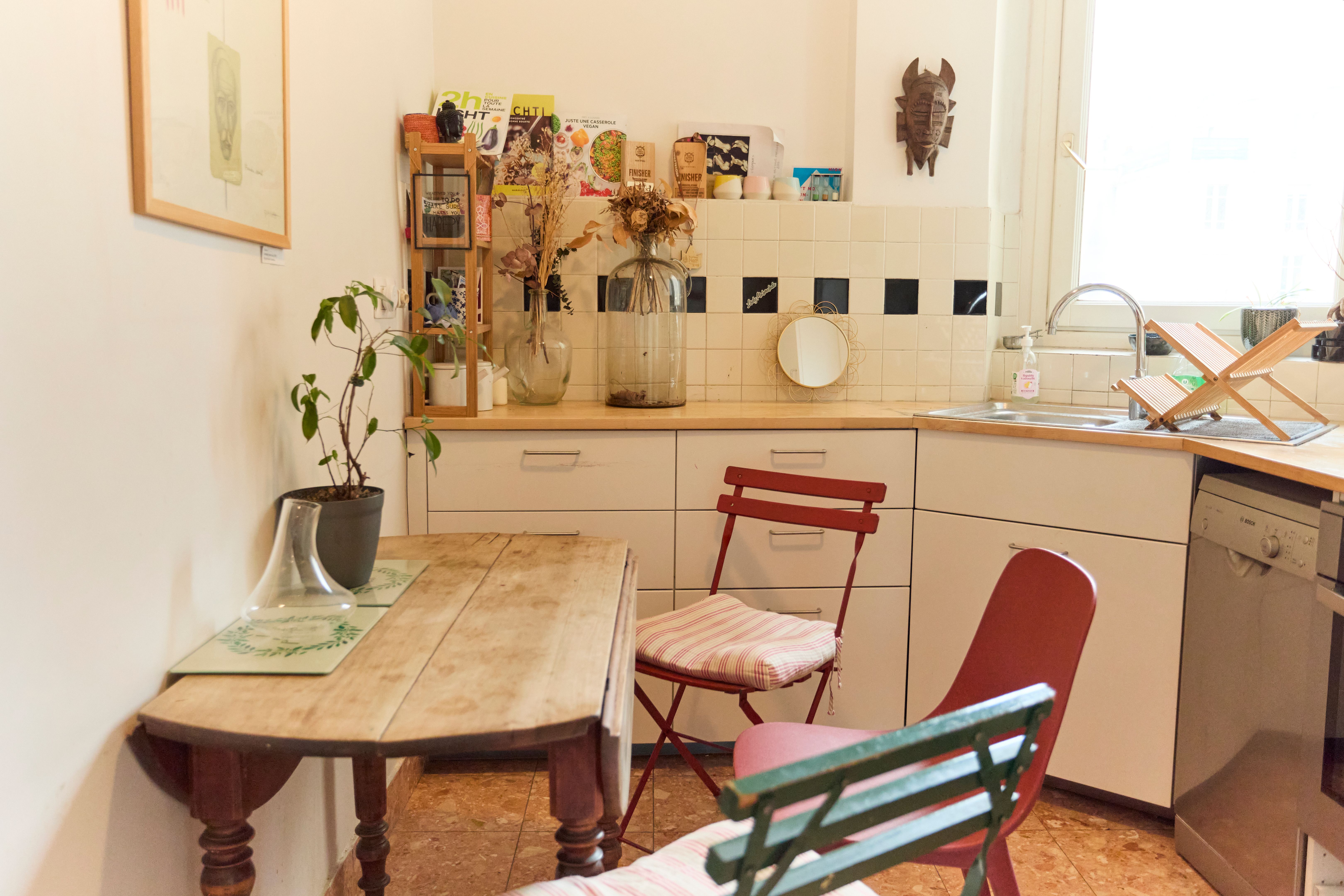 In a typical period building, your home is on a high floor and is bursting with character. Bright and quiet, you'll be wowed by the tall windows, high ceilings and wrought-iron balconies. There's a lot of love gone into styling this apartment, with homely touches and a real lived-in feel. Smart and stylish, the all-white walls and woodblock floors are timeless, and we love the well-stocked kitchen where you can sip your morning coffee at the little table each morning before heading off to explore.