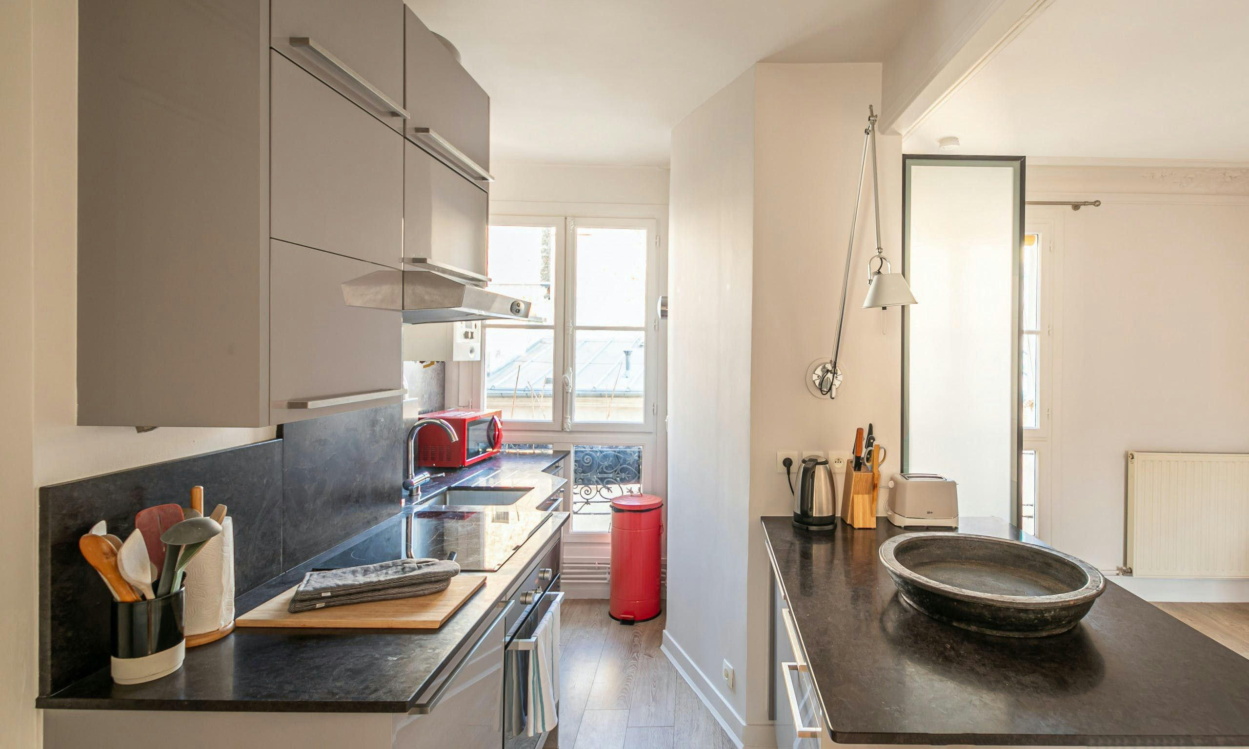 You'll find this apartment in the 6th arrondissement. Not only are you strolling distance from the shops, restaurants, and sidewalk cafes in Saint-Germain-des-Pré, but all the famous landmarks are just a quick metro ride away. When you're not out and about, make yourself at home in this light-filled pad. It's not the biggest (nor the most modern), but it's a fuss-free option for families and couples. There's a desk if you need to catch up on work and a sofa bed that can sleep one adult or two children. We love the character features most of all – from the large French windows to the Juliet balconies overlooking the typically Parisian courtyard.