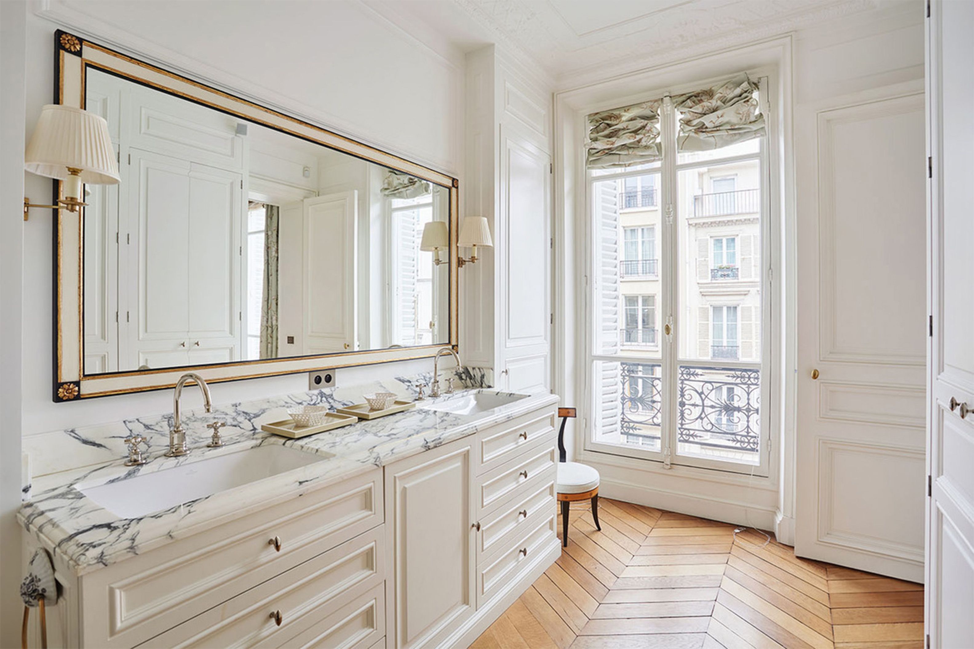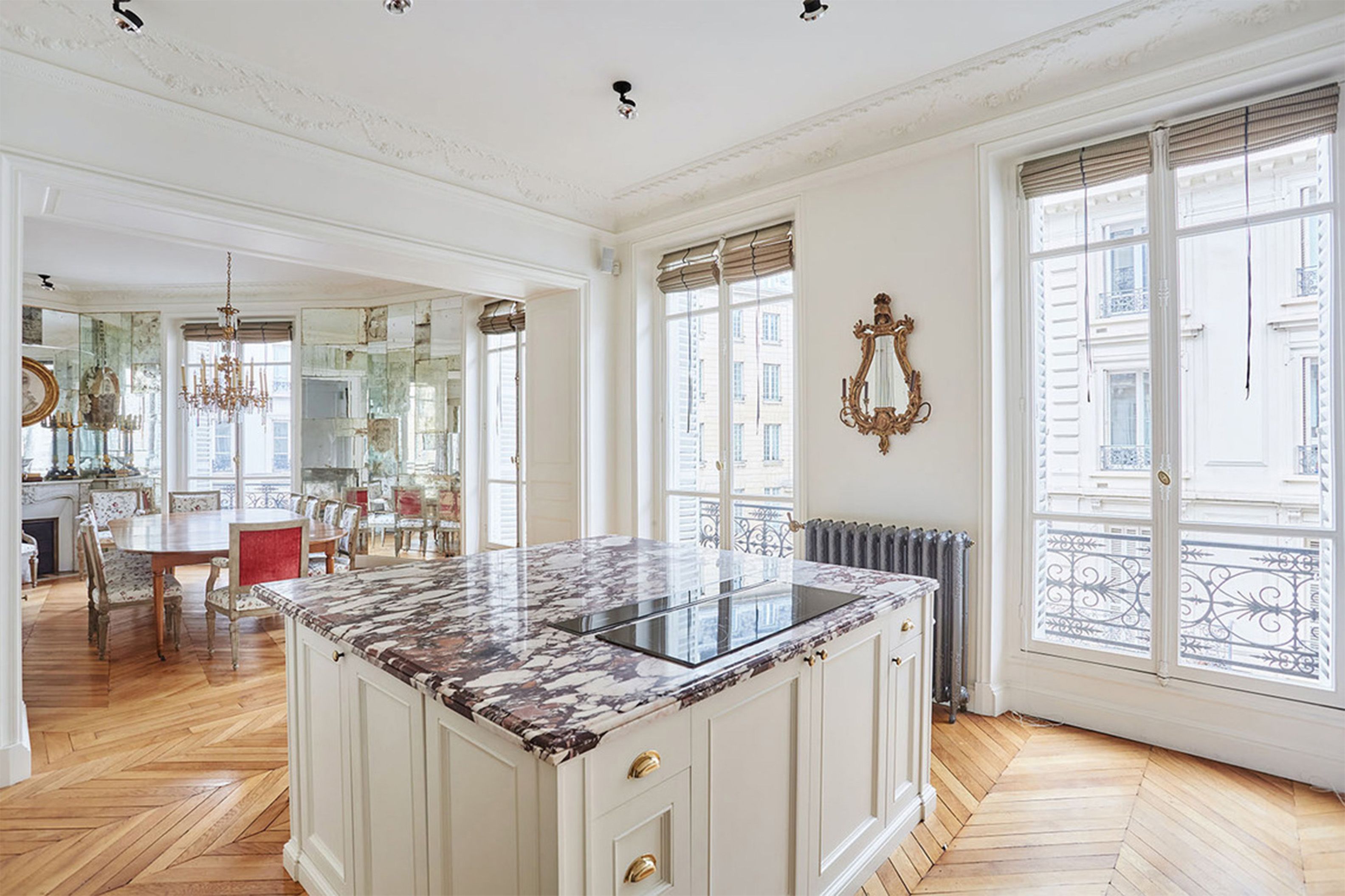 Not only does this stunning home place you in the heart of Paris' luxurious 6th arrondissement, but the classical interiors guarantee a memorable stay. There's a touch of opulence in the marble bathrooms and mirror-walled dining room, but plush furnishings and warm herringbone floors keep this apartment from feeling like a museum piece. We also love the spacious kitchen with its large island – it's perfect for entertaining. Original Haussmann balconies overlook the streets of Saint-Germain-des-Prés, a vibrant area filled with shops, restaurants, and parks – don't miss a visit to the tranquil Jardin du Luxembourg, just ten minutes away.