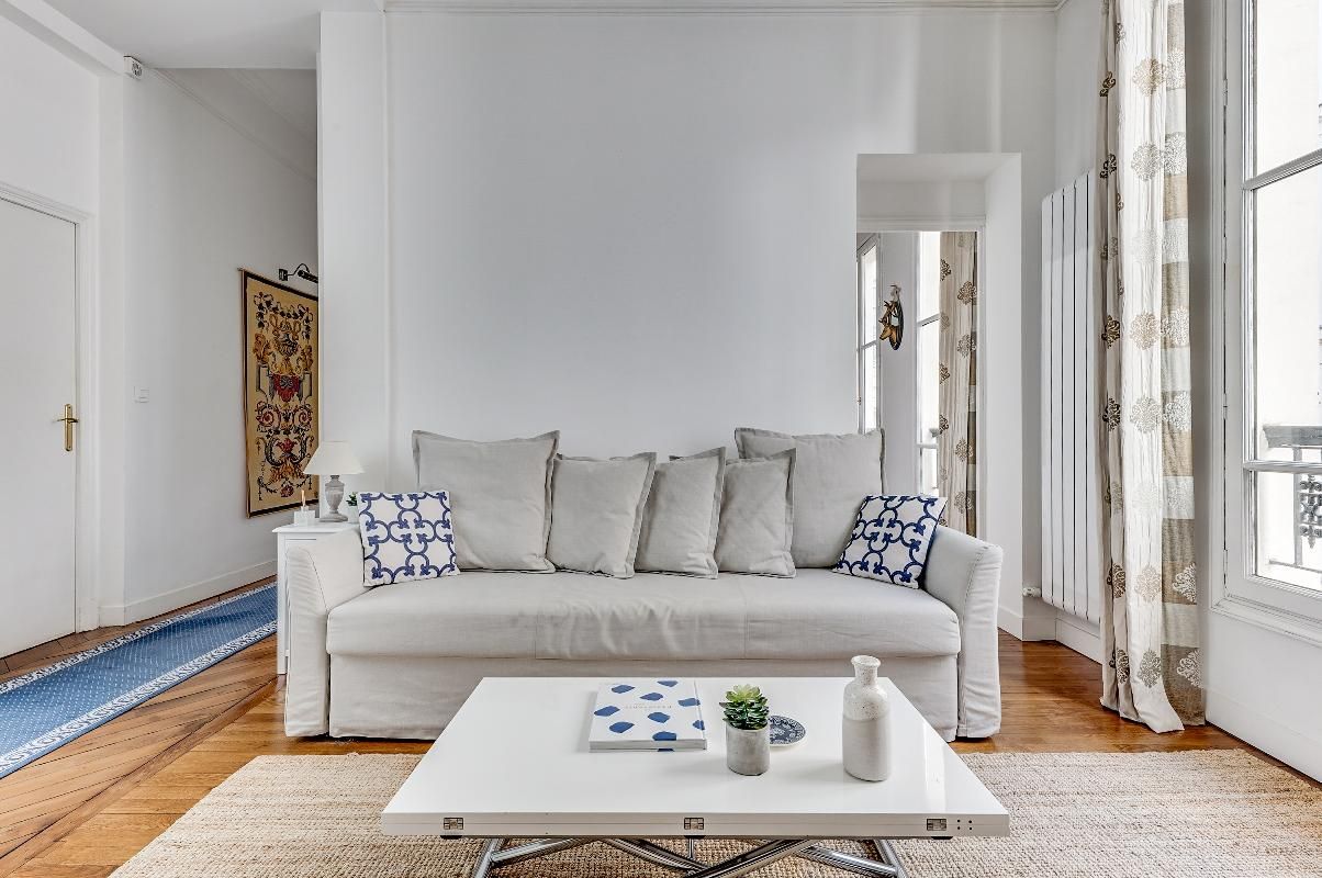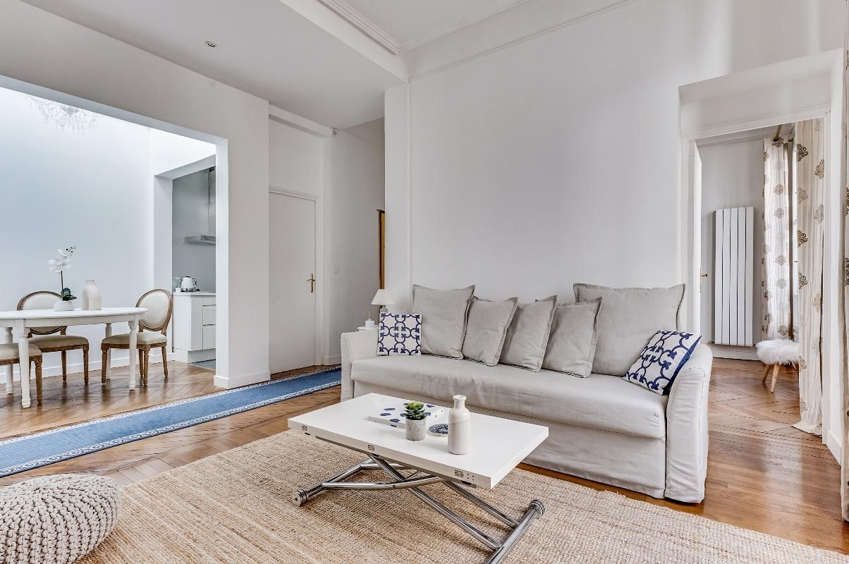 You'll want to make yourself right at home in this chic apartment. It's bursting with Parisian character from head to toe – we're talking high ceilings, traditional French windows, and original wooden floors. With two bedrooms (one of which is a twin), we think it's ideal for families seeking an extended stay. Location-wise, you're in the heart of the city here. Galeries Lafayette and Palais Garnier are within walking distance, and plenty of shops and restaurants are nearby. And, for adventures further afield, the metro is just a quick stroll away.
