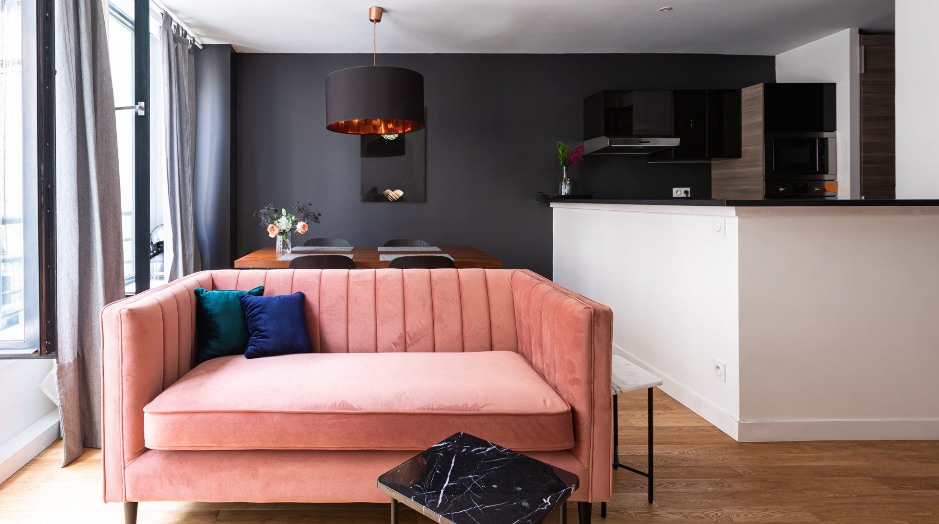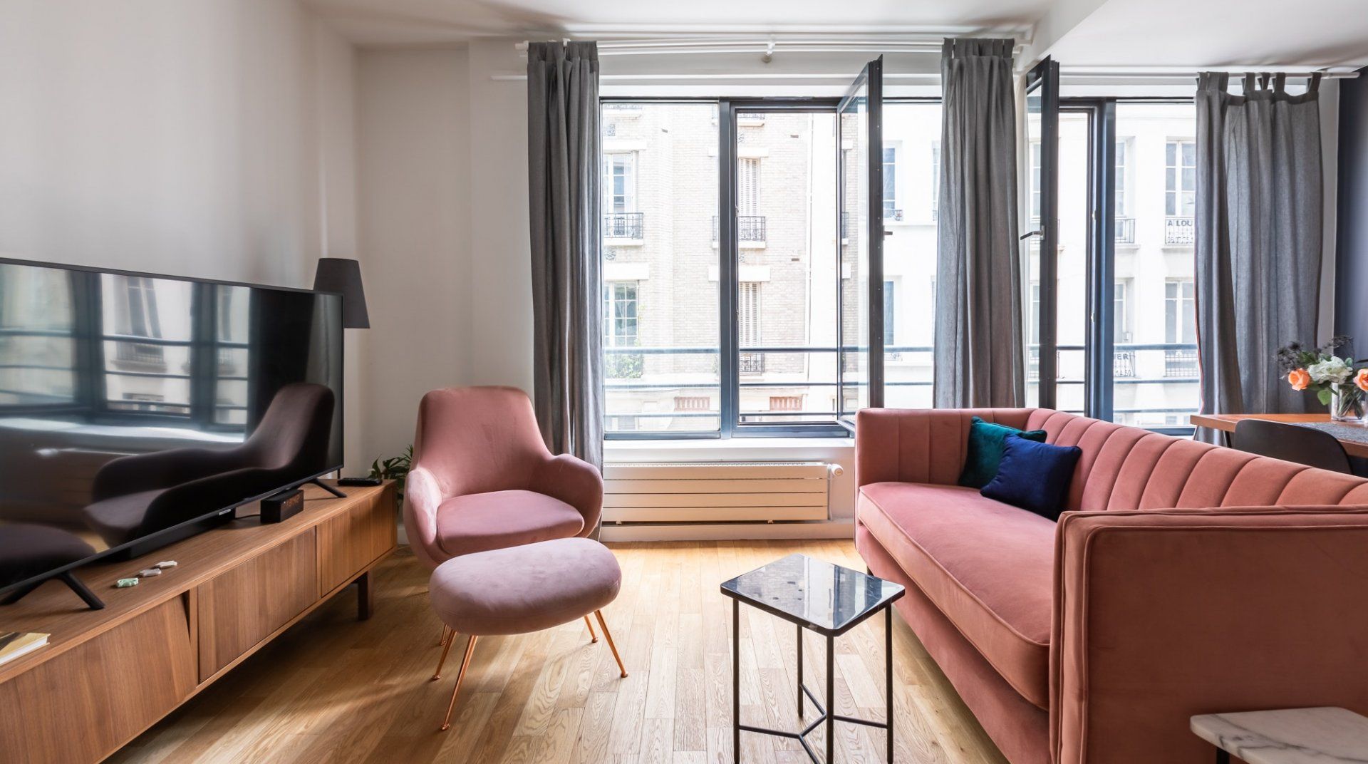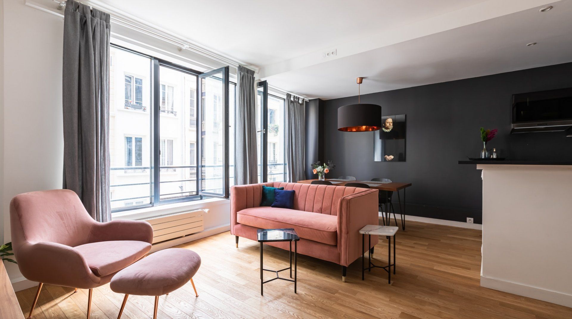 Minimalist and modern, this stylish apartment is just the ticket for a stay in Paris. Begin your days with croissants and coffees at the roomy dining table, all the while admiring the bustling street view out the large sash windows. Following an afternoon of exploring, come home and take a quick snooze on the blush pink sofa or in one of the stylish bedrooms. Then, once you're feeling well-rested, head out for a night on the town. Les Halles is a lively neighbourhood with plenty of bars, restaurants, cafes and even jazz clubs to idle away the evening in. Whether you're dining on classic French cuisine or sipping wine in a picturesque bistro, this area is ripe with things to do. As an added bonus, a few of Paris' most famous landmarks are within walking distance – the Louvre is fifteen minutes away, the breathtaking Jardin des Tuileries are twenty minutes on foot, and Réaumur-Sébastopol station is just around the corner when you want to go further afield.