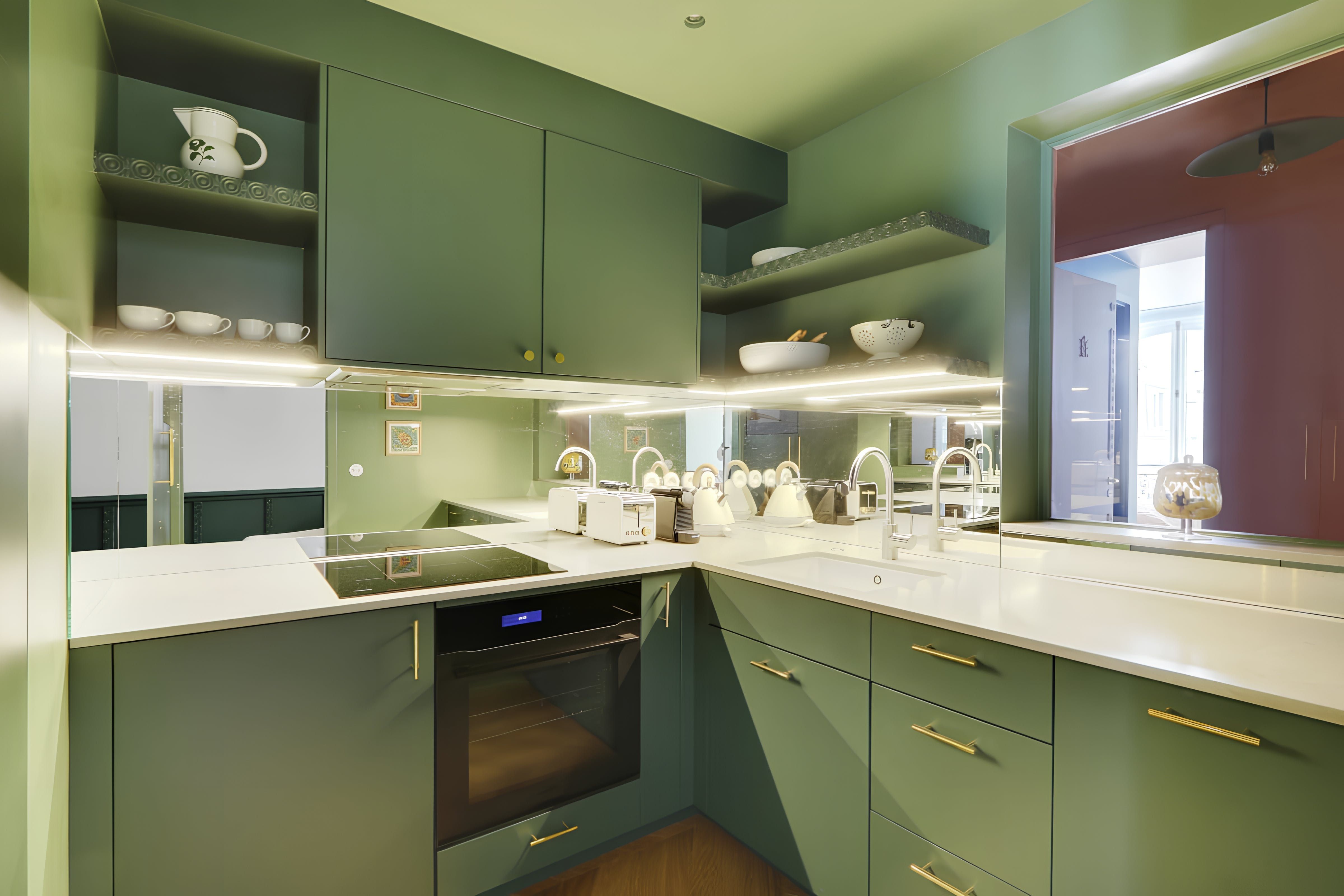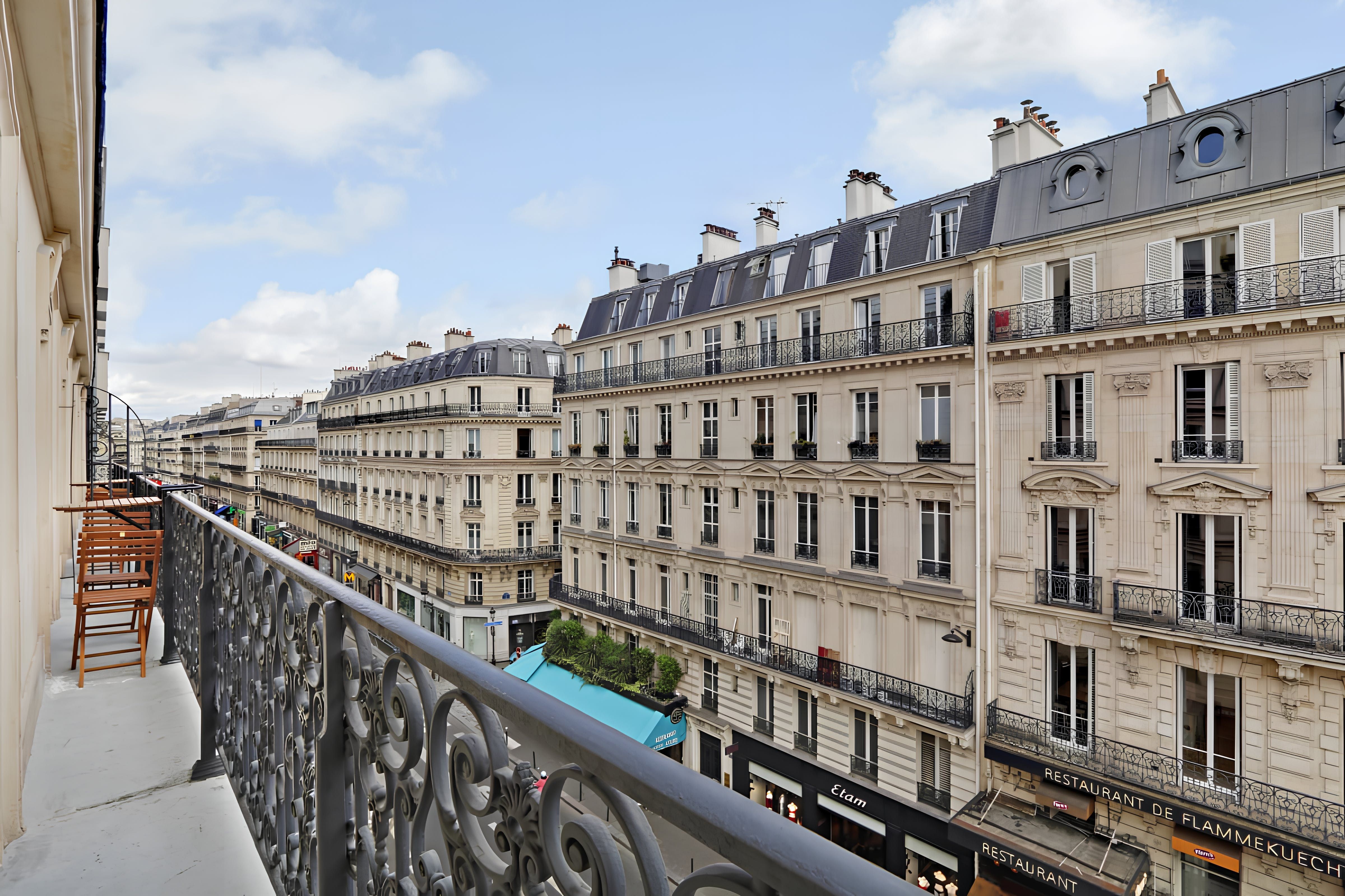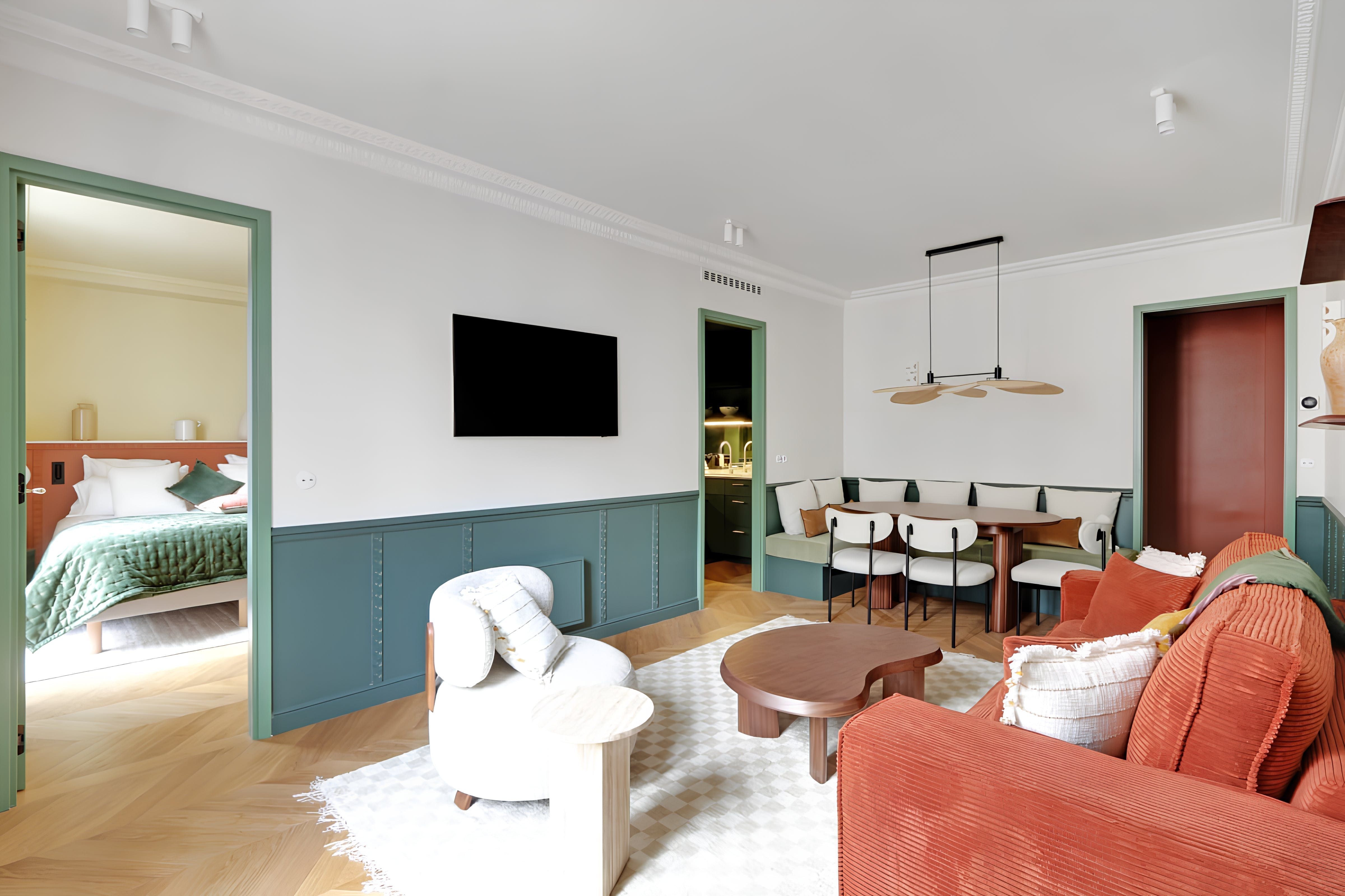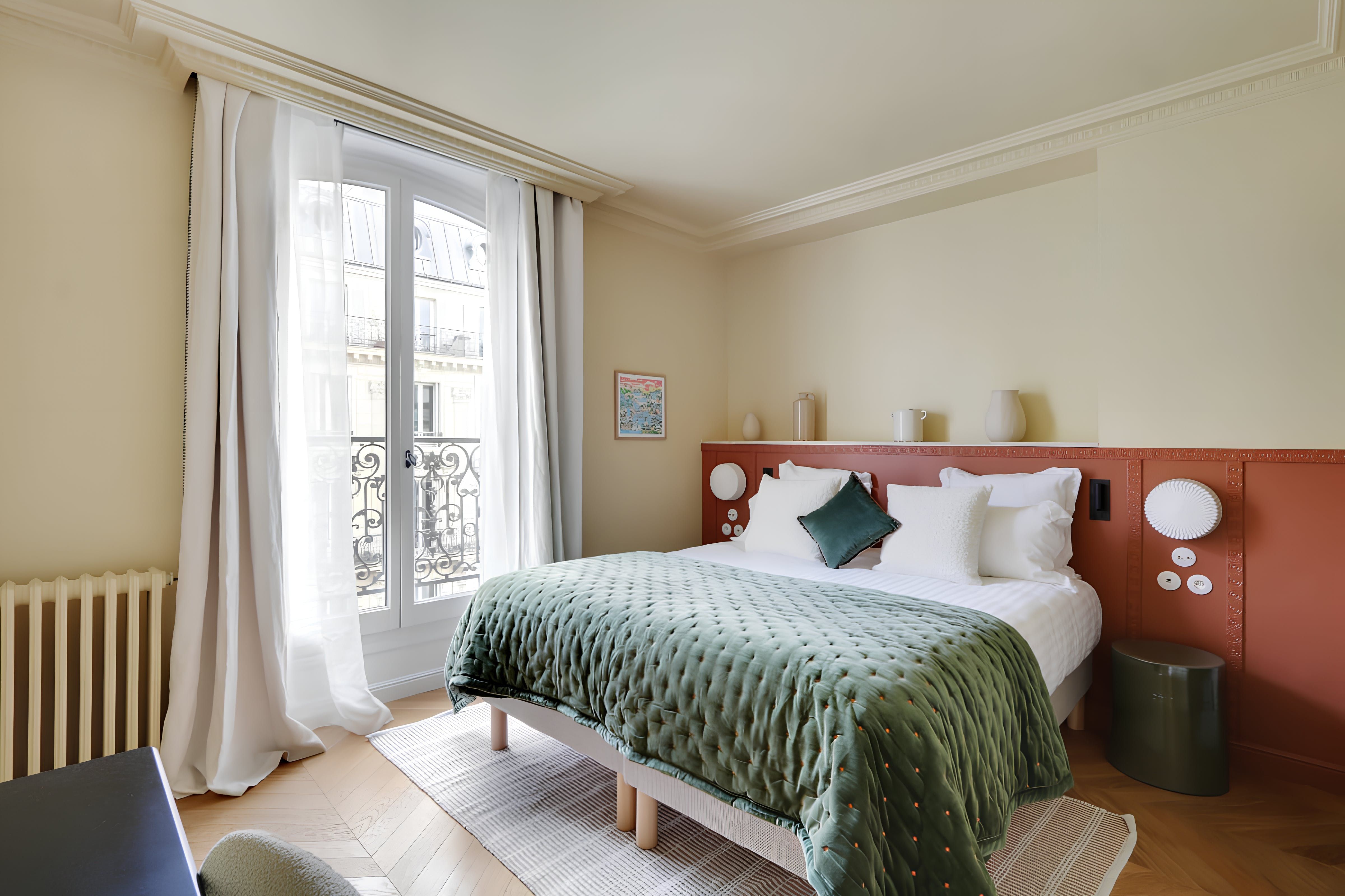 Housed in a typical Haussmann building in the heart of Paris, this apartment is right in the mix. You'll find boutiques, restaurants and cafes on your doorstep as well as plenty of public transport options for travelling to the city's most iconic landmarks. At home, the colourful appearance and comforting spaces will help to recharge your batteries after busy days of sightseeing. But the real standout here is the charming balcony, which serves as a great spot to watch the hustle and bustle of the city streets below. Note that two people will be sleeping on a sofa bed at full capacity.