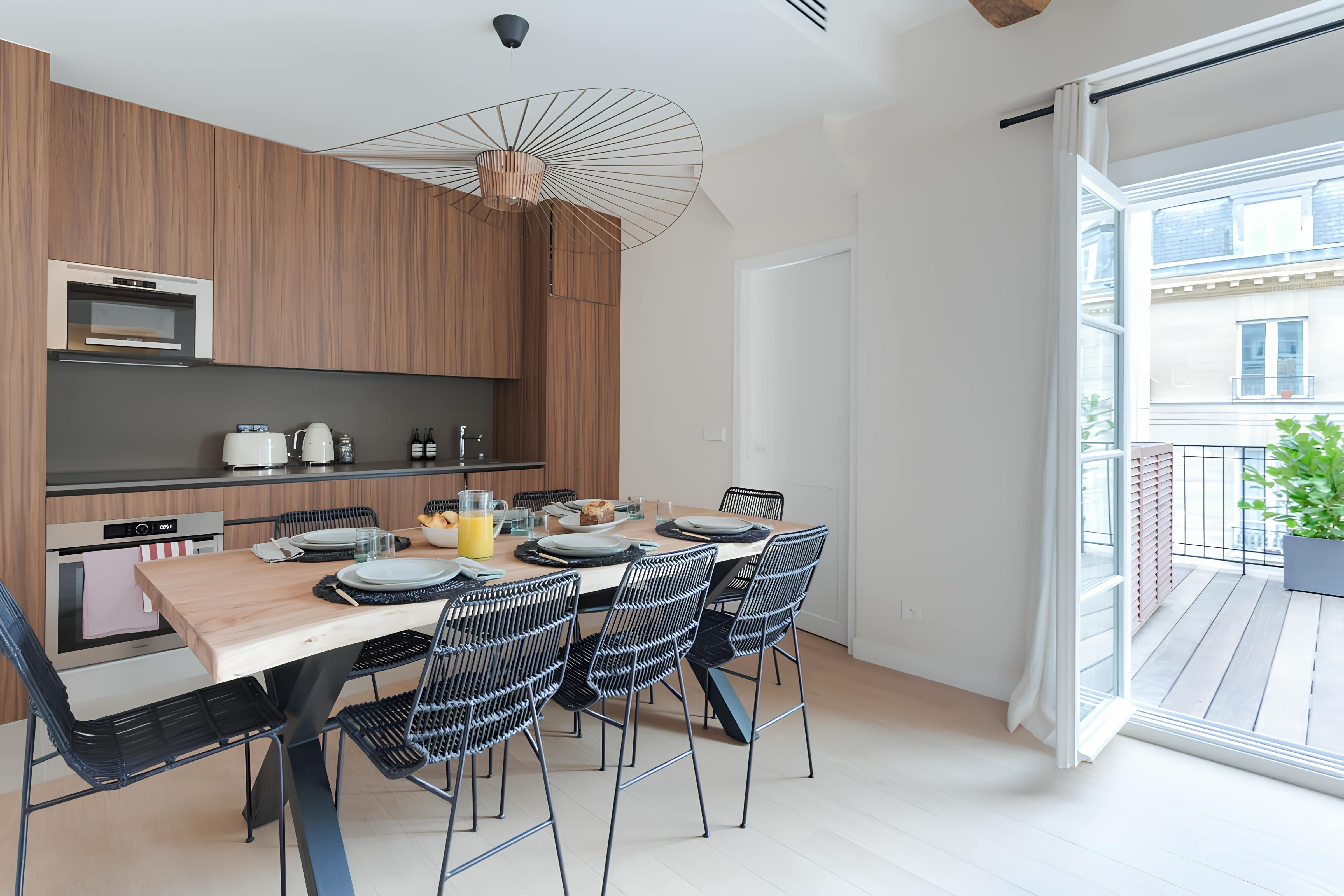 Nestled in the Marais district, you’re never far away from chic cafes, boutiques and trendy galleries with a stay here. Perfect for a family or group of friends, the cherry on the cake of this third-floor Parisian apartment is the private terrace. Just the spot for sundowners after a day of sightseeing, it’s a very welcome addition to this home. When you’re keen to explore, you can take a leisurely stroll through the local streets or hop on the metro to visit some of Paris’ most iconic landmarks.