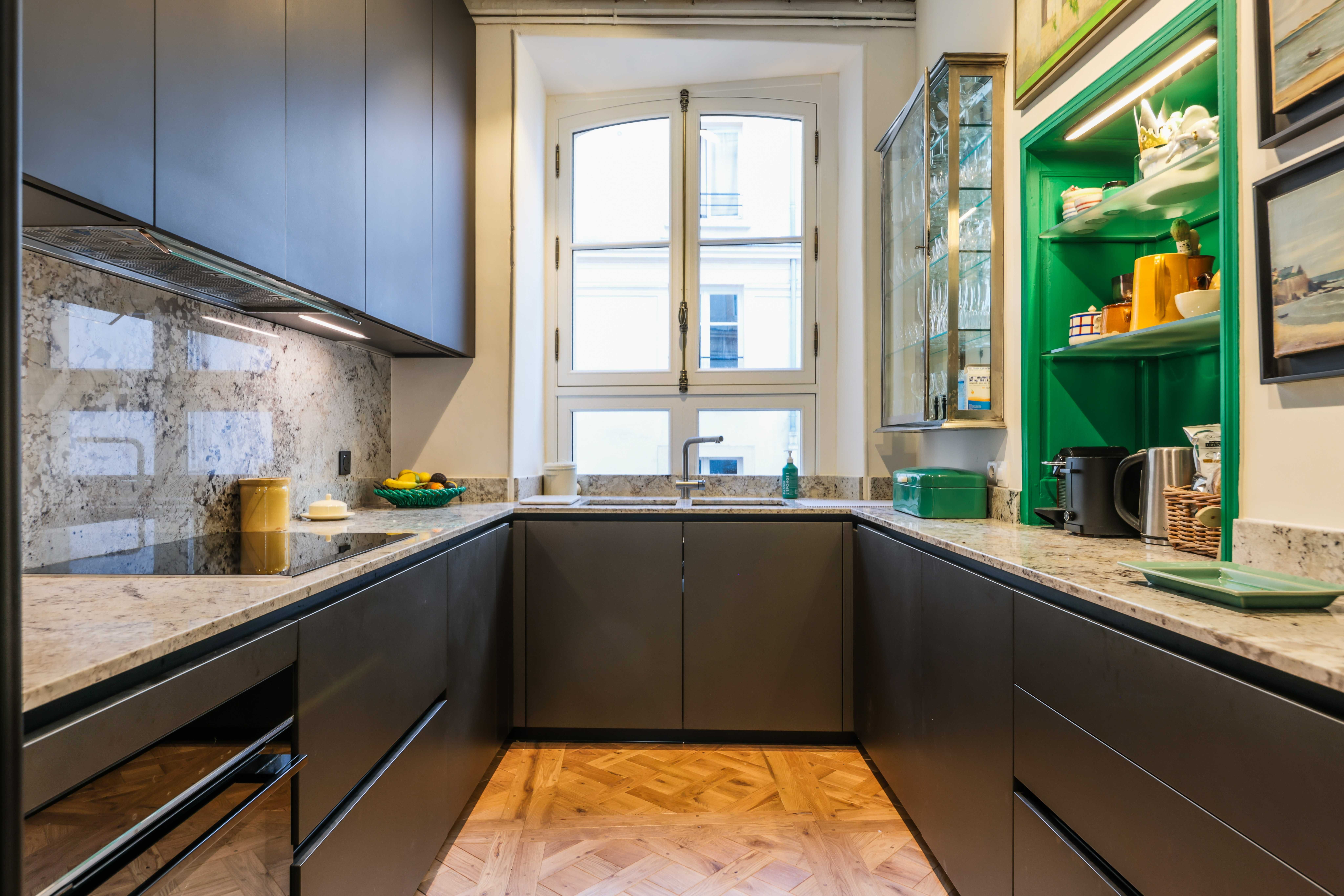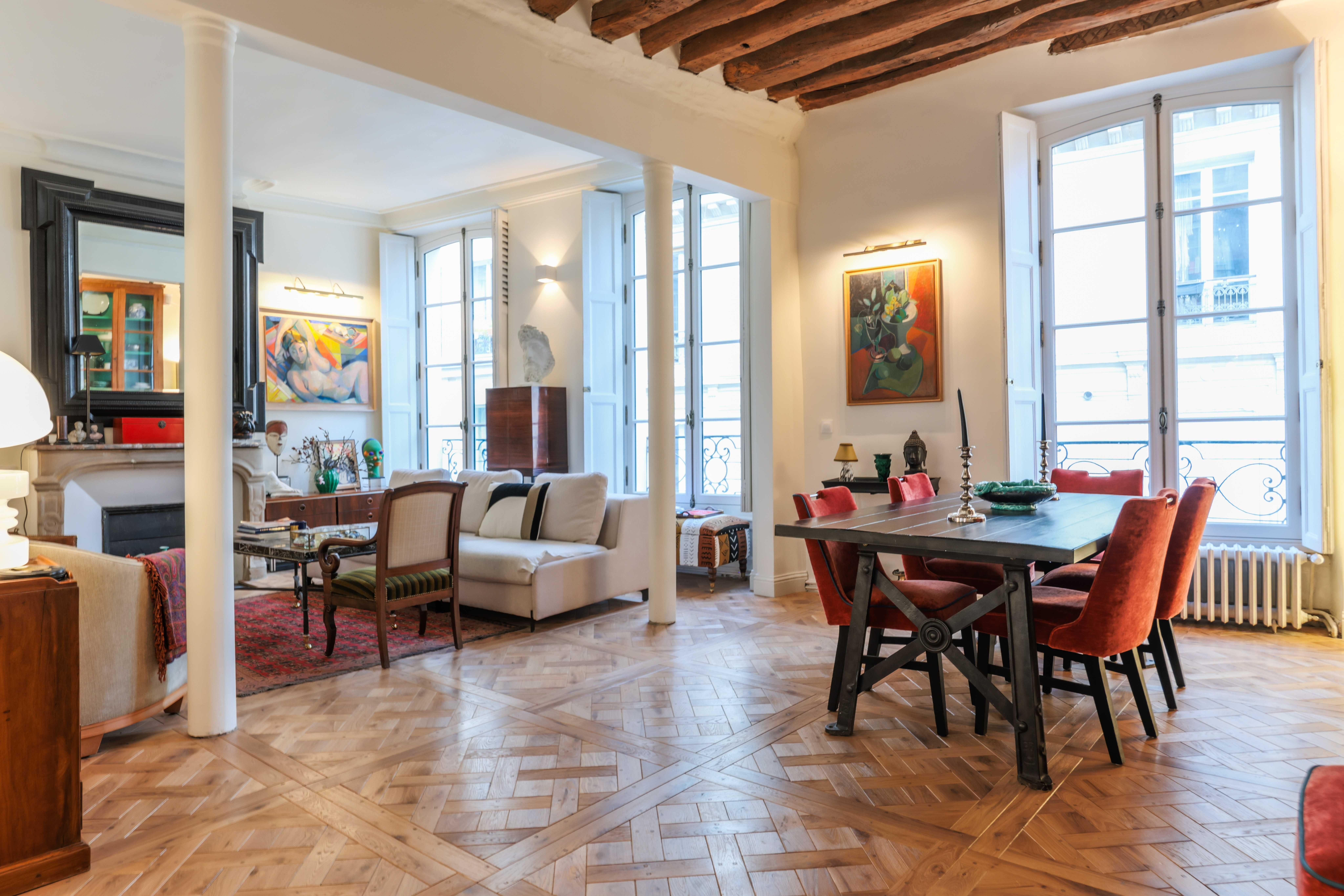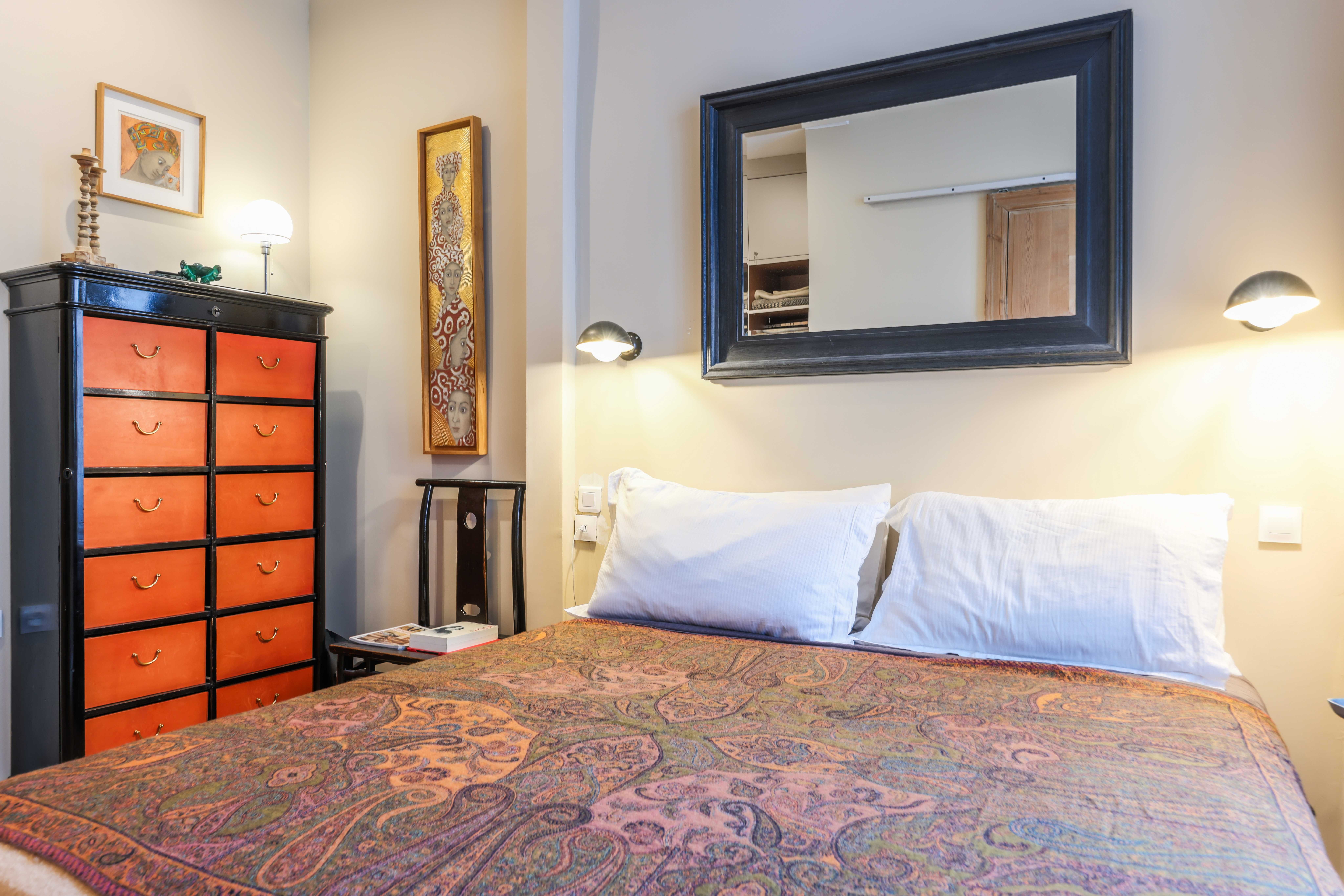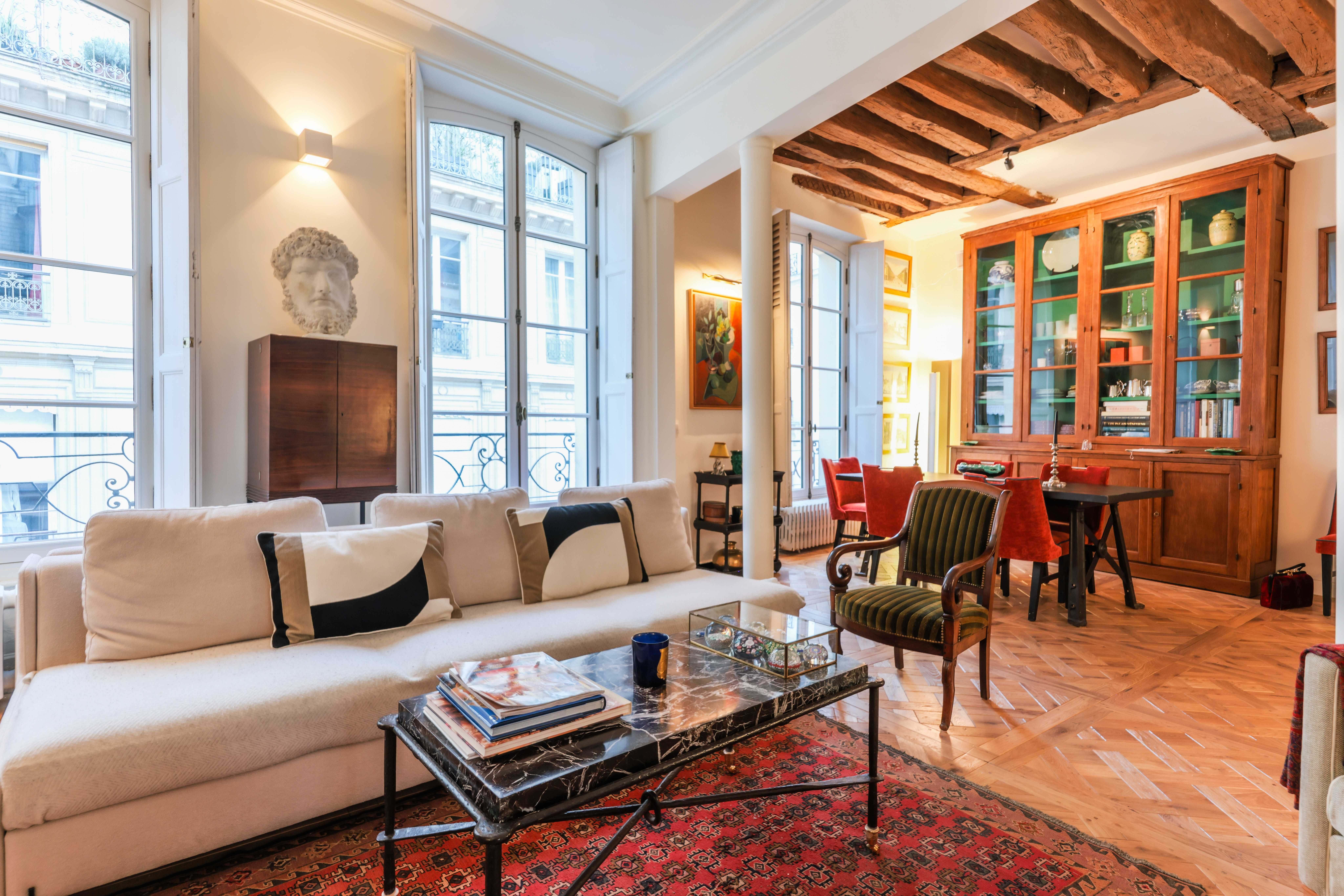 Located in the heart of Marais, this charming apartment offers a peaceful haven in the city, yet with many iconic landmarks within easy reach. Warm and welcoming, we love the high ceilings, exposed beams and traditional parquet flooring here, lending the home bags of character. It’s worth noting that at full occupancy, one guest will sleep on the sofa bed in the living room, which we think is best suited to a child – but it’s an ideal option for families. Locally, you’ll find a plethora of cafes, restaurants and museums – culture and gastronomic delights are a mere stone’s throw away.