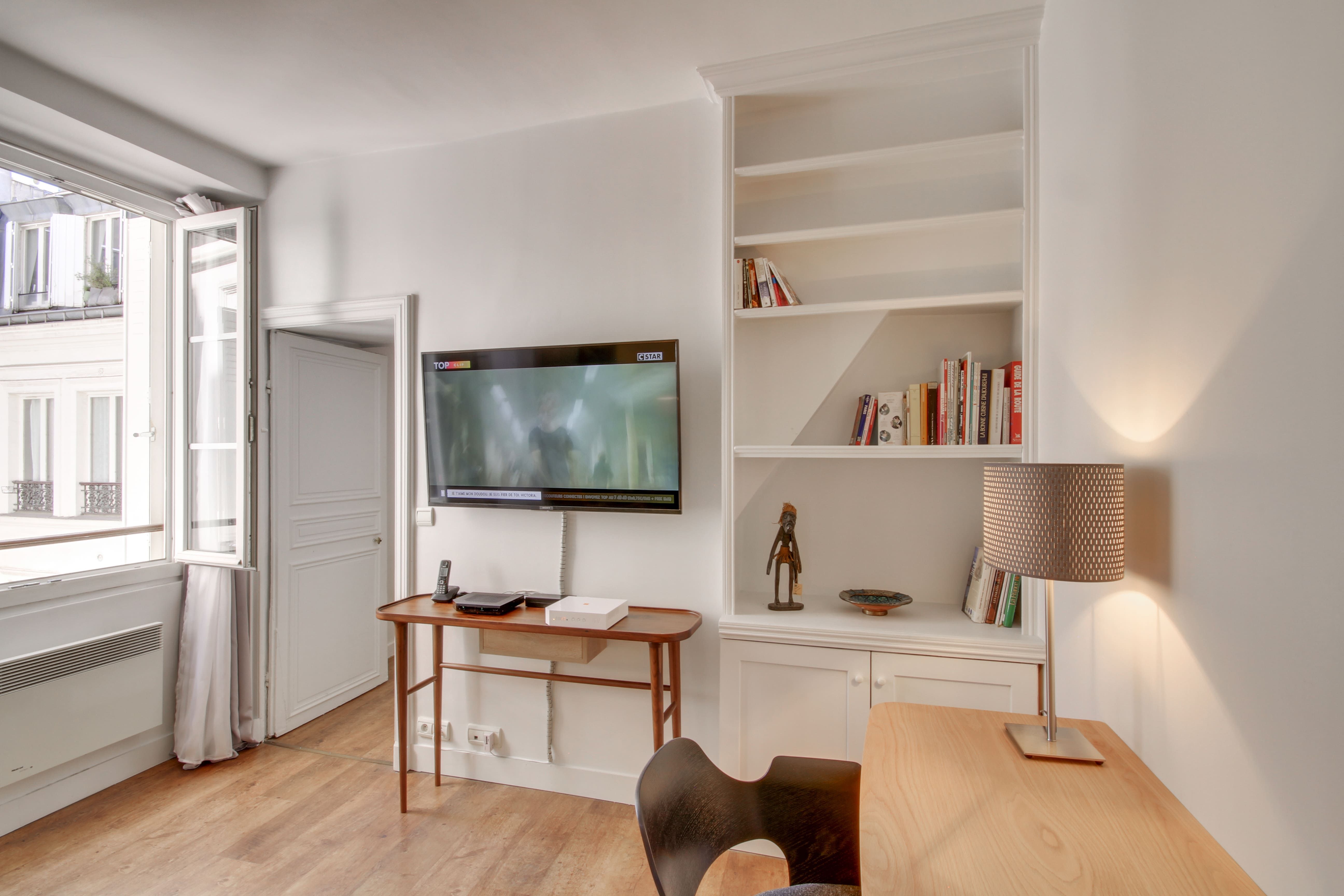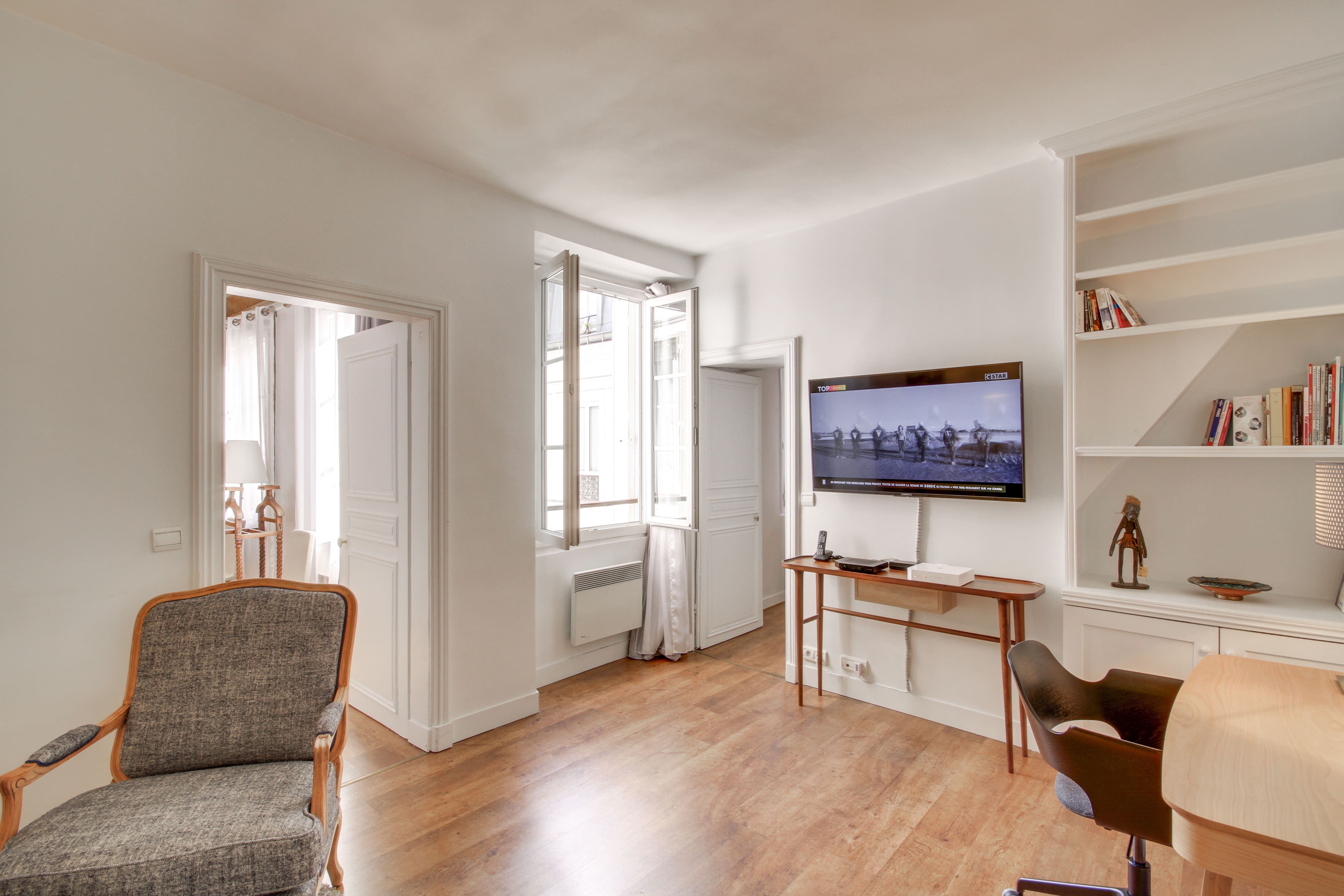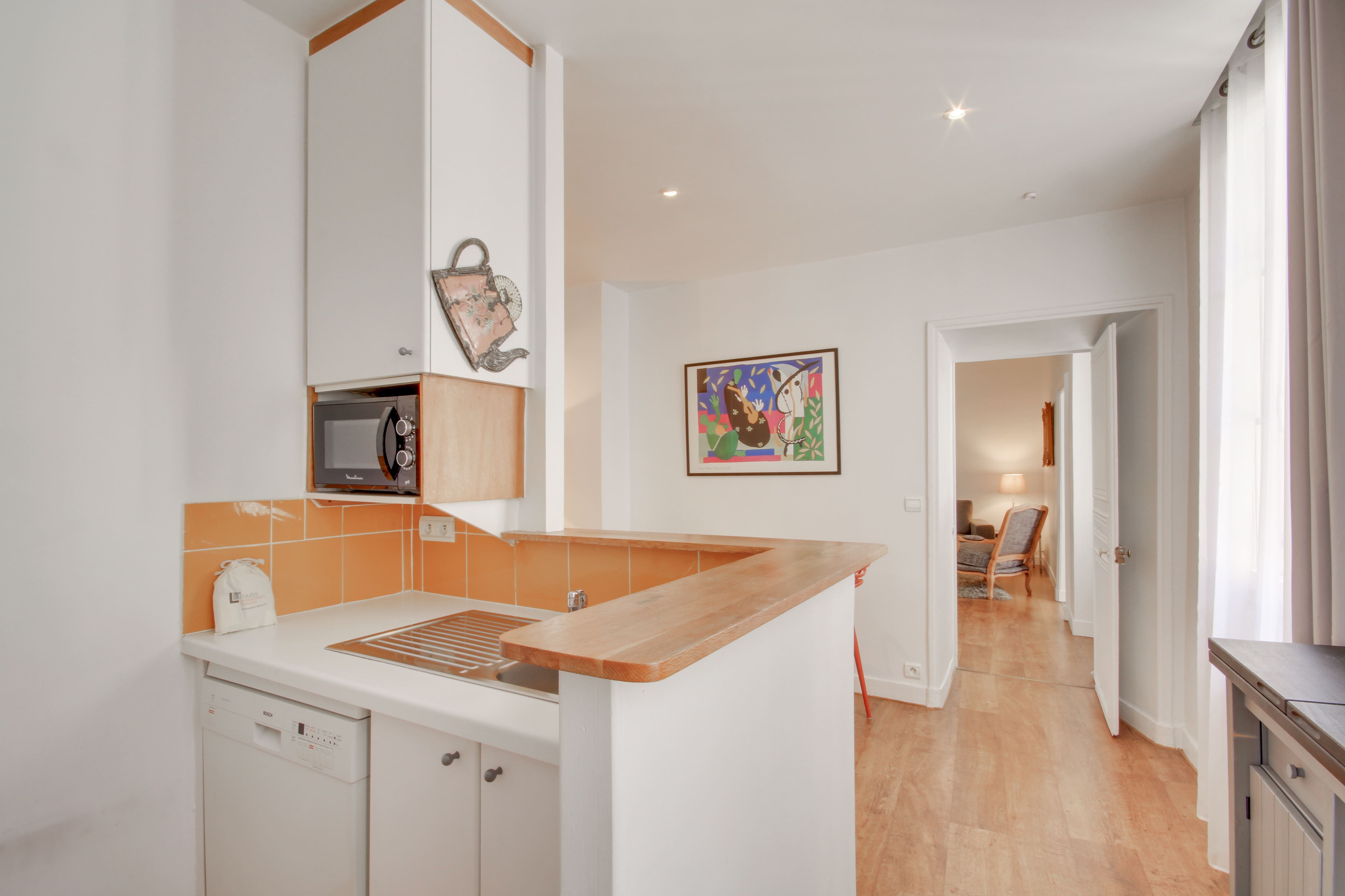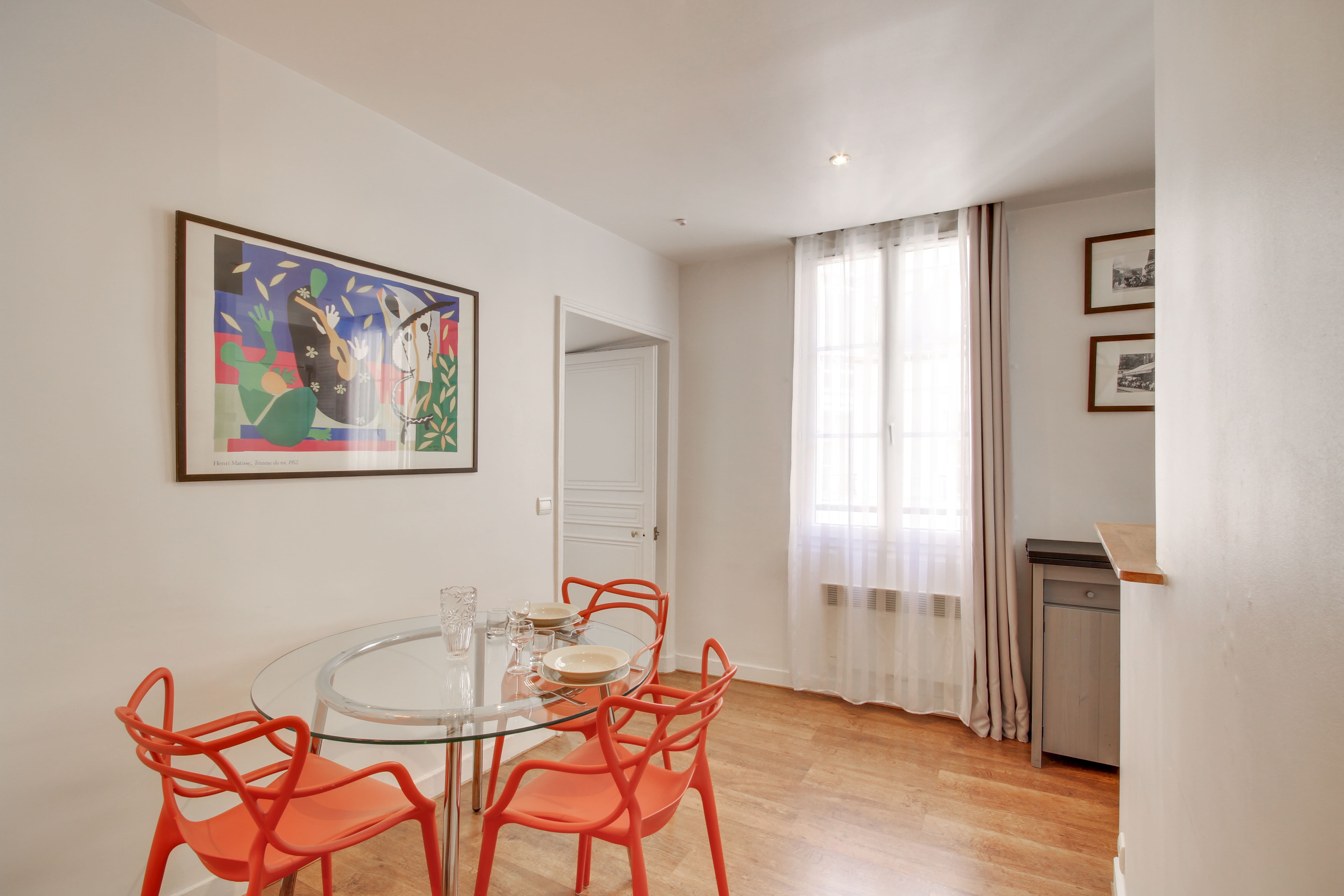 What a fantastic address this serviced apartment in Paris has. It’s just a short stroll from the Palais Royal and the Louvre Museum. Also, the public transport links here are excellent – perfect for when you need to travel to other areas. As you’d imagine, there are plenty of shops, cafes and restaurants in the locale, too, which is convenient as this home has a compact kitchenette with no oven. Designed for business professionals, this apartment has an open-plan living room has a desk, for when you need to catch up on work. All in all, this place is ideal for when you need a longer stay in the City of Light.