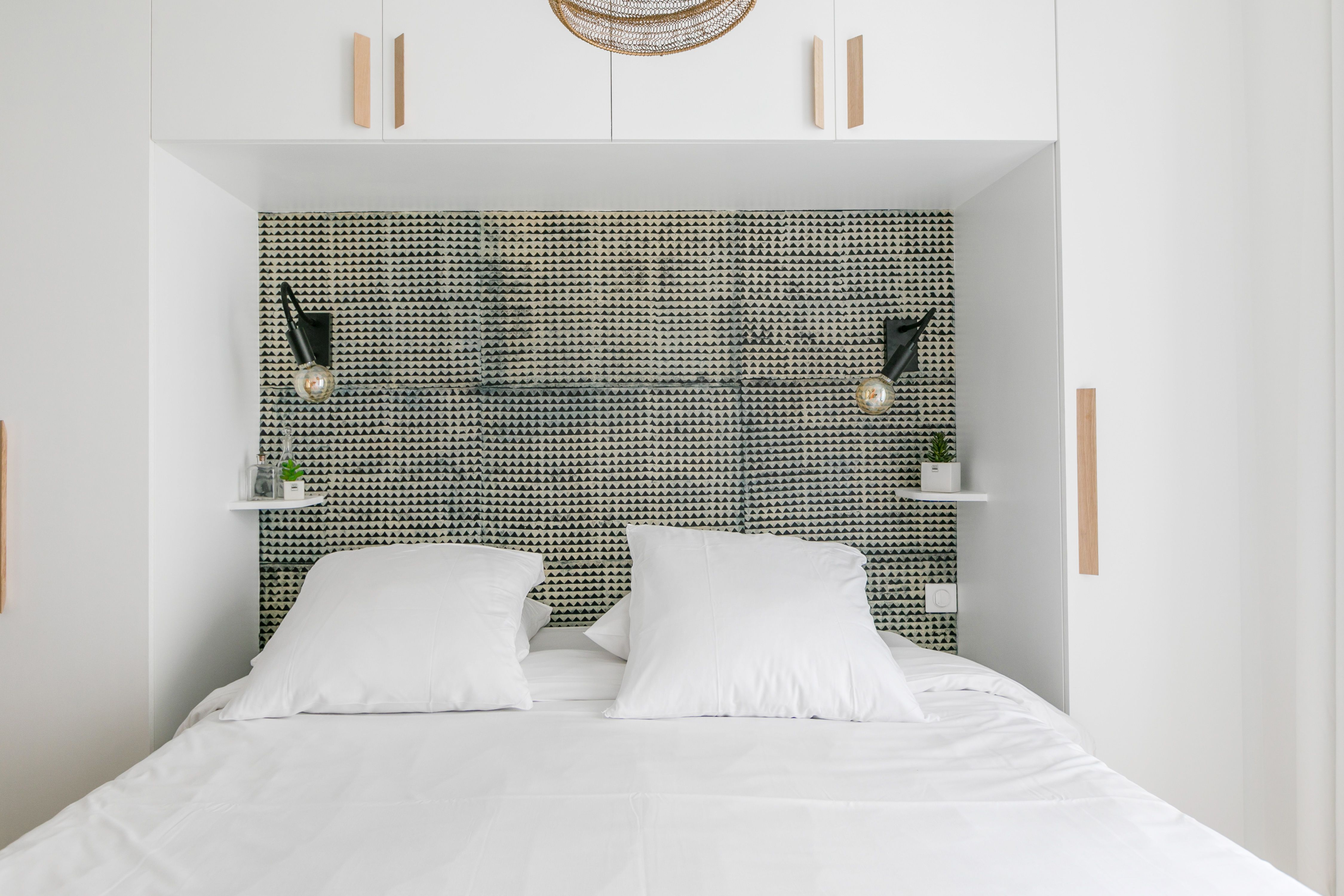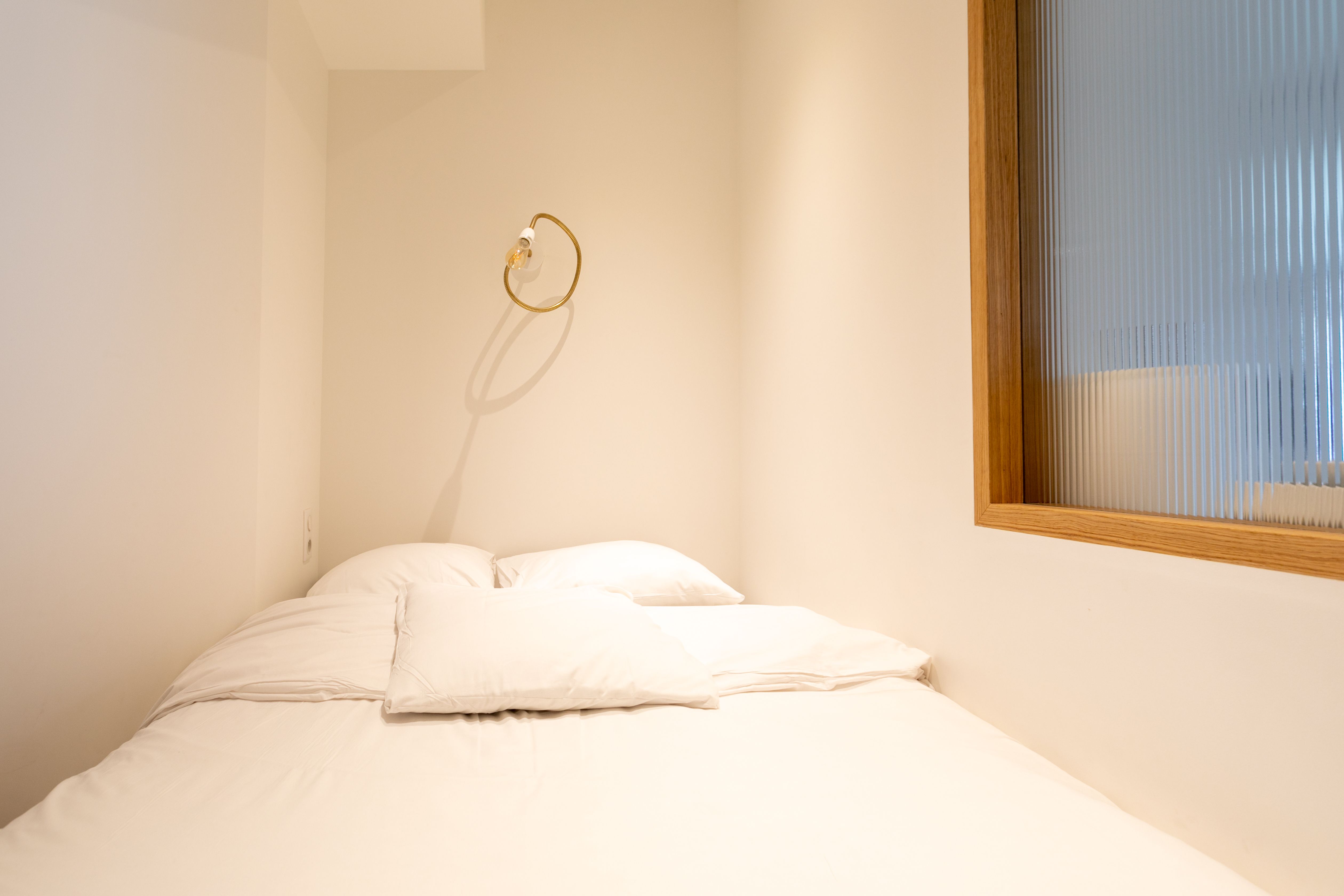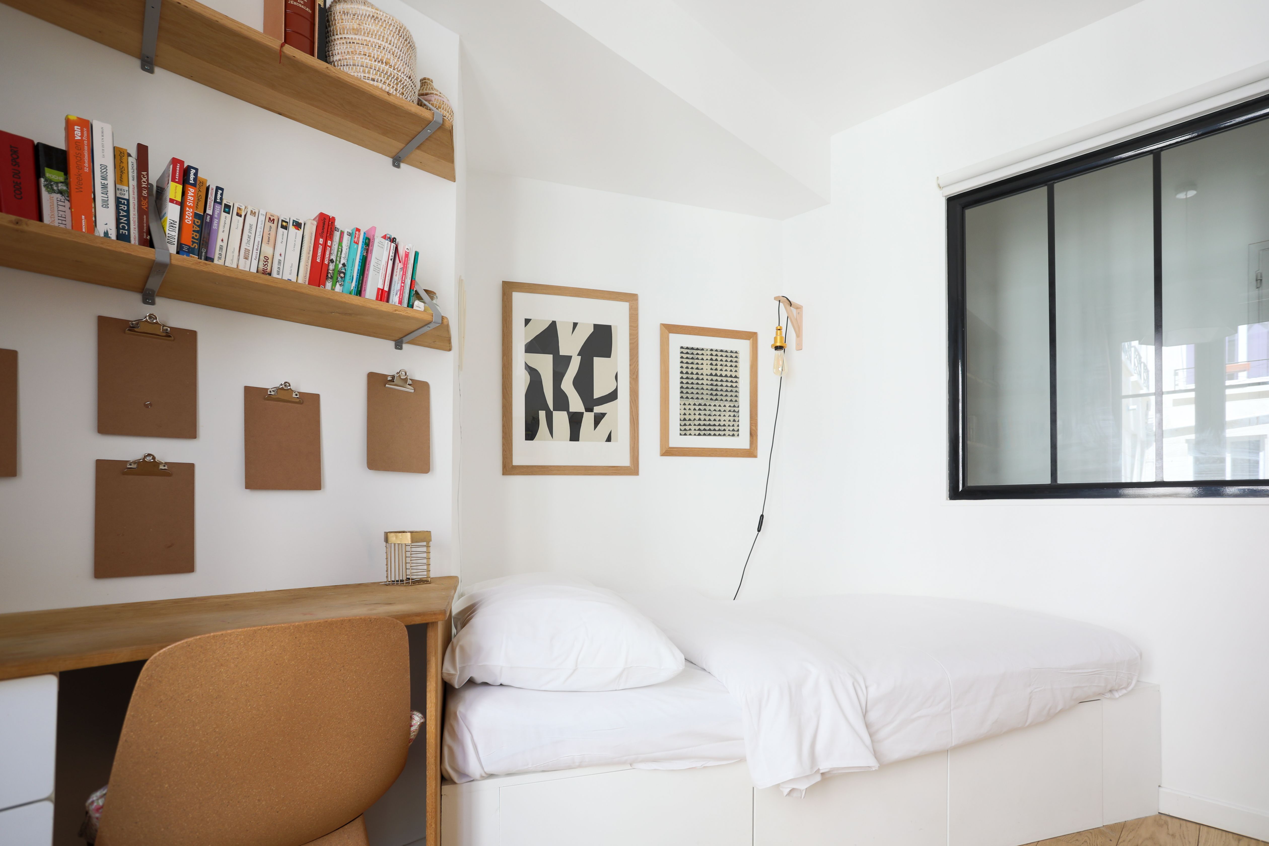 * The single bed in the third bedroom is custom-made and it tapers on the wall side to adapt to the shape of the room – it ranges from 250 cm at its longest, down to 150 cm