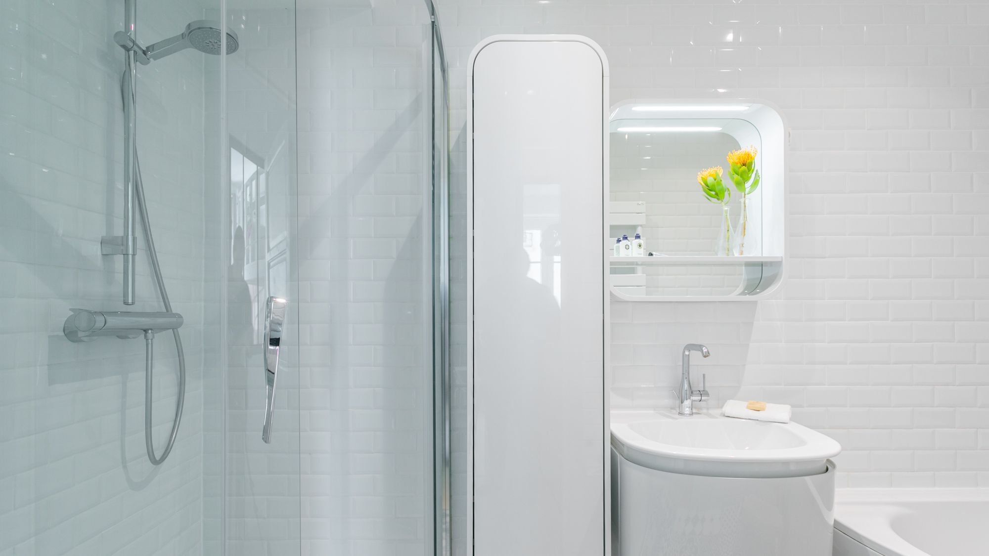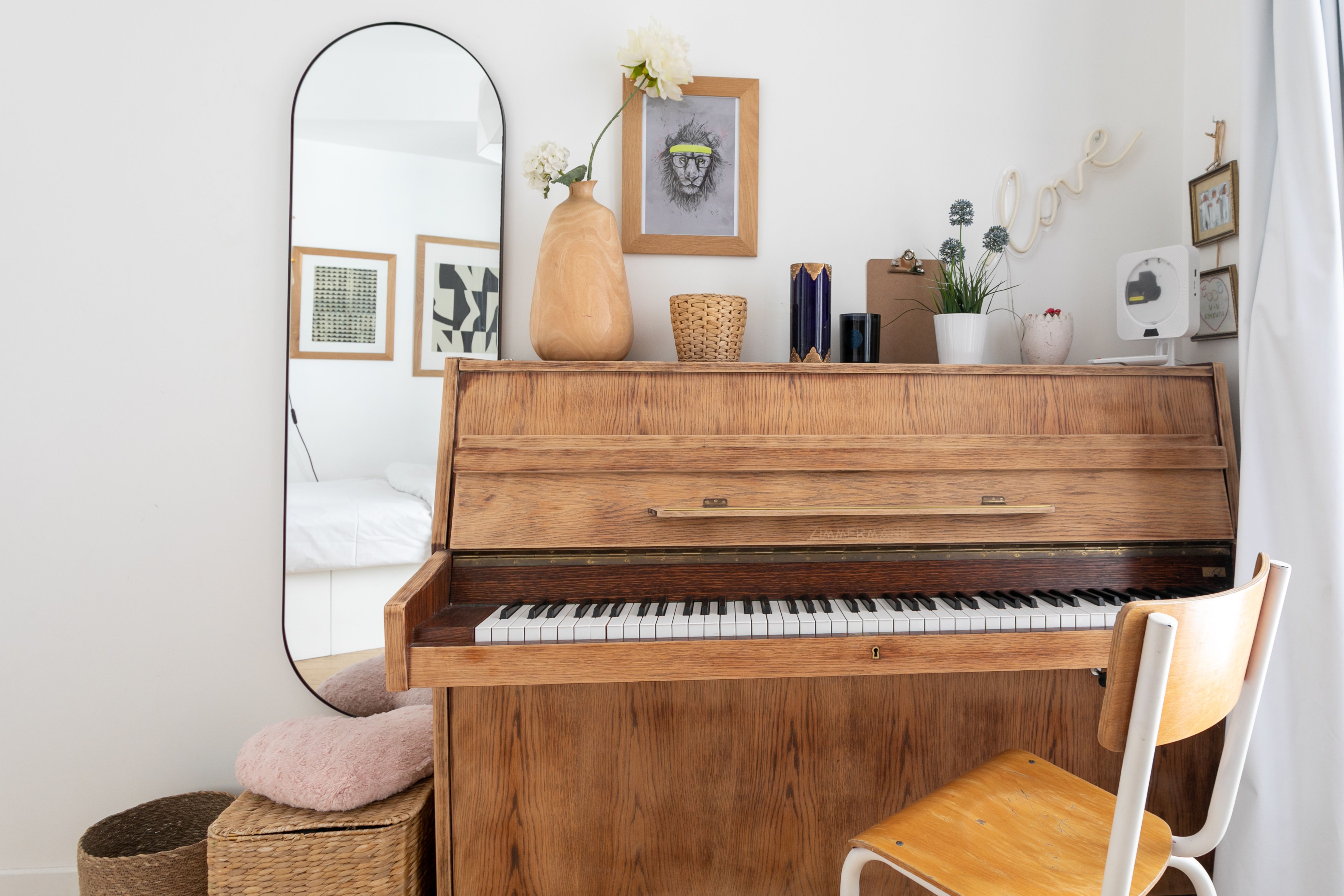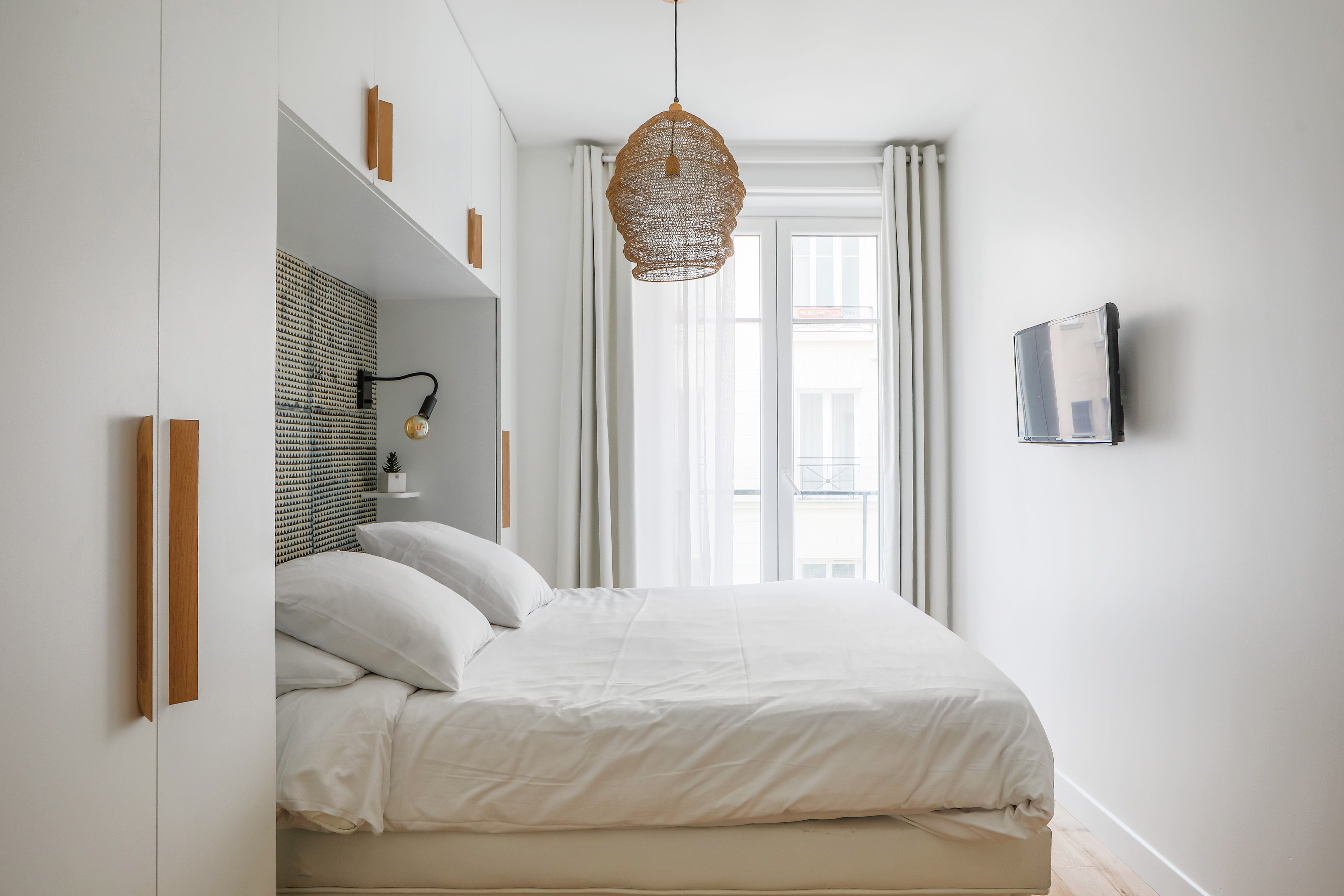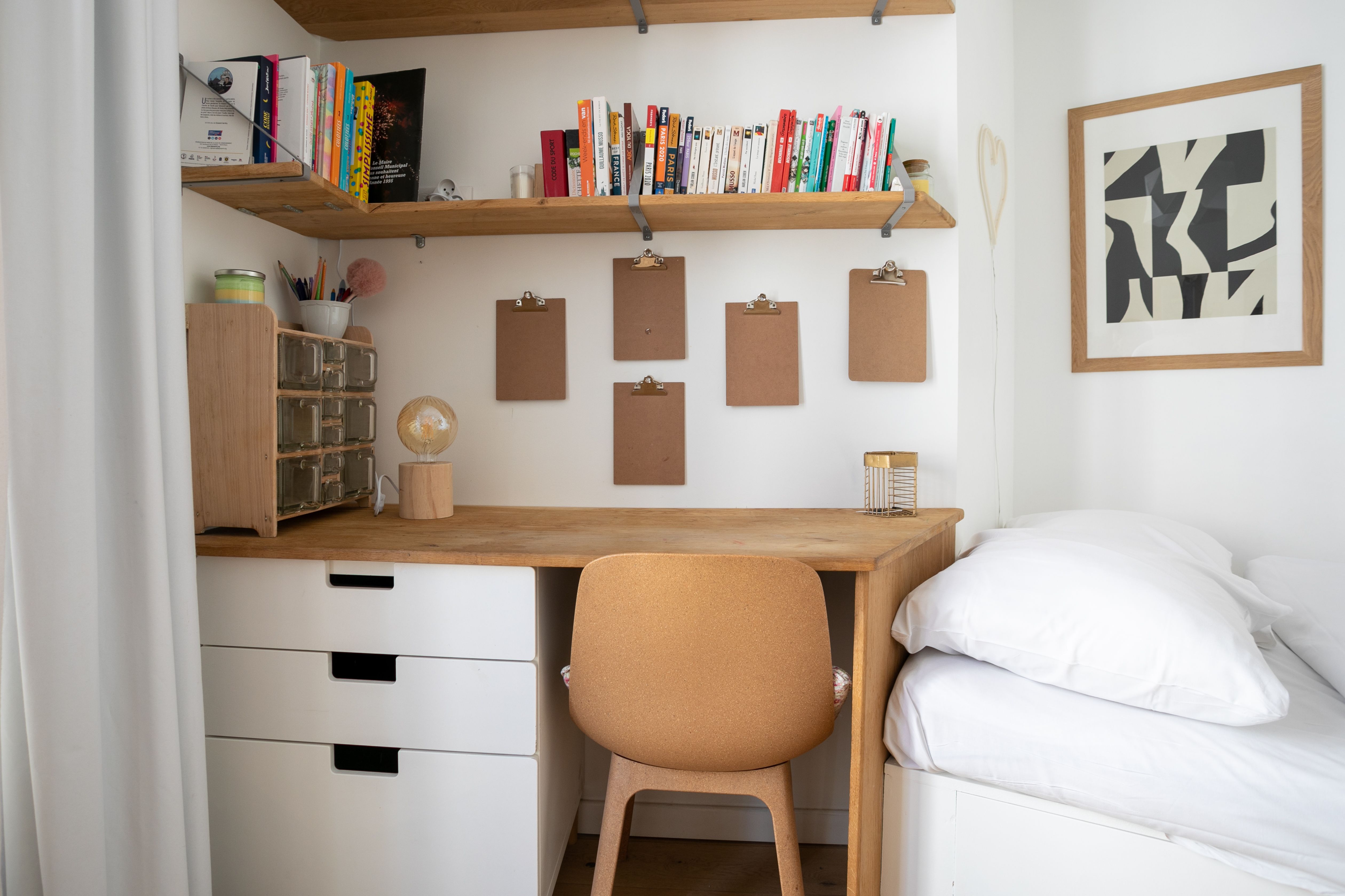 * The single bed in the third bedroom is custom-made and it tapers on the wall side to adapt to the shape of the room – it ranges from 250 cm at its longest, down to 150 cm