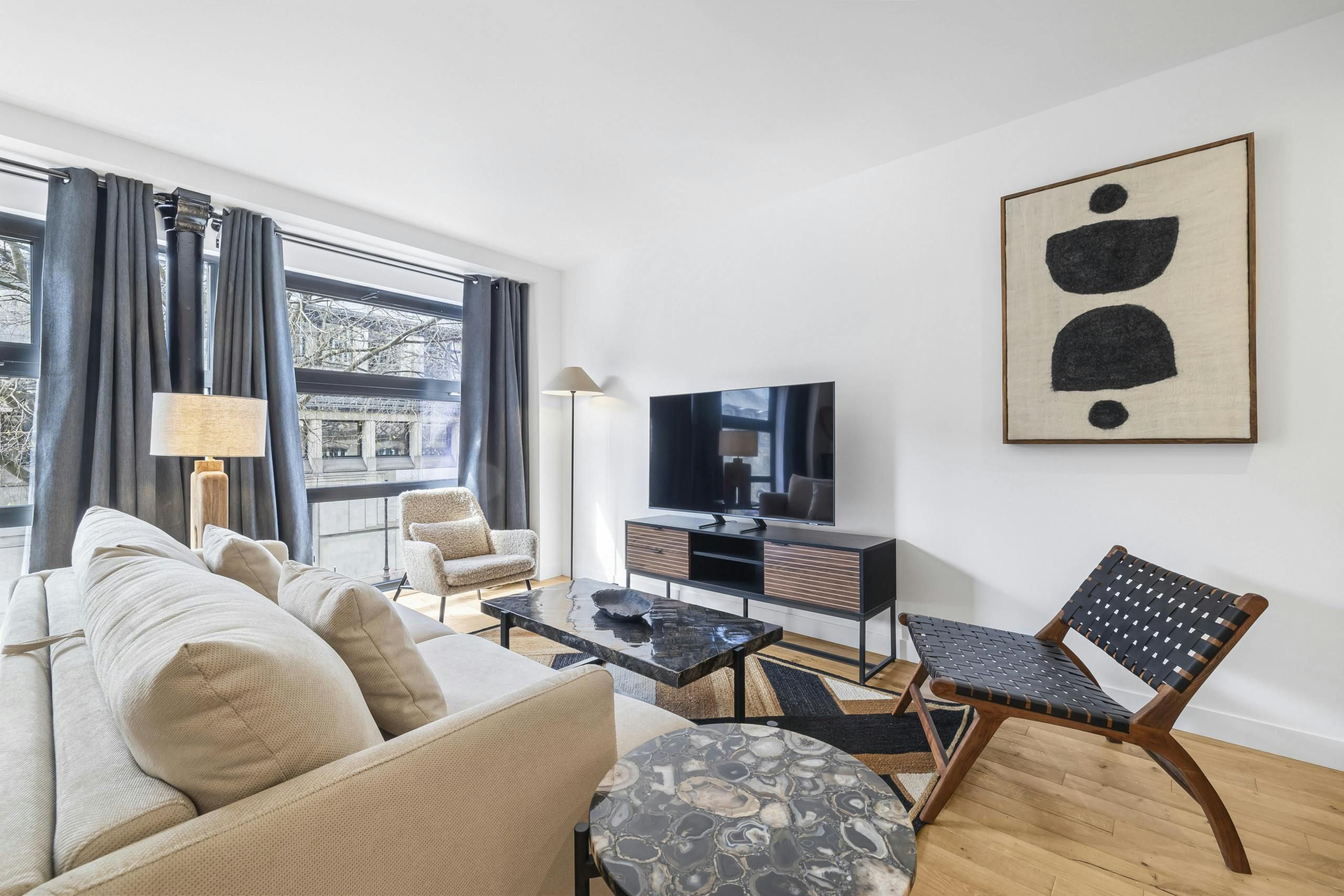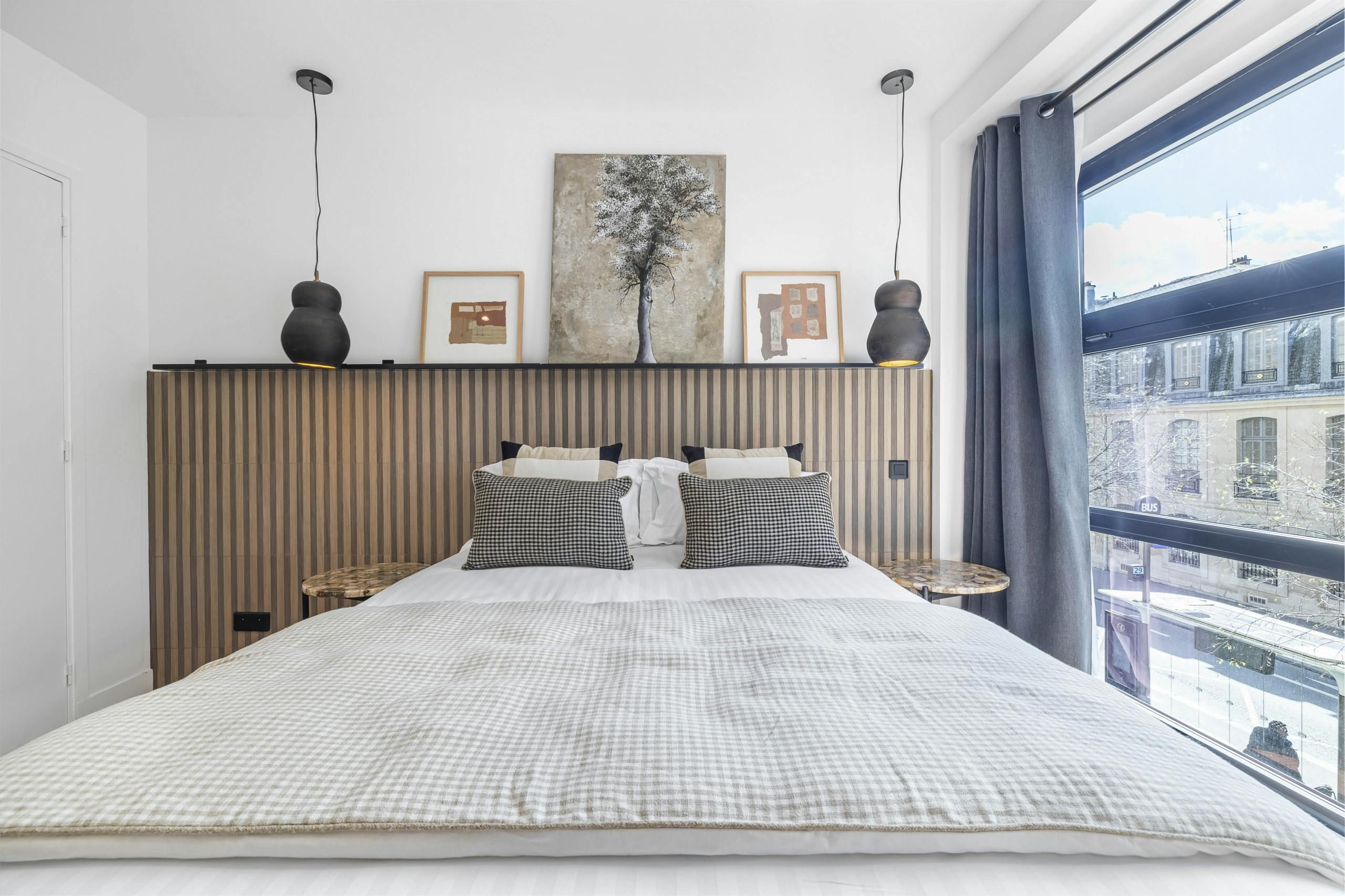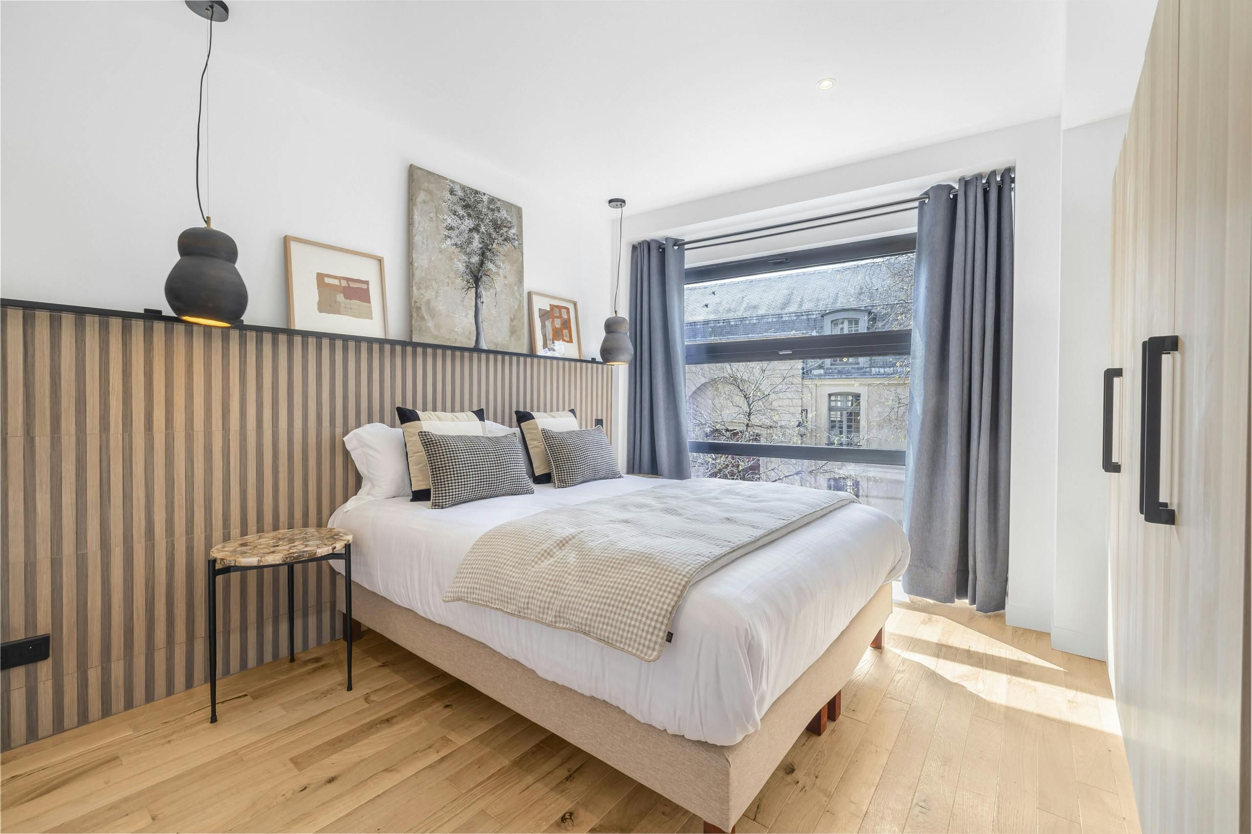 Take in the views over Paris’s Archives Museum from this apartment’s large windows. We love that a lot of thought has gone into the decor here, too. Just a couple of things to note – at full capacity, two guests will be sleeping on a sofa bed in the living room. Also, both bedrooms are street-facing, so you may hear a bit of noise here. Otherwise, this is a great choice for friends or a family looking to take advantage of this home’s great location. It’s in Le Marais, so you’ll have access to stylish shops, restaurants, and art galleries.
