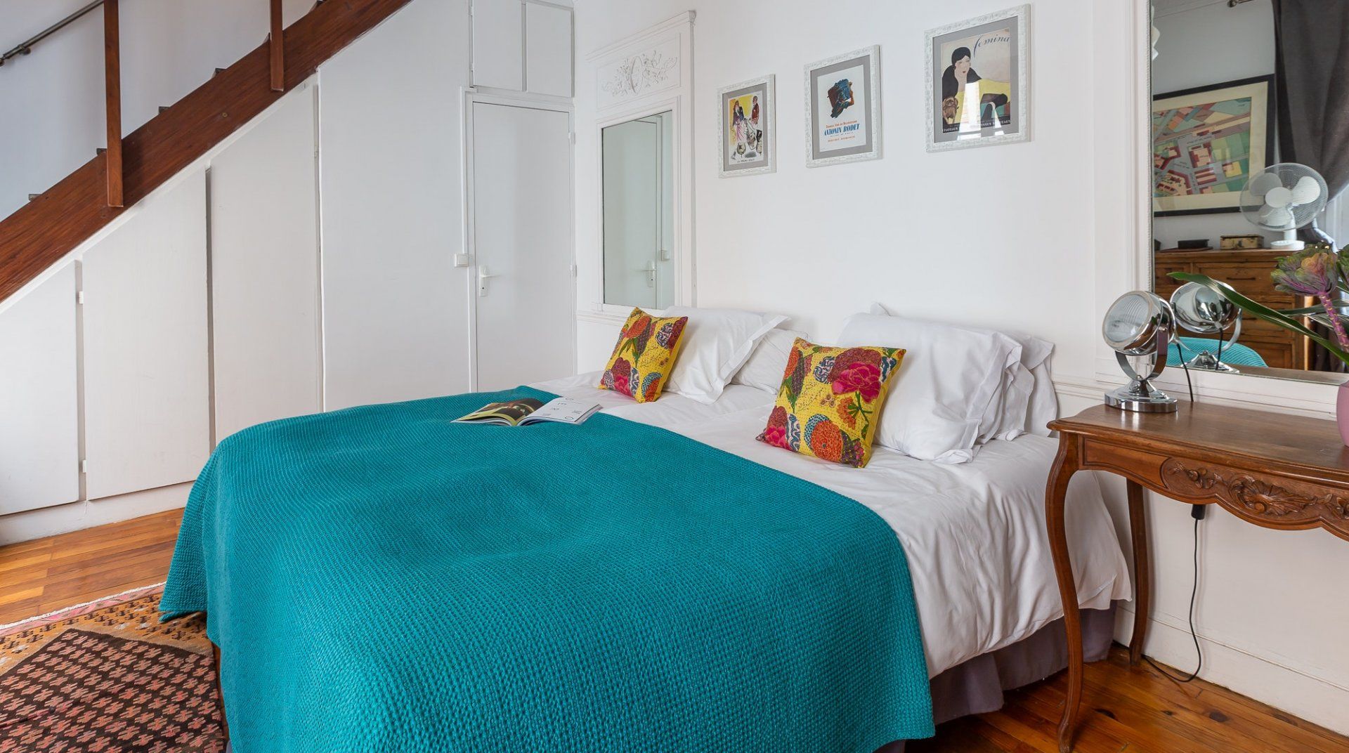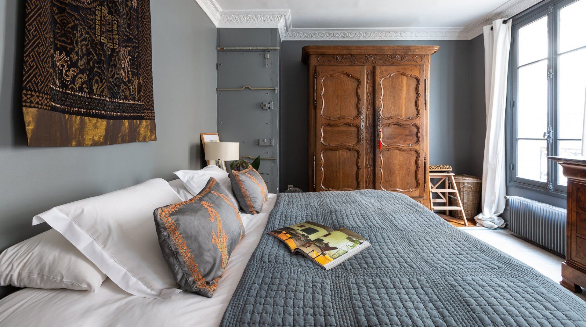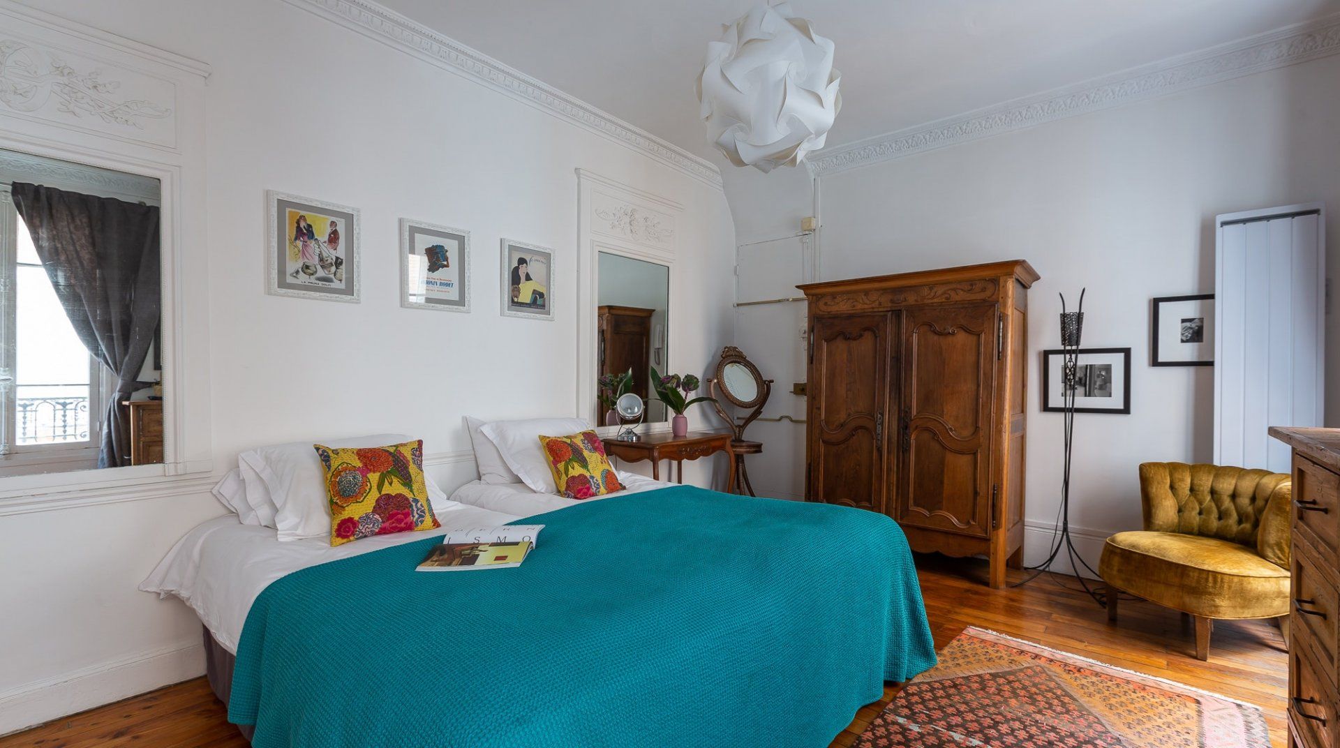 Filled with a mix of contemporary and antique pieces carefully selected chosen by the owner, this home strikes the right balance between classy but cosy interiors. The vibrant and eclectic furnishings are even further complemented by unique pieces of artwork in true Parisian style. We particularly love the grand table dining area, which hones in on the importance of eating well and eating together when embracing the French culture. Pick up a good bottle of French wine from the local wine cellar, alongside other necessities from the butchers, bakery and fromagerie – all located within five minutes walking distance on the island. Once the restaurants clear out at night, the streets of this little village in the heart of Paris, fall quiet and a late stroll down the main street gives the feeling of having stepped into an Impressionist painting. Cross over the river Seine in either direction and you'll find yourself, once again, in more picture-perfect scenes reflective of Paris' romantic reputation.