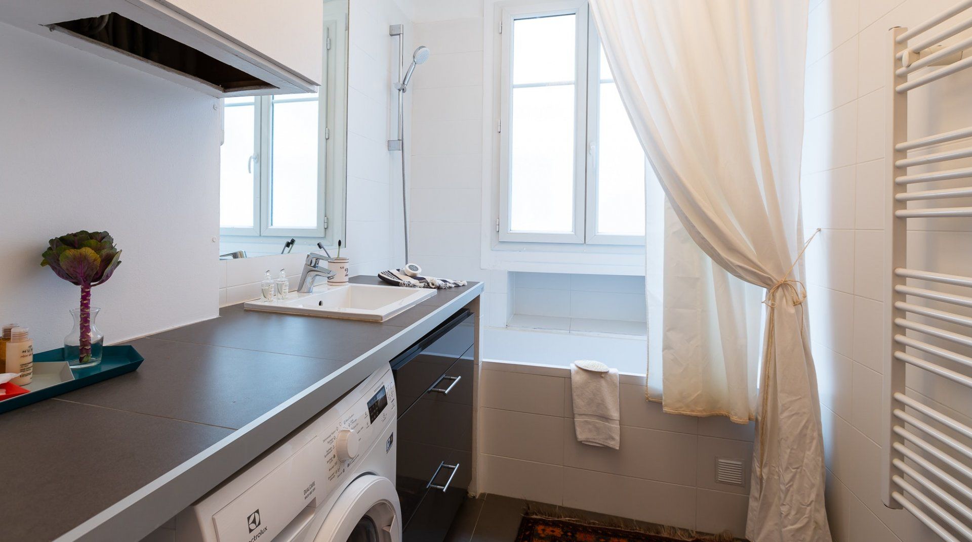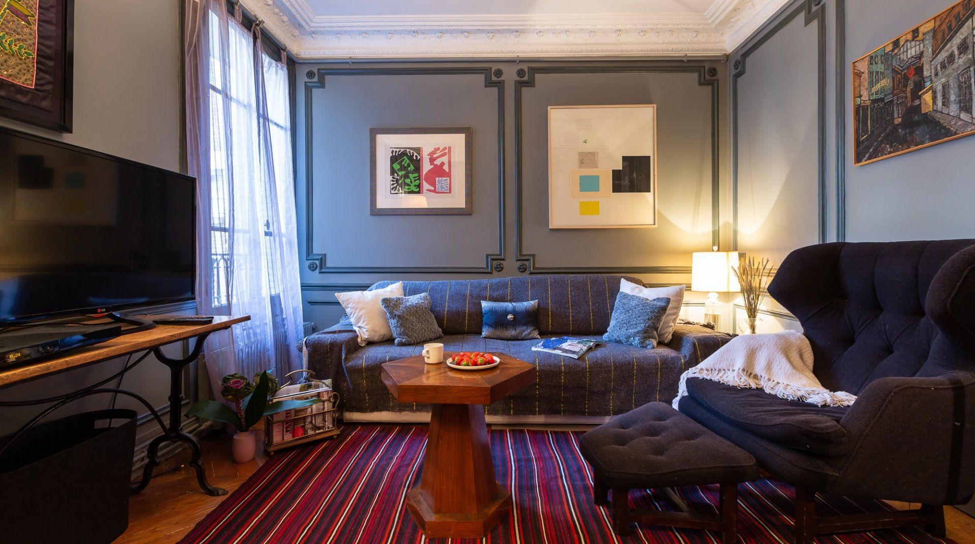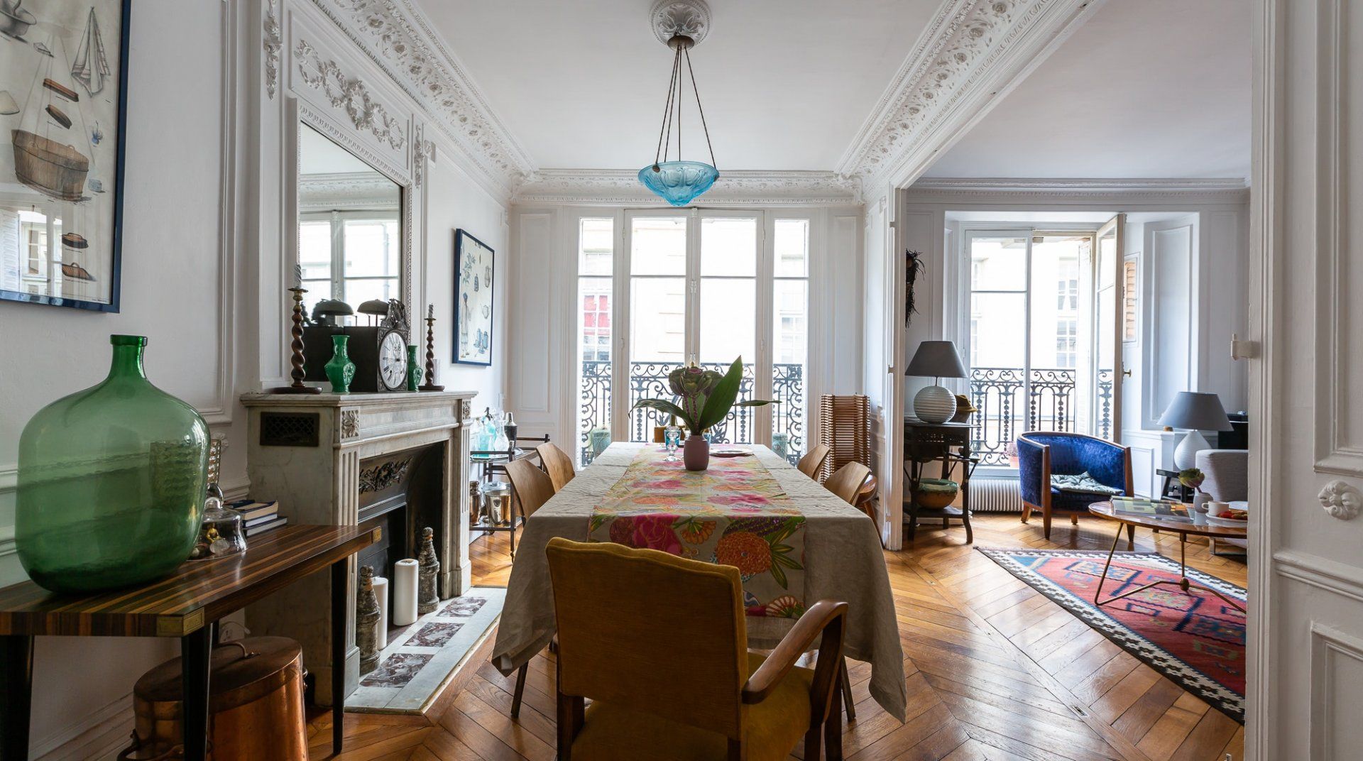 Filled with a mix of contemporary and antique pieces carefully selected chosen by the owner, this home strikes the right balance between classy but cosy interiors. The vibrant and eclectic furnishings are even further complemented by unique pieces of artwork in true Parisian style. We particularly love the grand table dining area, which hones in on the importance of eating well and eating together when embracing the French culture. Pick up a good bottle of French wine from the local wine cellar, alongside other necessities from the butchers, bakery and fromagerie – all located within five minutes walking distance on the island. Once the restaurants clear out at night, the streets of this little village in the heart of Paris, fall quiet and a late stroll down the main street gives the feeling of having stepped into an Impressionist painting. Cross over the river Seine in either direction and you'll find yourself, once again, in more picture-perfect scenes reflective of Paris' romantic reputation.