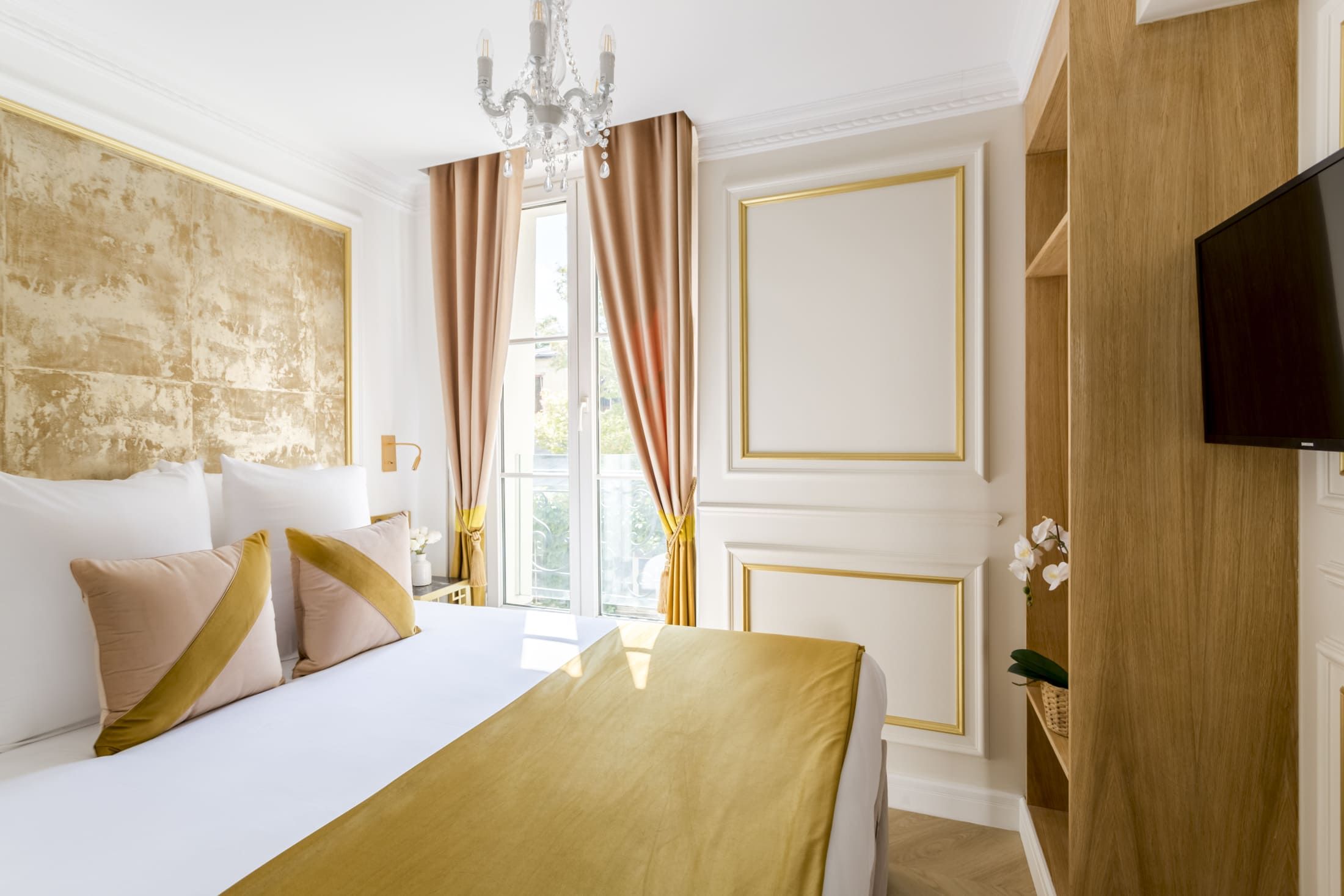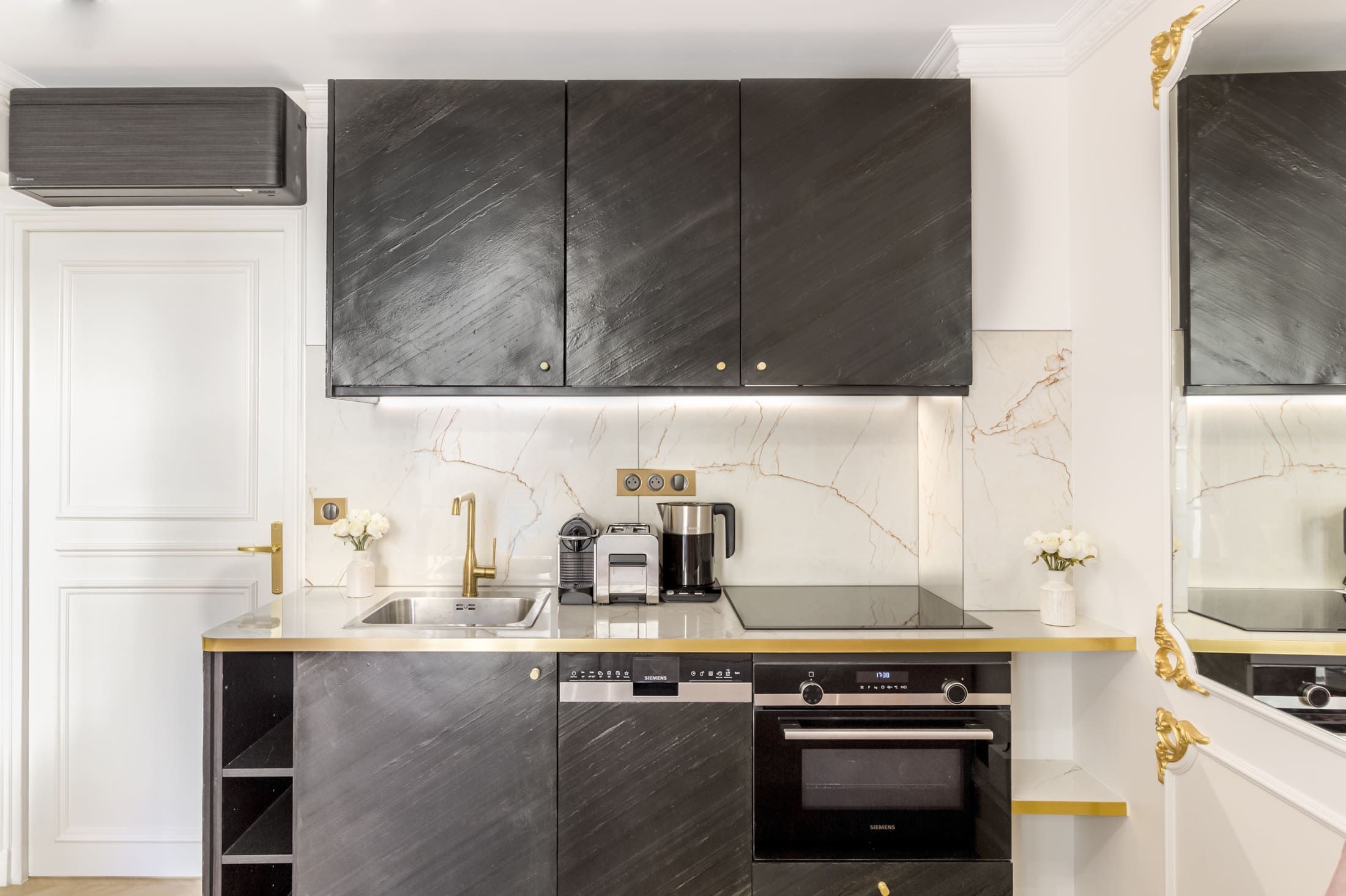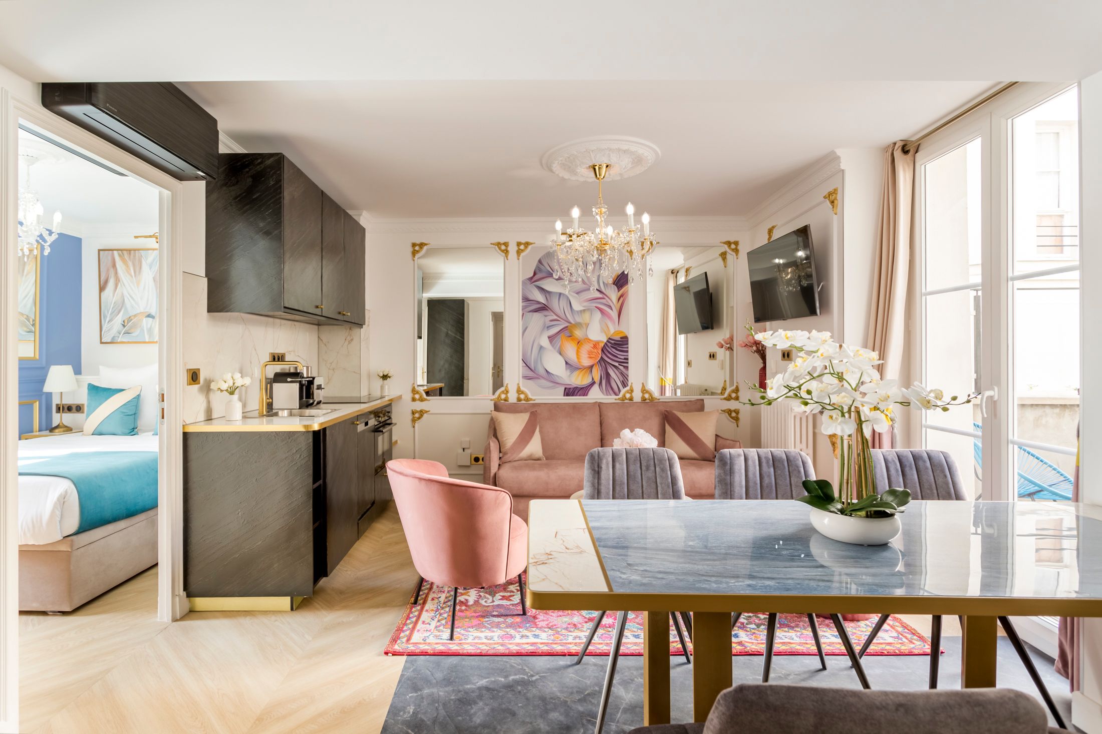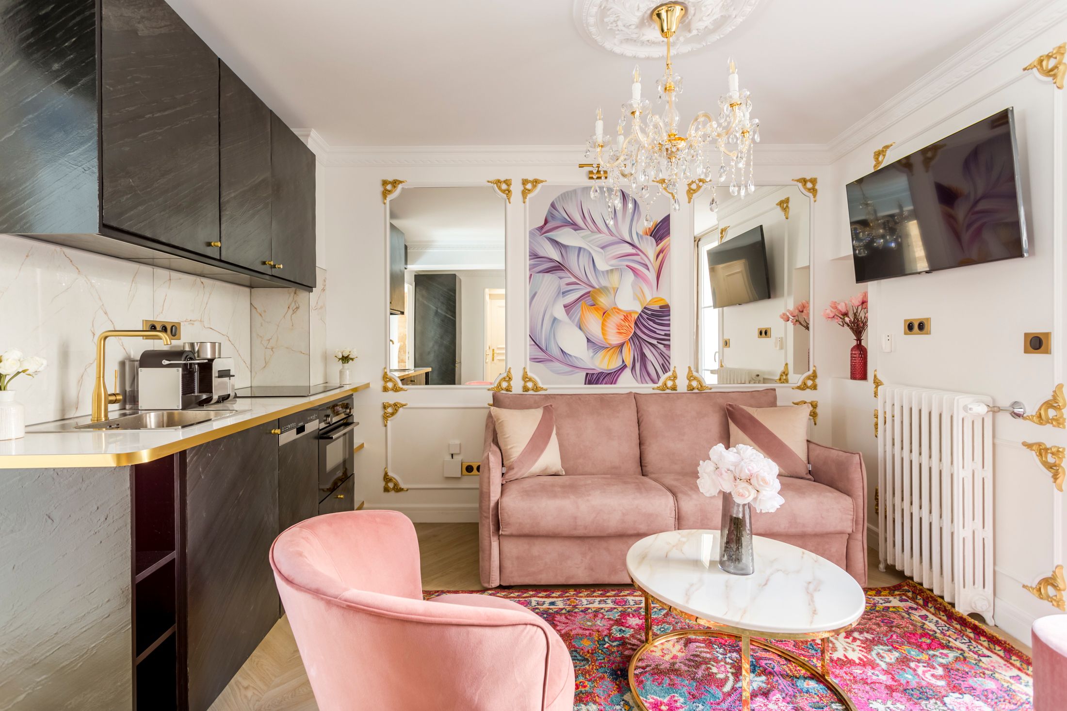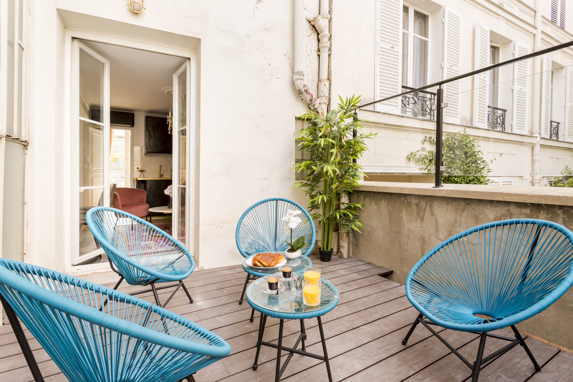 Nestled in a period building dating back to 1830, this apartment brings contemporary comfort to its historic location. There’s a private terrace and a cosy living room which lends itself perfectly to laidback evenings or catch up work sessions. It’s also family friendly with all the essentials you could need to settle in and make it your own. Outside, you can walk to Bon Marche for fresh croissants and there are plenty of dining options in the neighbourhood. It’s also possible to walk to Jardin du Luxembourg and you’ll find great public transport links – making it easy to explore further afield.