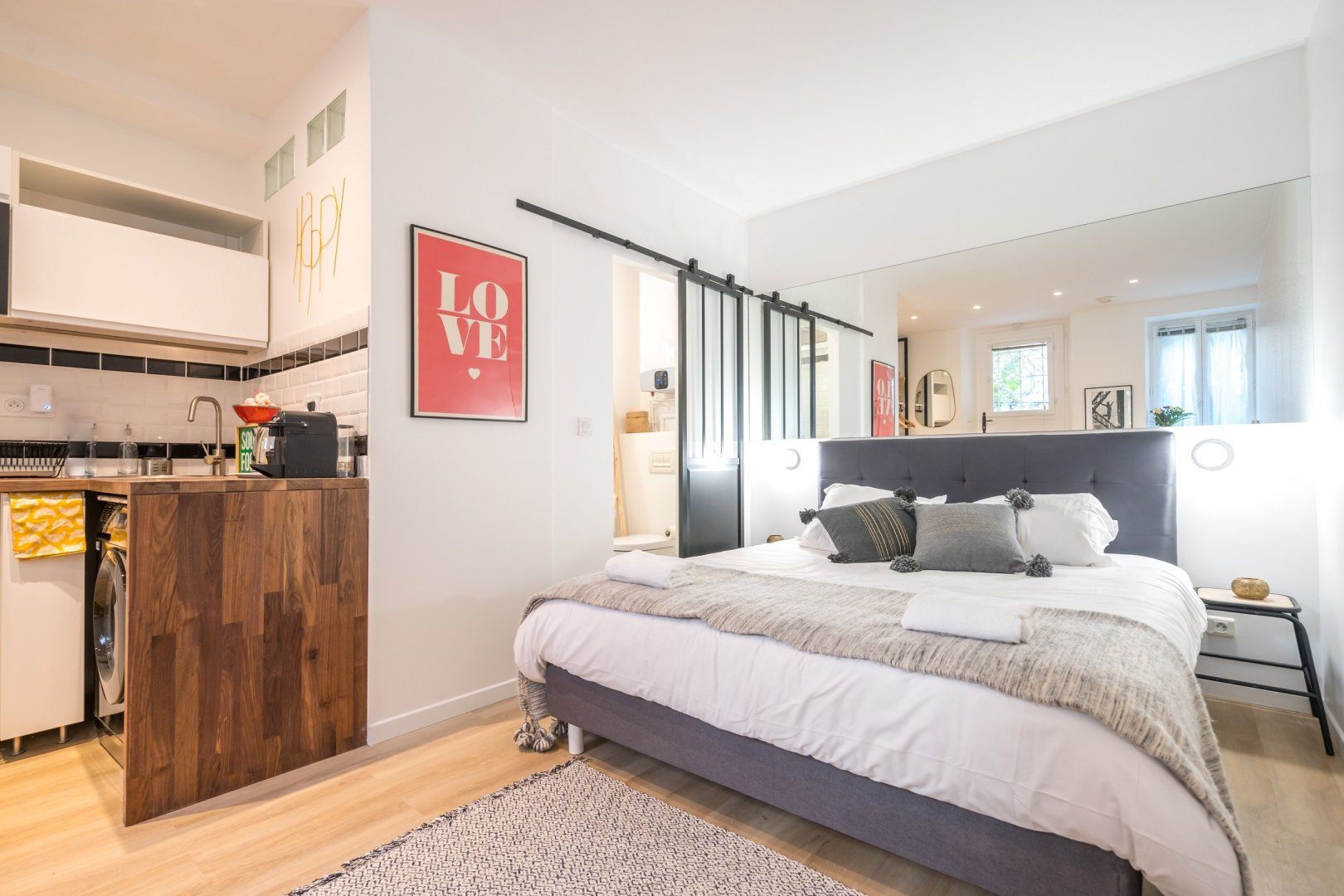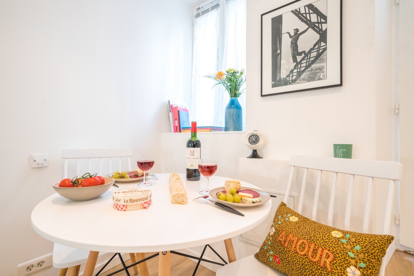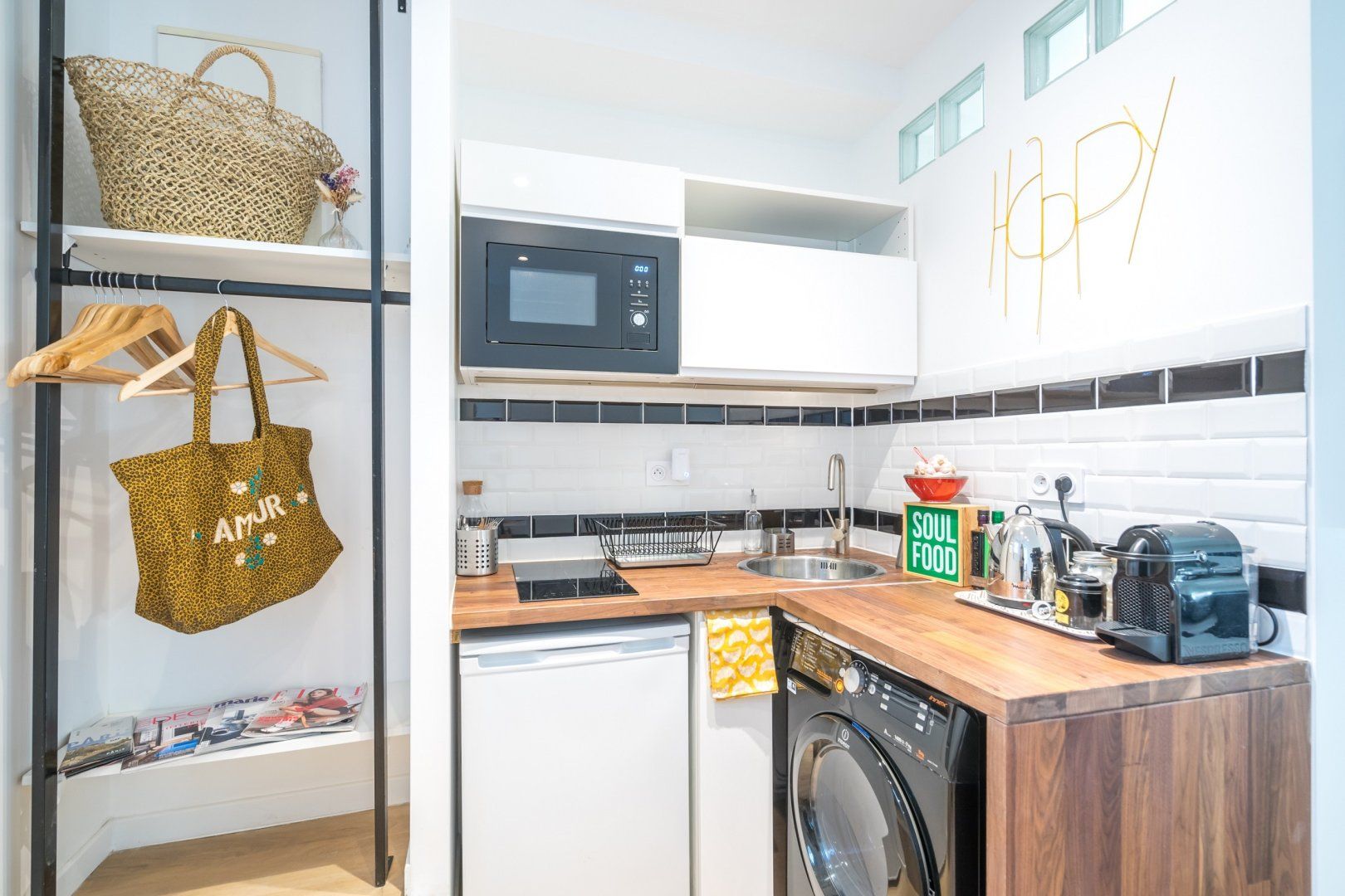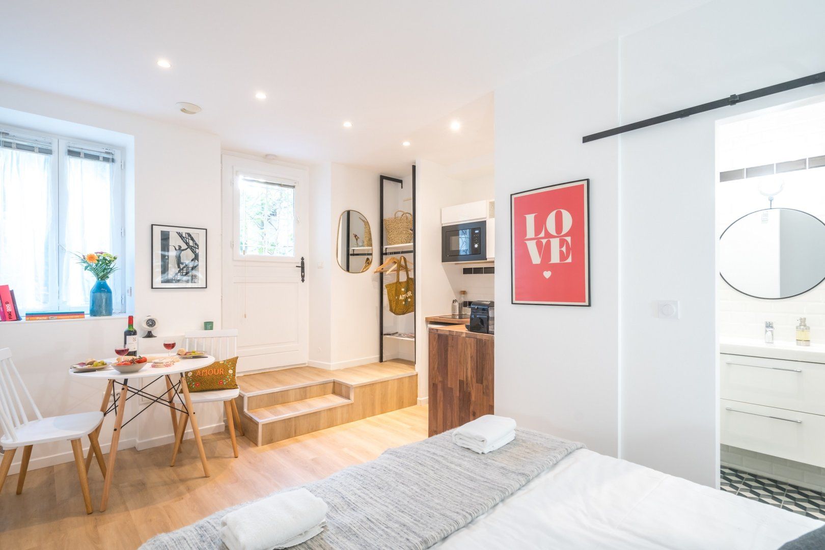 Though pocket-sized, it offers a private terrace with a bistro table and chairs, perfect for starting mornings with fresh coffee and croissants as you watch the comings and goings of your neighbourhood, or ending the evening with a glass of wine before setting out to discover the vibrant bistros, bars and restaurants of your locale. Should you wish to say closer to home, your studio offers a complete kitchenette with everything you need to whip up a French meal – to be enjoyed alfresco or around the table indoors – while the bed that takes centre stage in the space beckons a restful night’s sleep after a busy day of touring the city.