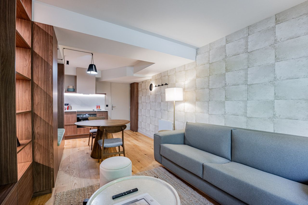 Tucked away amid the cobblestone streets of Montmartre, this apartment is a real hidden gem. It’s a compact yet comfortable place to call home, with a kitchenette and a cosy dining area. The living room is equipped with a sofa bed, where guests three and four will sleep – space and privacy are limited here, especially as the shower is situated in the bedroom. We think this is a good choice of base for families, particularly as you’ll have access to a communal swimming pool – kids will love taking a break from the cafes and piano bars of Montmartre to splash about.