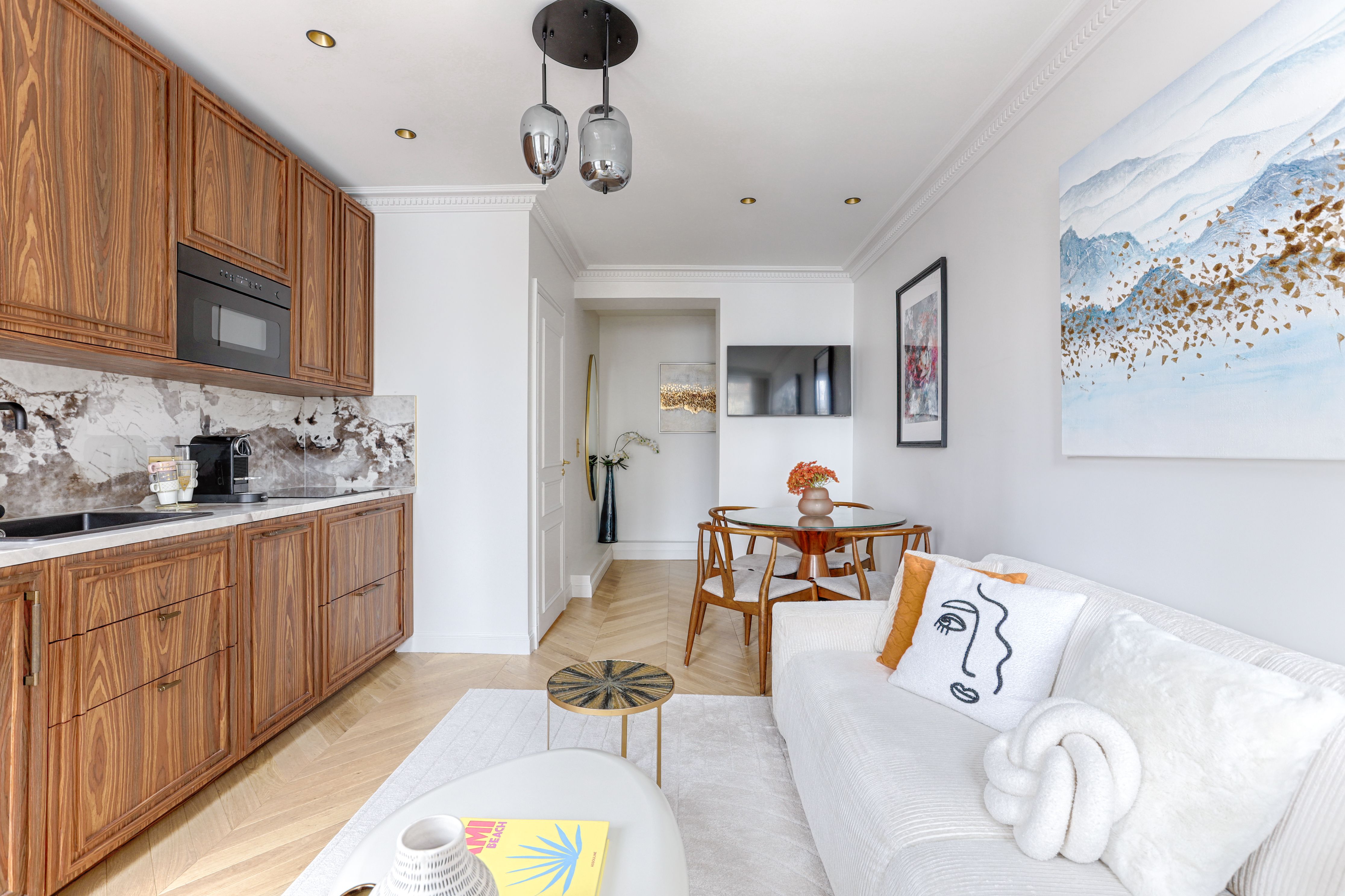 In buzzing Montparnasse, this apartment puts the 14th arrondissement on your doorstep. All the landmarks are within easy reach, from scene-stealing Eiffel Tower views at Tour Montparnasse (twenty minutes on foot) to art-filled afternoons at the Louvre (a twenty-five-minute metro ride away). Our favourite thing about this apartment is how light and stylish it is. It's on the smaller side – particularly the kitchen – but it has all the essentials for quick bites. We think it's the ideal respite between Parisian adventures, especially for those seeking a stay in a more local neighbourhood.