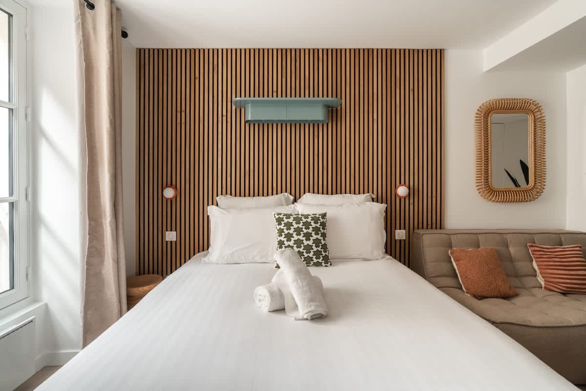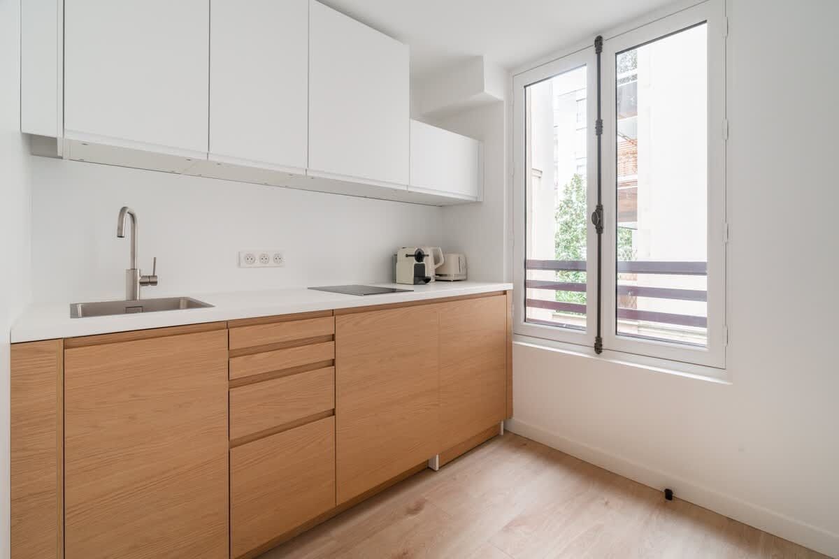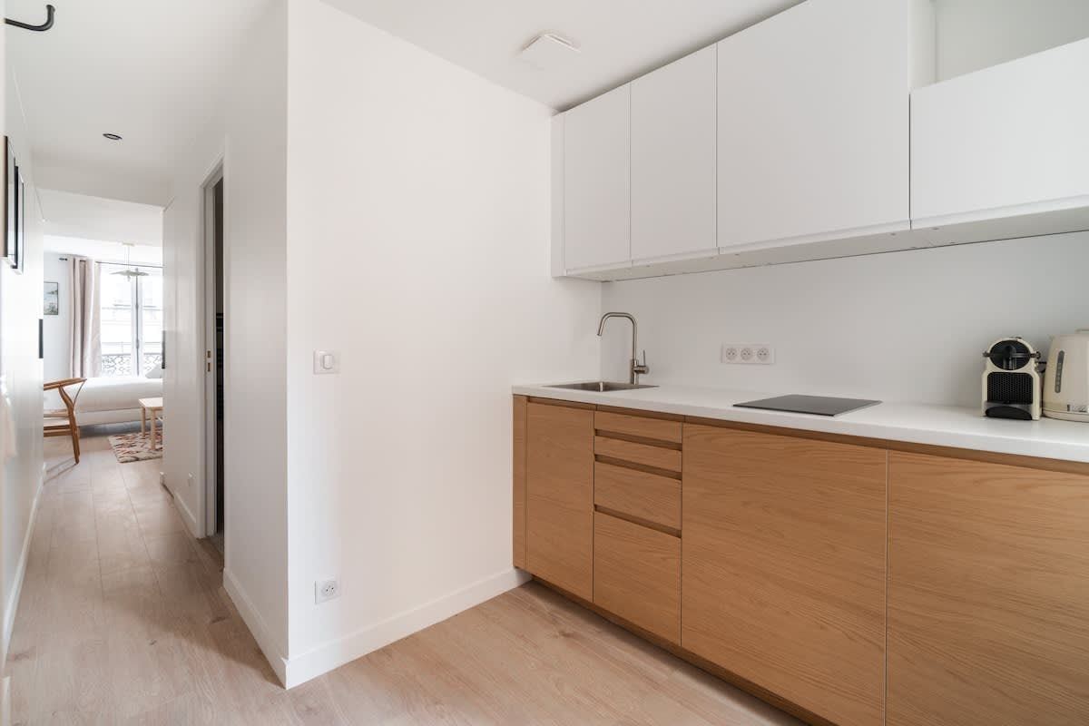 Nestled in the sought-after seventh arrondissement, on the edge of the vibrant neighbourhood of Montparnasse, this studio apartment is a light, bright haven of modern furnishings and home comforts. Set on the third floor of its building with no lift access, you’ll need to climb a few stairs to get there – but when you do, it’s well worth it. When you’re ready to see the sights, the Jardin du Luxembourg is only a fifteen-minute walk away, or go to the nearby Metro to head into the middle of the city.