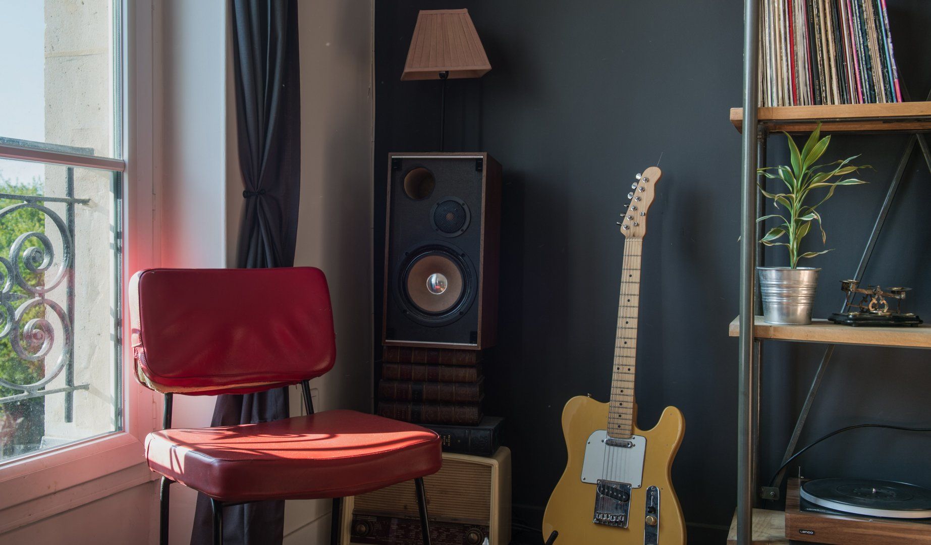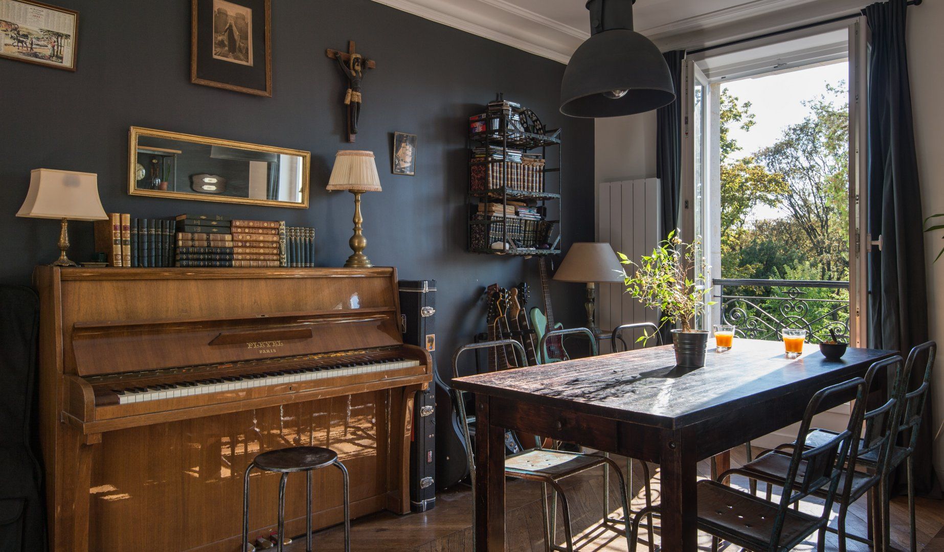 This charming one-bedroom apartment with heaps of character overlooks the tranquil Montmartre Cemetery where many famous names may be spotted, including New Wave cinemas's Truffaut or painters Degas and Toulouse-Lautrec. The home's tasteful interiors, full of vintage pieces and musical instruments, project the creative personality of a host with a passion for music. High quality finishes in the fixtures and an array of curious objects also reflect your host's keen eye for detail. A couple looking for a slightly different Parisian experience will find this a remarkable home.