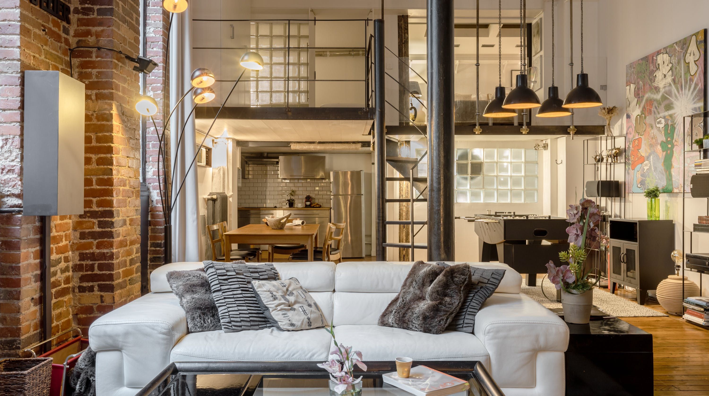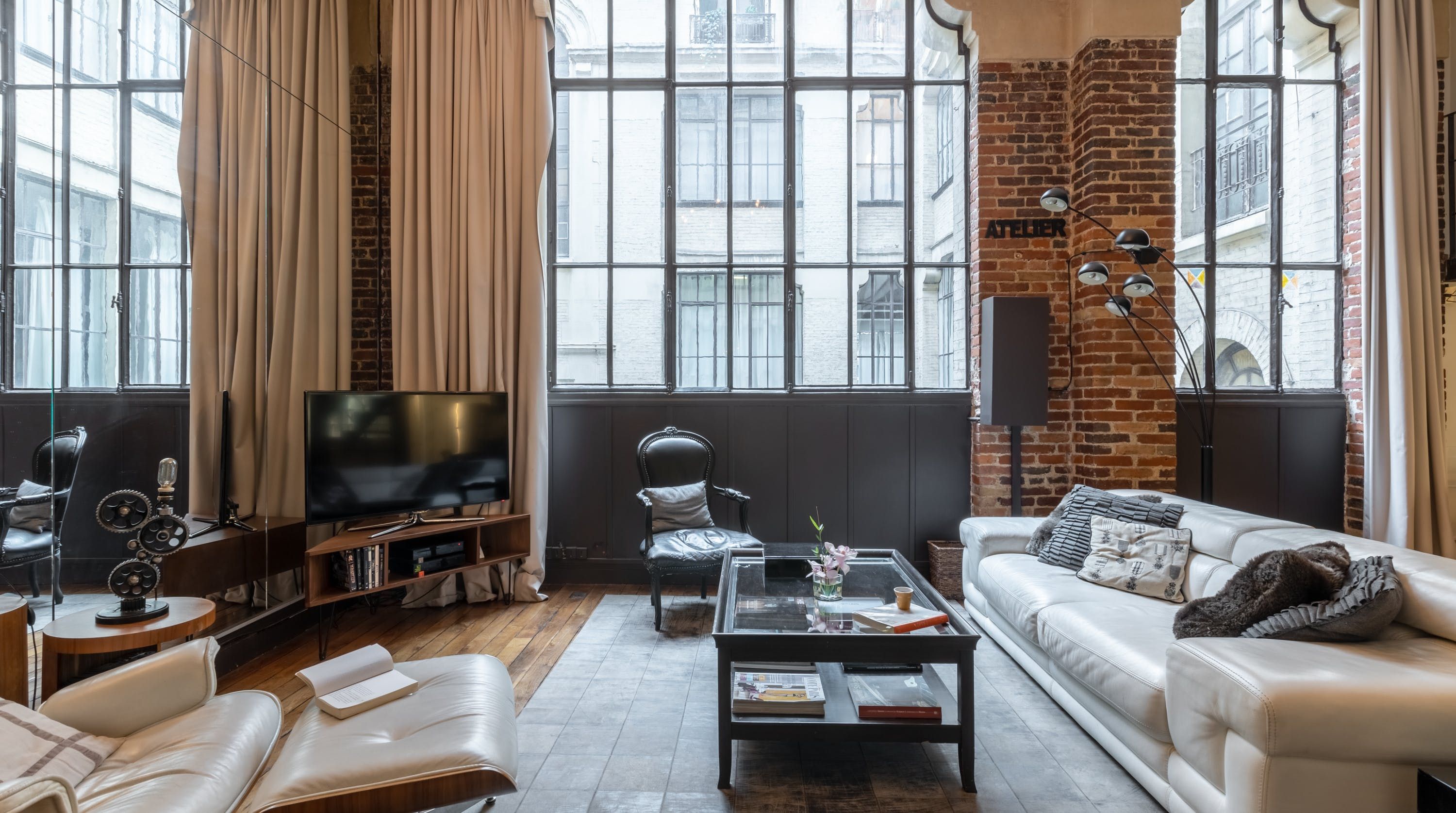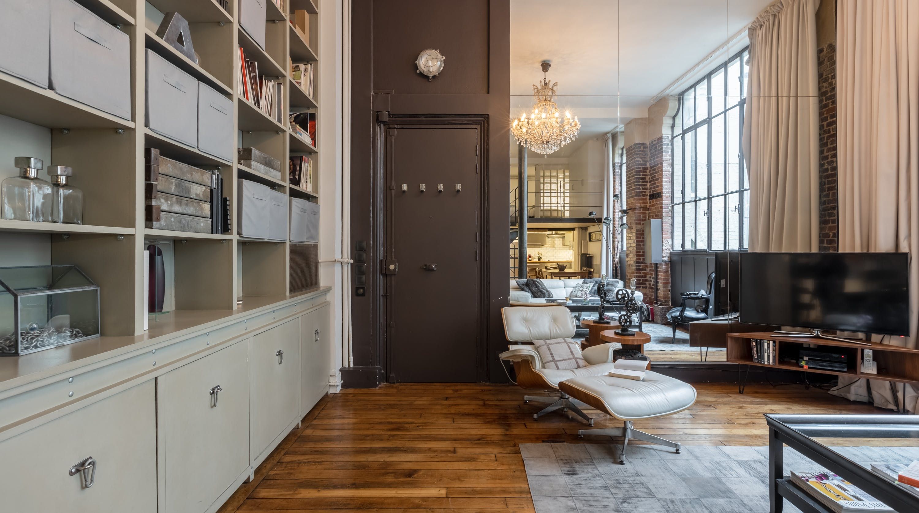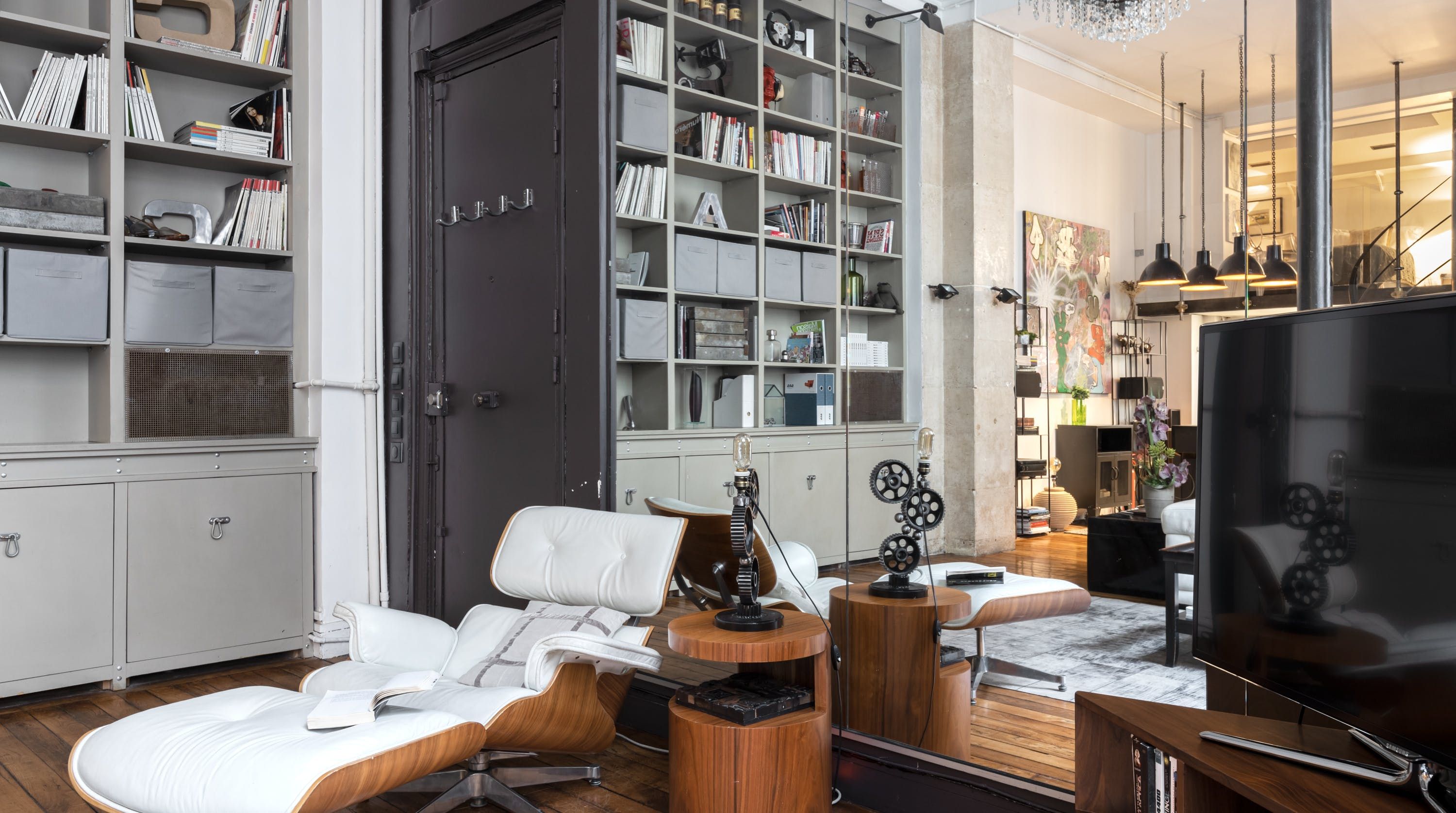 This home has all the modernity and style we’ve come to expect from a city loft. Formerly a railway company office, huge, warehouse-style windows fill the place with natural light and the double-height living room is a big open space made for socialising. A mix of pendant lamps and sparkling chandeliers blend industrial-chic with pure Parisian grandeur and we love the quirky touches like graffiti-style art on the wall and a film reel lamp on the coffee table.