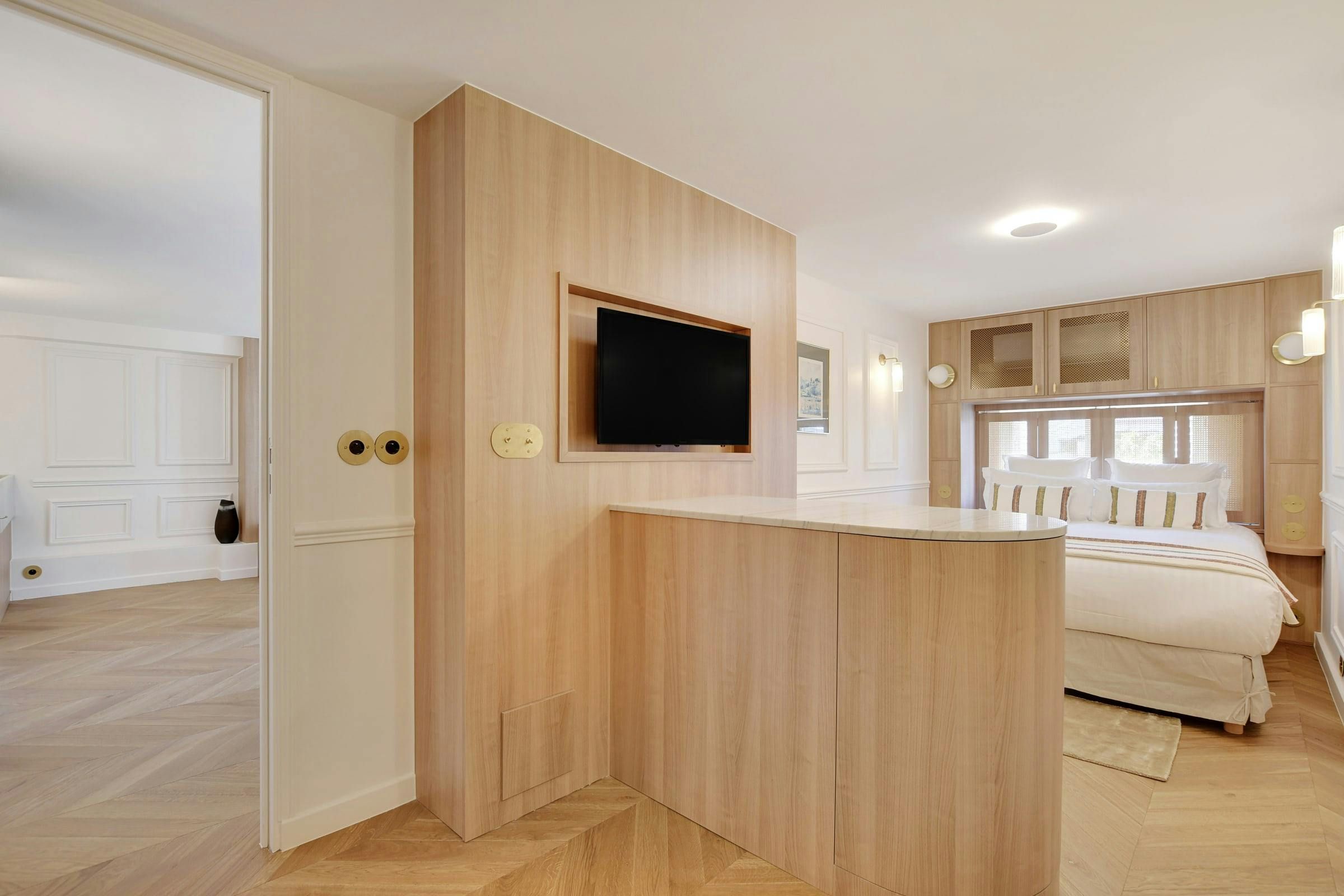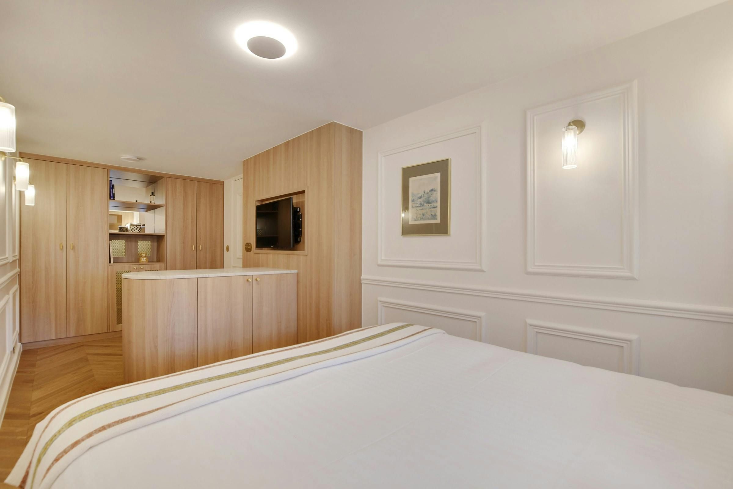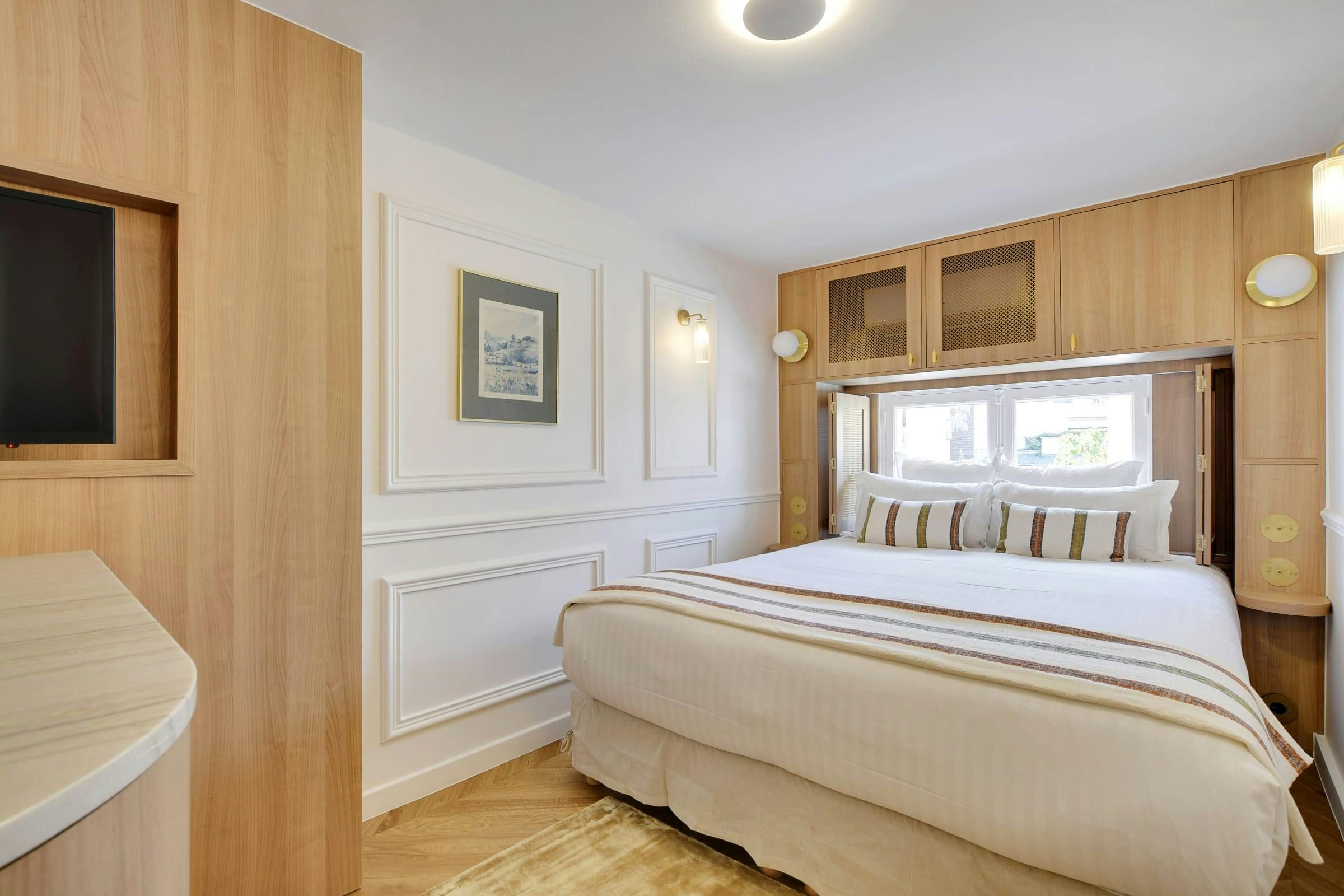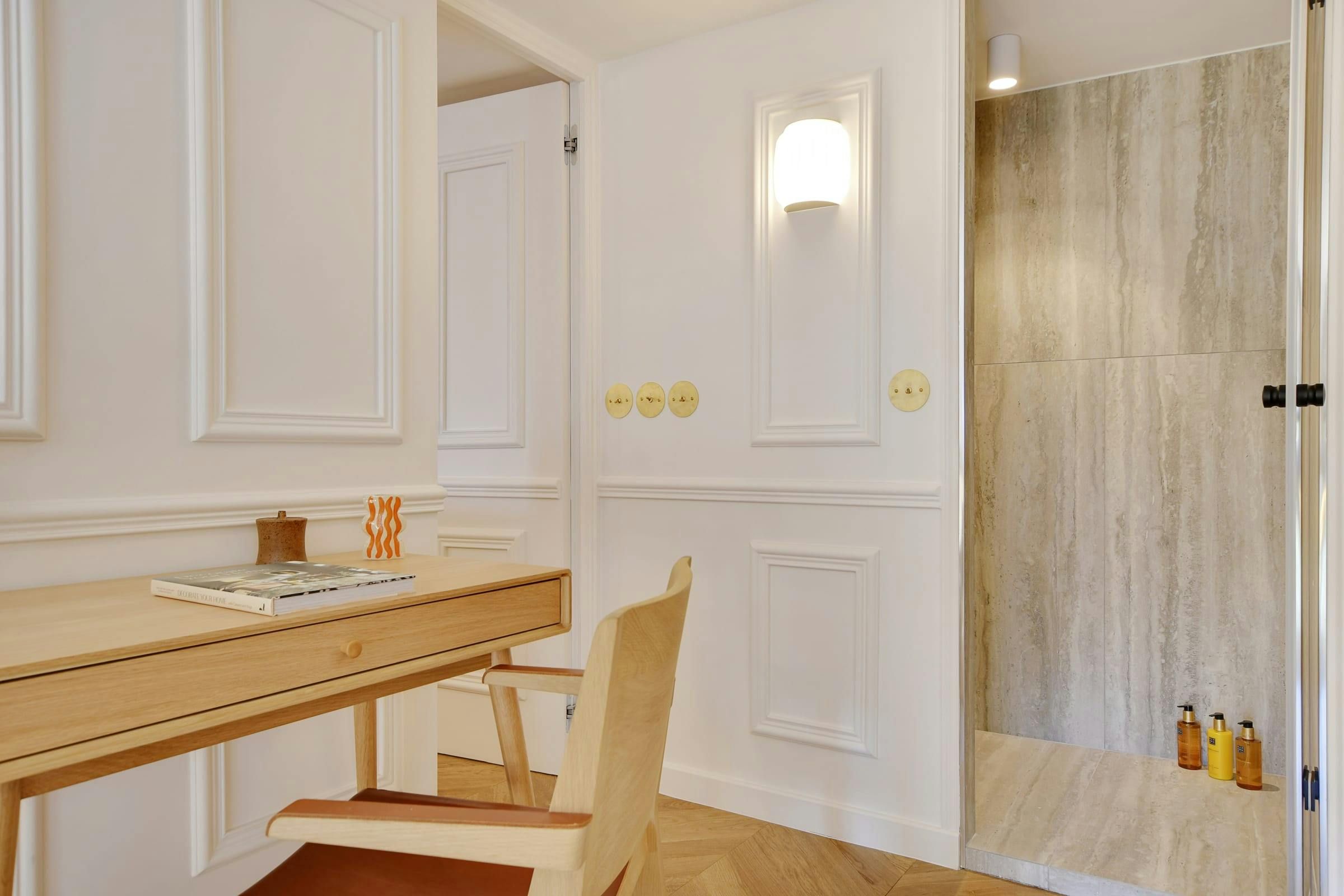 A perfect pad for a solo break or trip for two, this apartment brings comfort and convenience to a stay in Paris. The location is central, the style is elegant, and it has everything you need to feel right at home. A high ceiling and tall windows make the space feel bright and inviting, and the extra lounge on the mezzanine level means there’s more room to stretch out. Head outside to find cosy cafes and refined restaurants, a Metro station moments away, and landmarks within easy walking distance (we’re looking at you, Musée du Louvre).