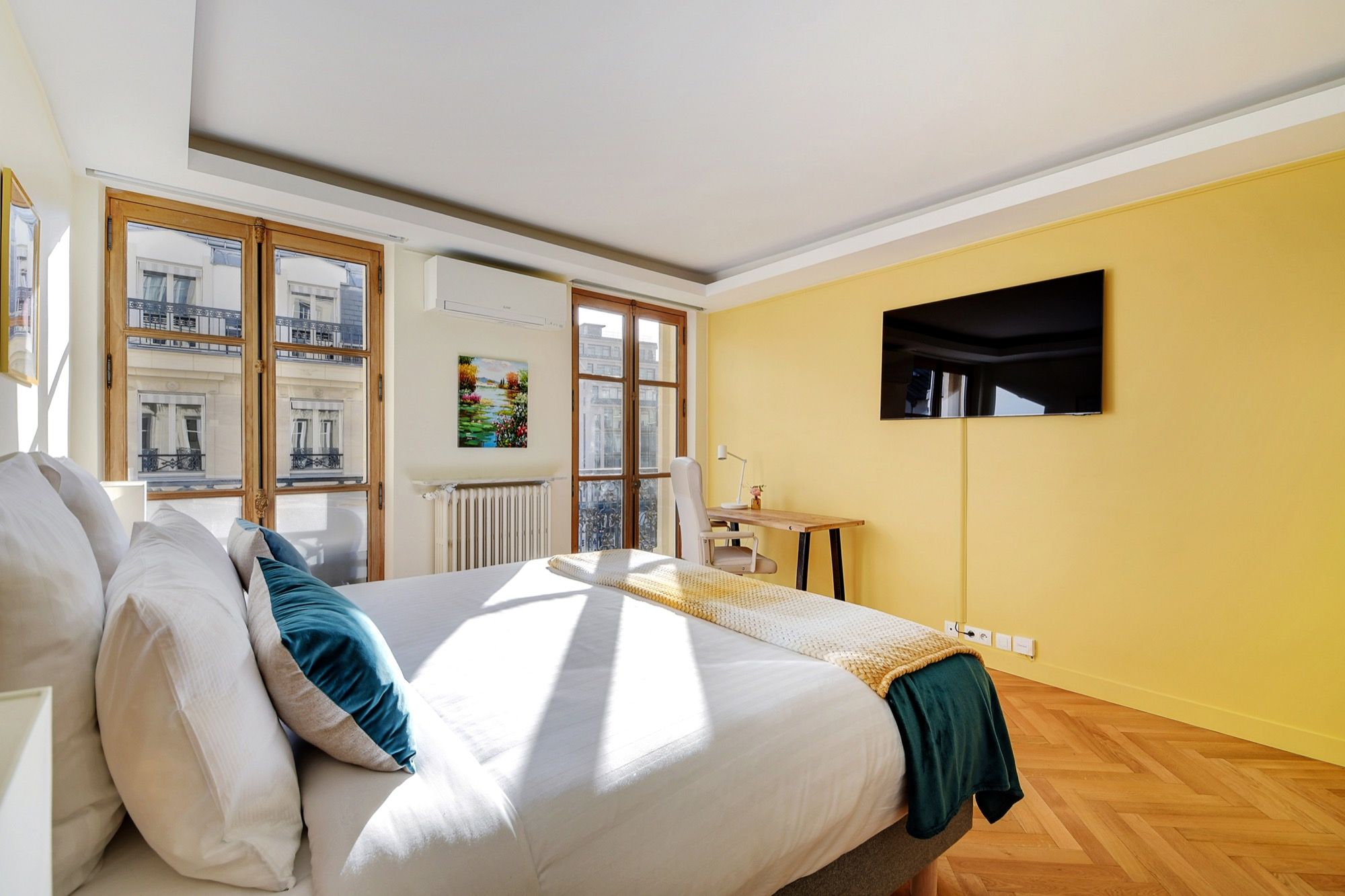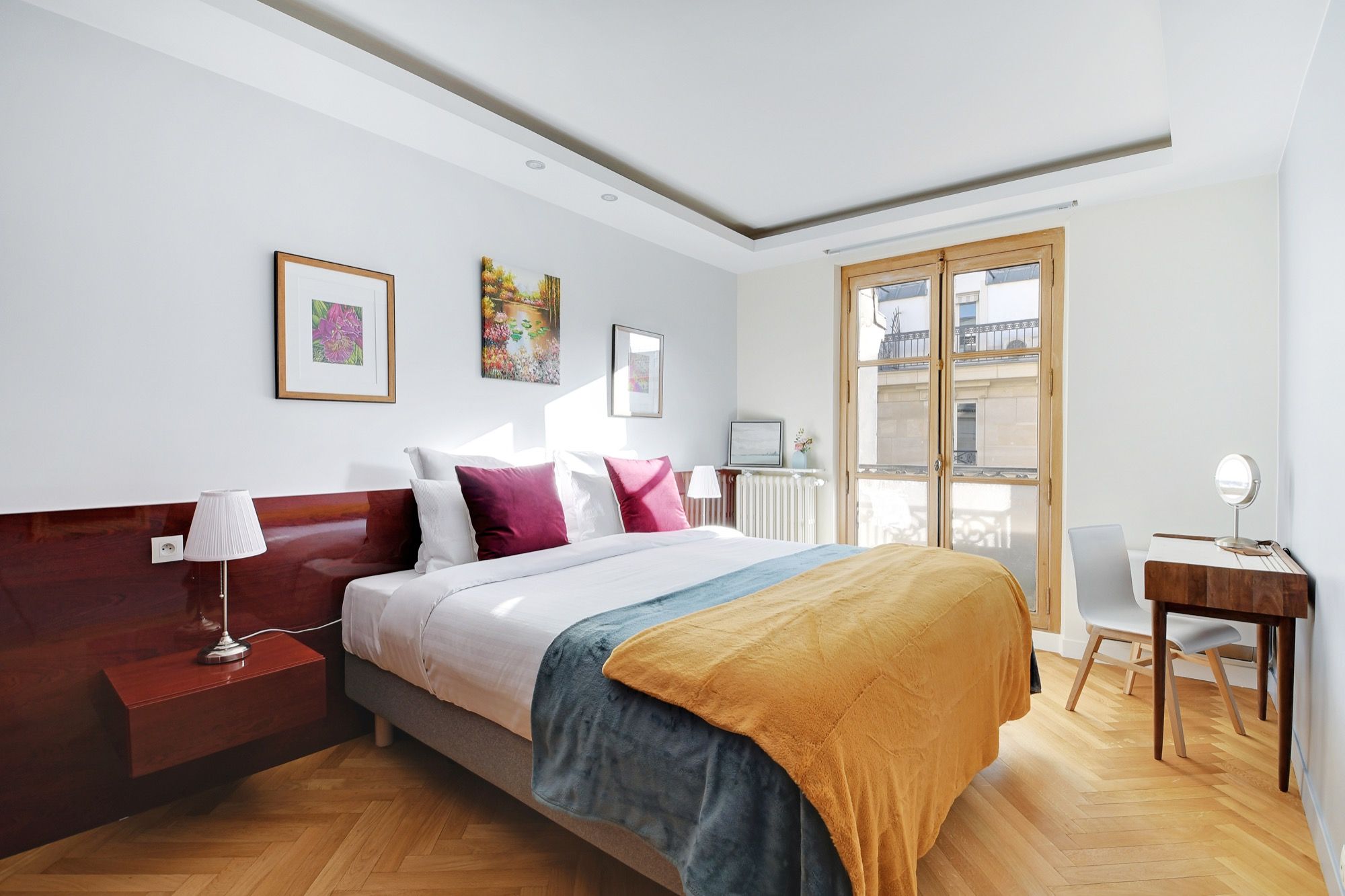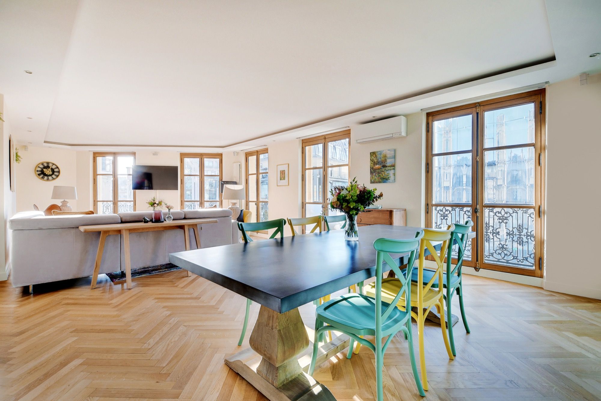 Overlooking Paris's iconic rue de Rivoli, this sunny corner apartment enjoys a wonderfully central location and lovely views from the Juliet balcony. Both bedrooms can be configured as kings or twin singles, and while children under 8 aren't permitted, we think it's a great choice for friends, couples, or even colleagues. You'll find the Louvre and the banks of the Seine just minutes away on foot, and crossing the river at Pont-Neuf takes you to the leafy Place Dauphine and its charming eateries. To top it all off, the nearby metro stations make this a great spot whether you're commuting or seeing the sights.