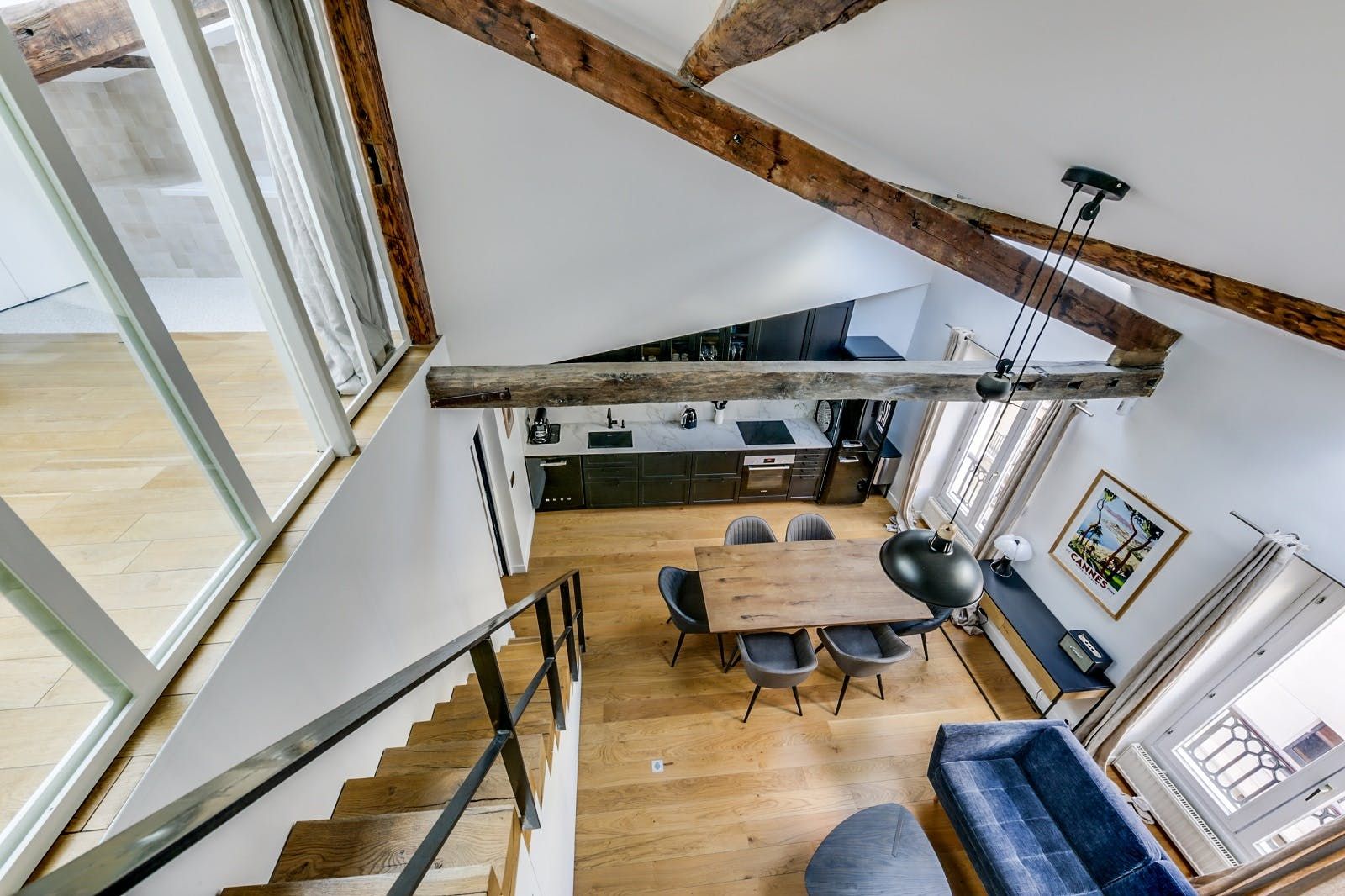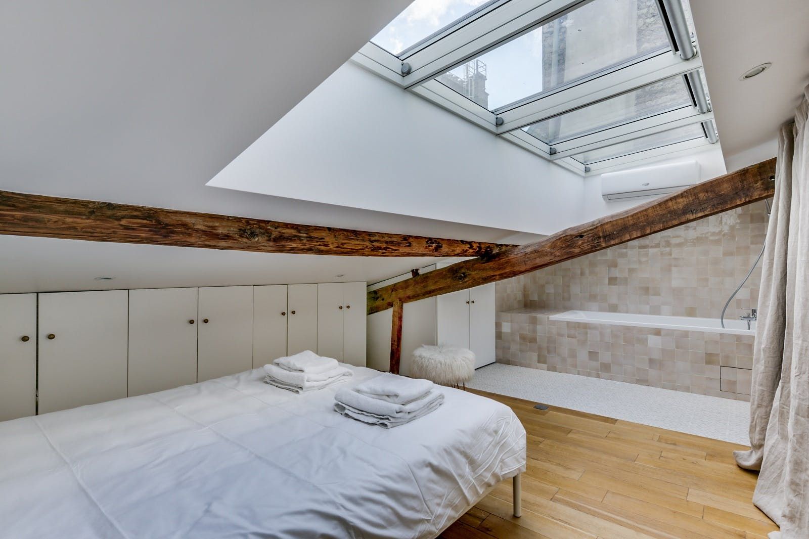 When it's finally time to rest up, this Parisian bolthole is a joy to return home to. The galleried open concept living space brings all the wow factor, and by Parisian standards, this place is vast. Natural daylight floods through the floor-to-ceiling Juliet balcony windows, while industrial statement lighting and a matt black gallery kitchen bring all the loft-style vibes.