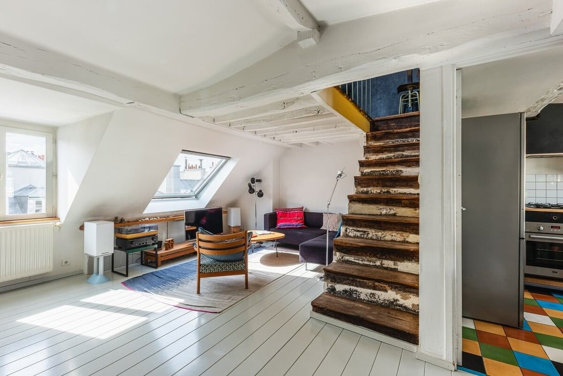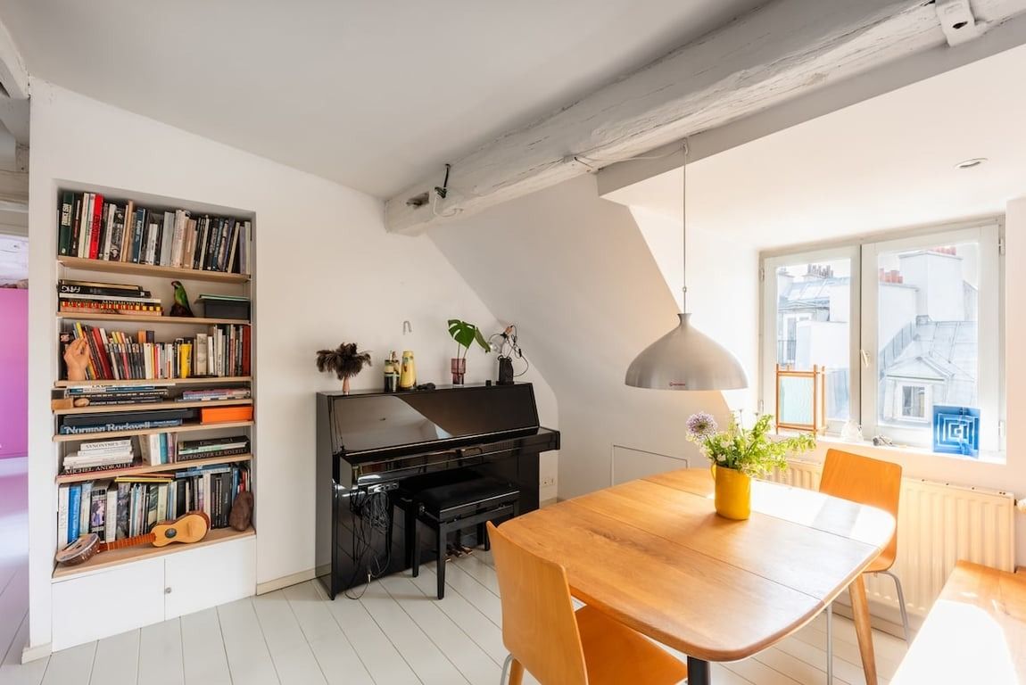 Located on one of the oldest streets in Paris, this apartment is brimming with character – think exposed wooden beams, antique furnishings, a piano and even a little library. The second bedroom is on the smaller side, but the views across the Parisian rooftops are picture-perfect. The neighbourhood has a vibrant, artistic energy, dotted with artisanal bakeries, cafés, and restaurants. Stroll along Canal Saint-Martin and pick up fresh produce at Marché Saint-Quentin. Fancy a day trip? Gare du Nord is just a ten-minute walk away, making this an ideal base for a quick city break.
