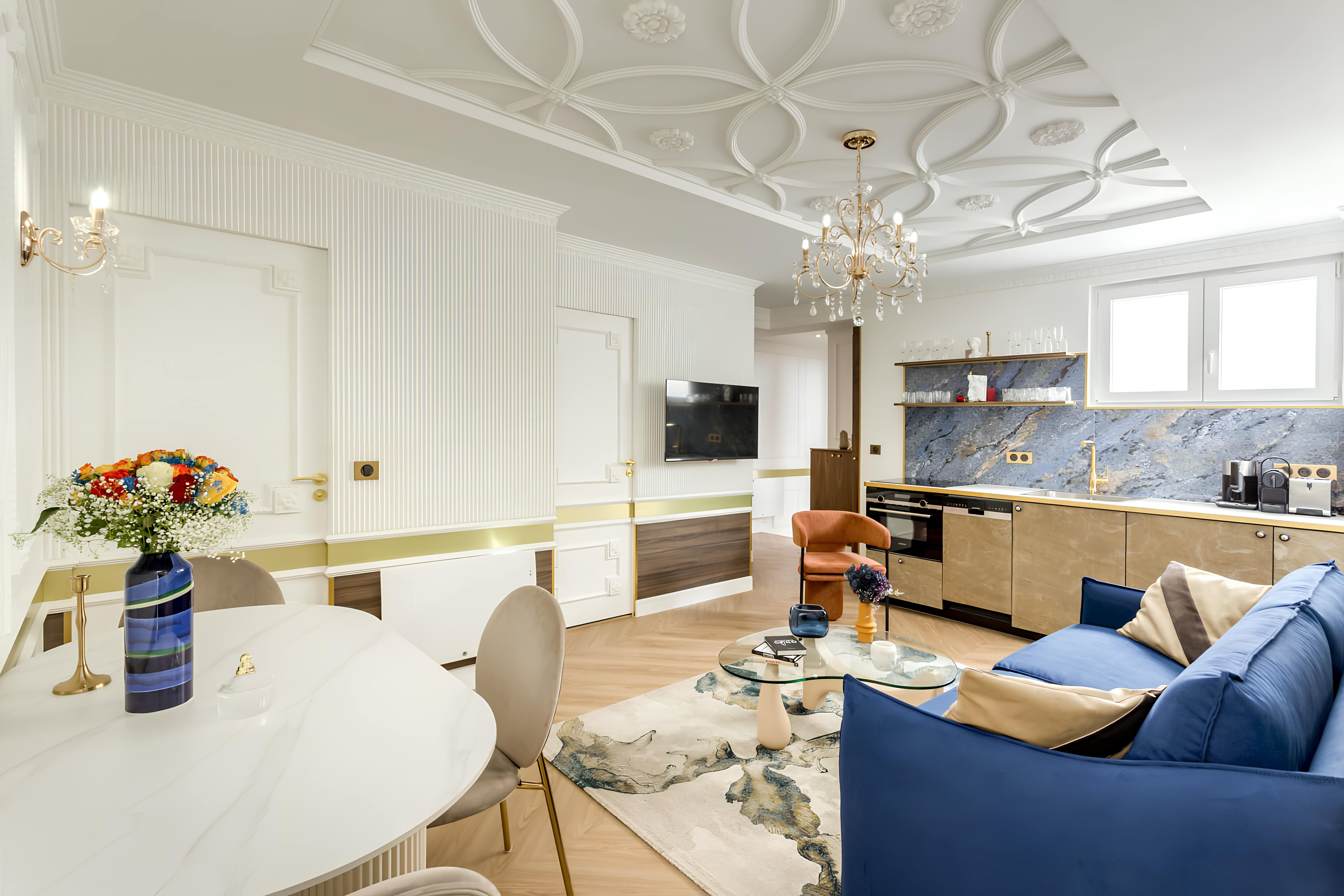 This two-bedroom apartment is in a prime location for a city break. Landmarks like the Panthéon and Notre-Dame are within easy strolling distance, there’s a Metro station moments away, and you can take your pick of restaurants without walking too far. Inside, plush furnishings and luxe details combine to create a premium Parisian experience. There’s a small yet sophisticated kitchen, and bedrooms reminiscent of a high-end hotel (plus a sofa bed that sleeps two). We think you’ll feel right at home.