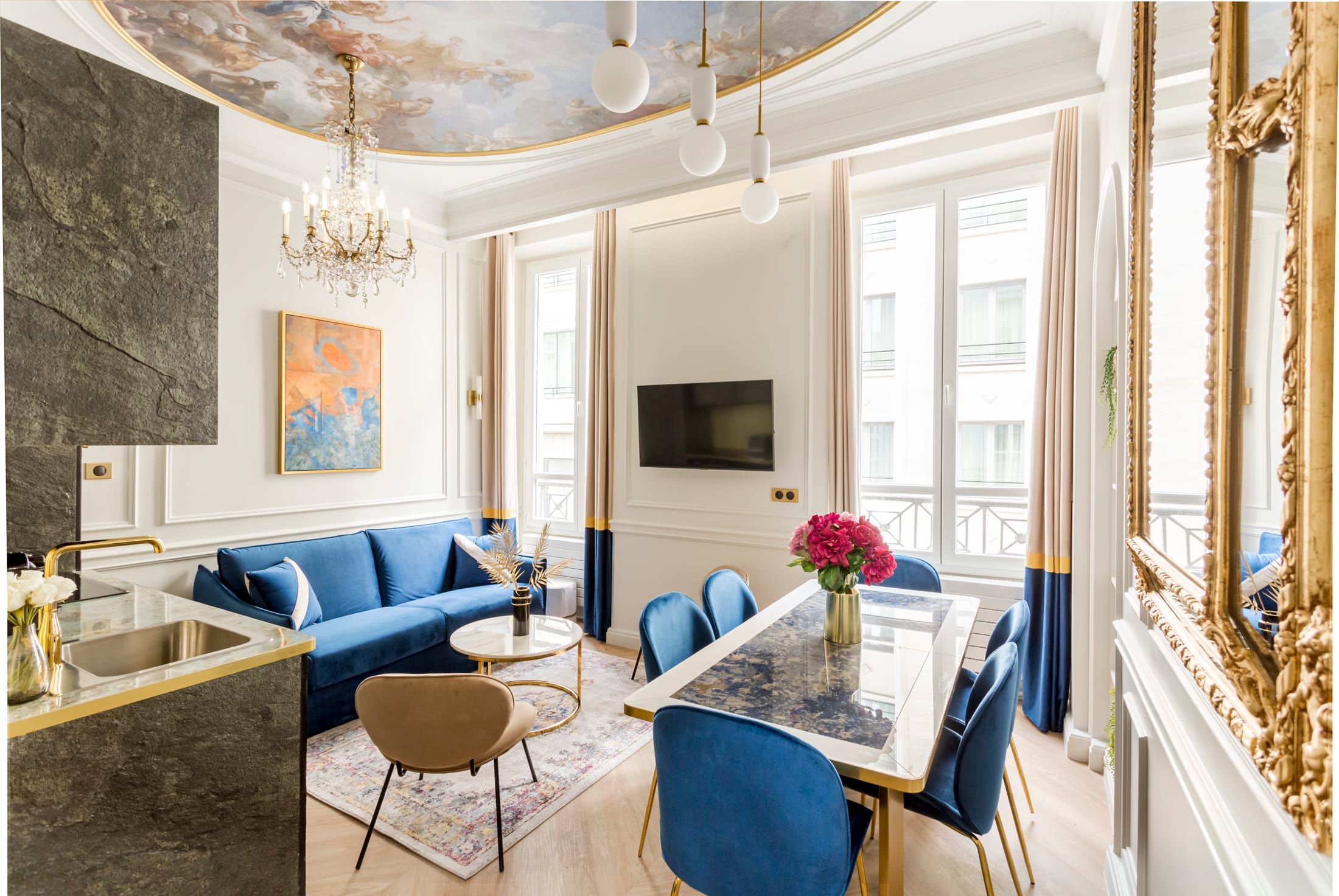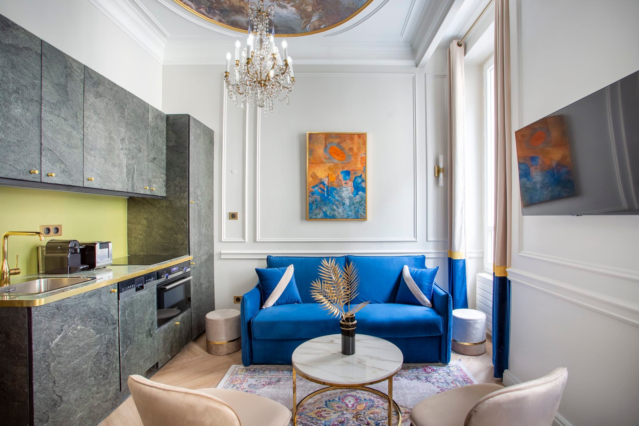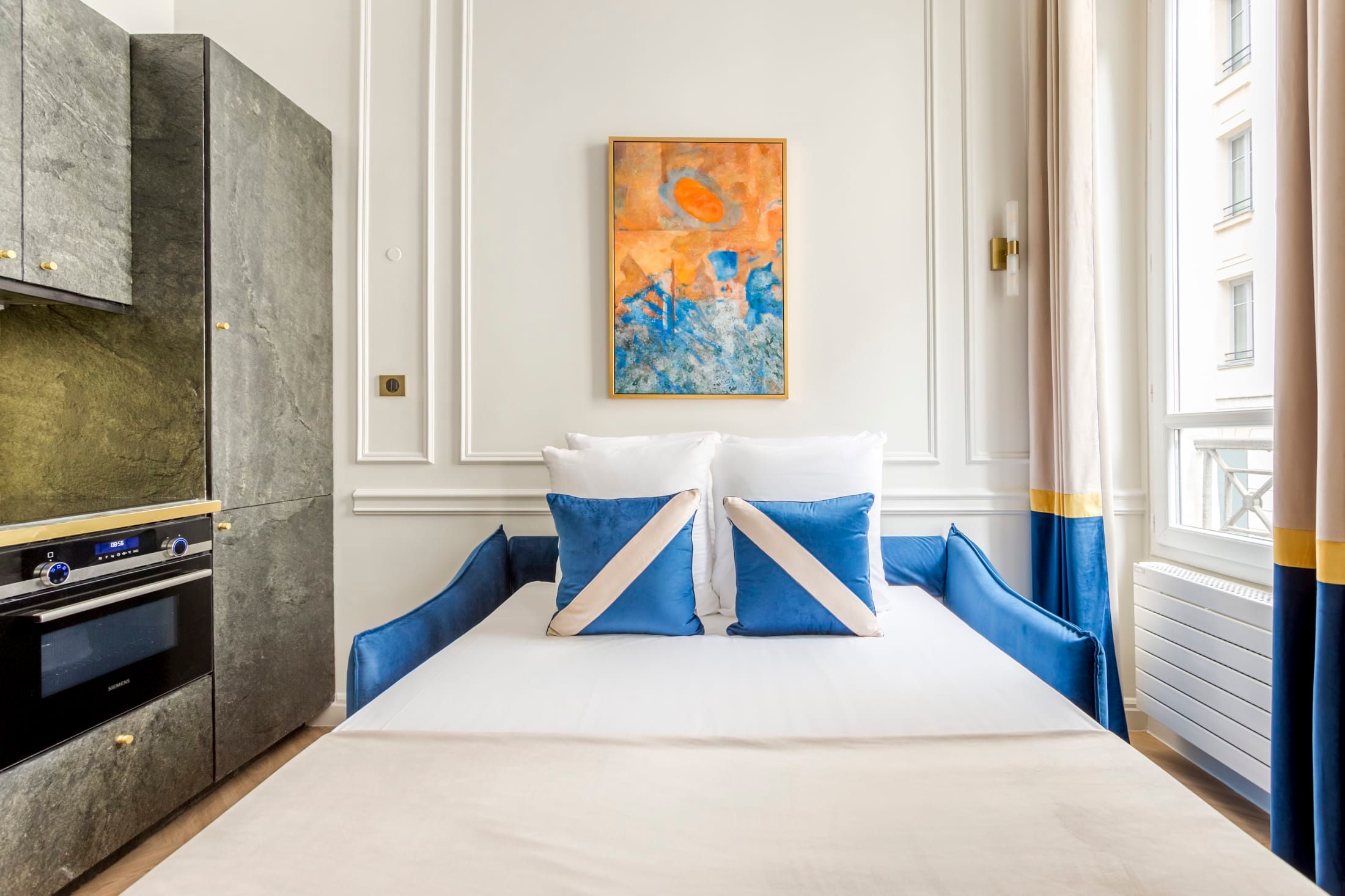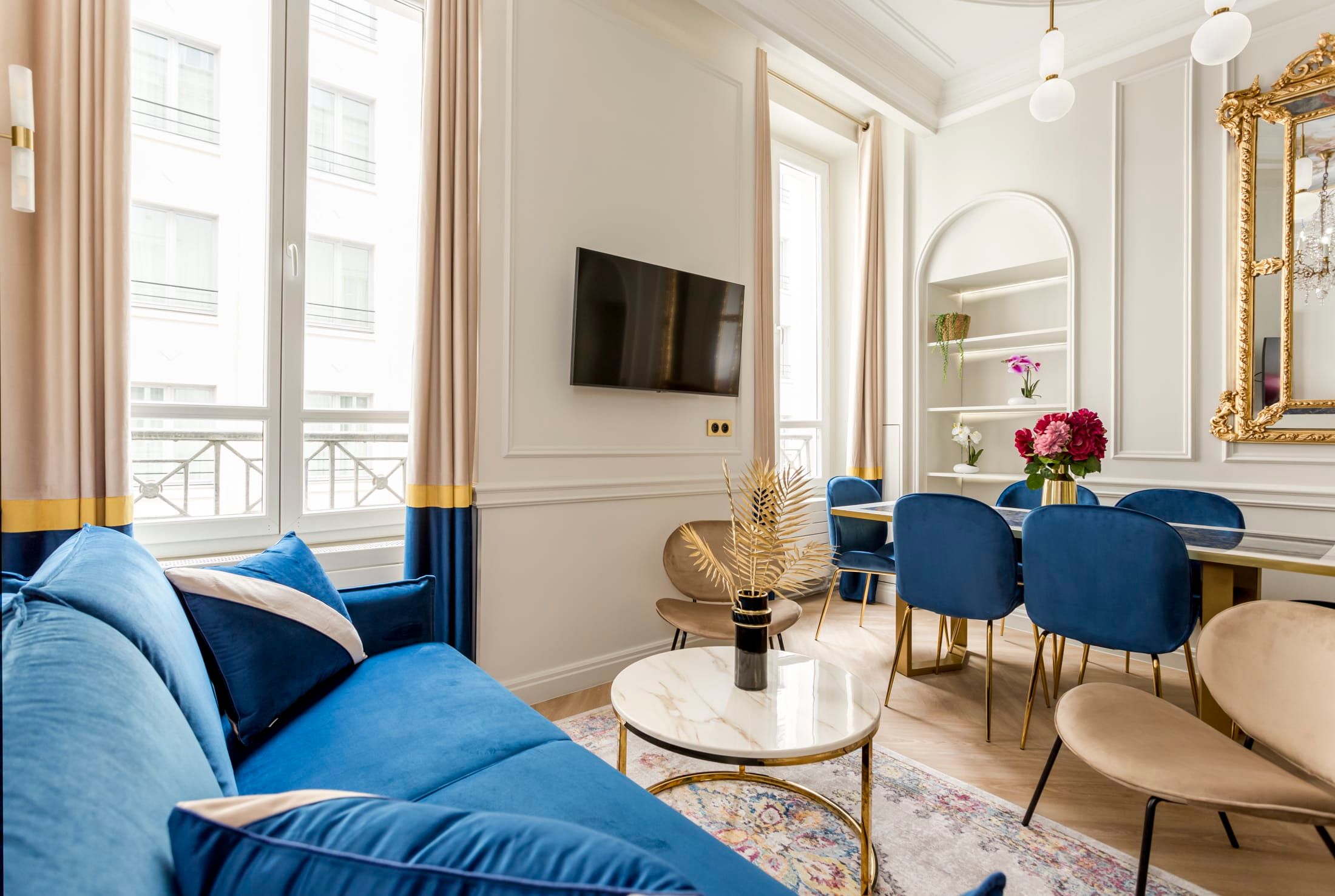 Located in a typical Parisian building from 1850, this stately apartment is your home away from home. You'll be seeing all the sights here, with the Louvre, Place Vendôme and Opéra Garnier within easy walking distance and a myriad of public transportation stops nearby to help you get the most out of your stay. Whether you're travelling for work or leisure, this home is a treat, and it's practical to boot. The cosy sofa bed provides additional sleeping space, and while the kitchen is very compact, you'll have all you need to whip up something light and tasty.