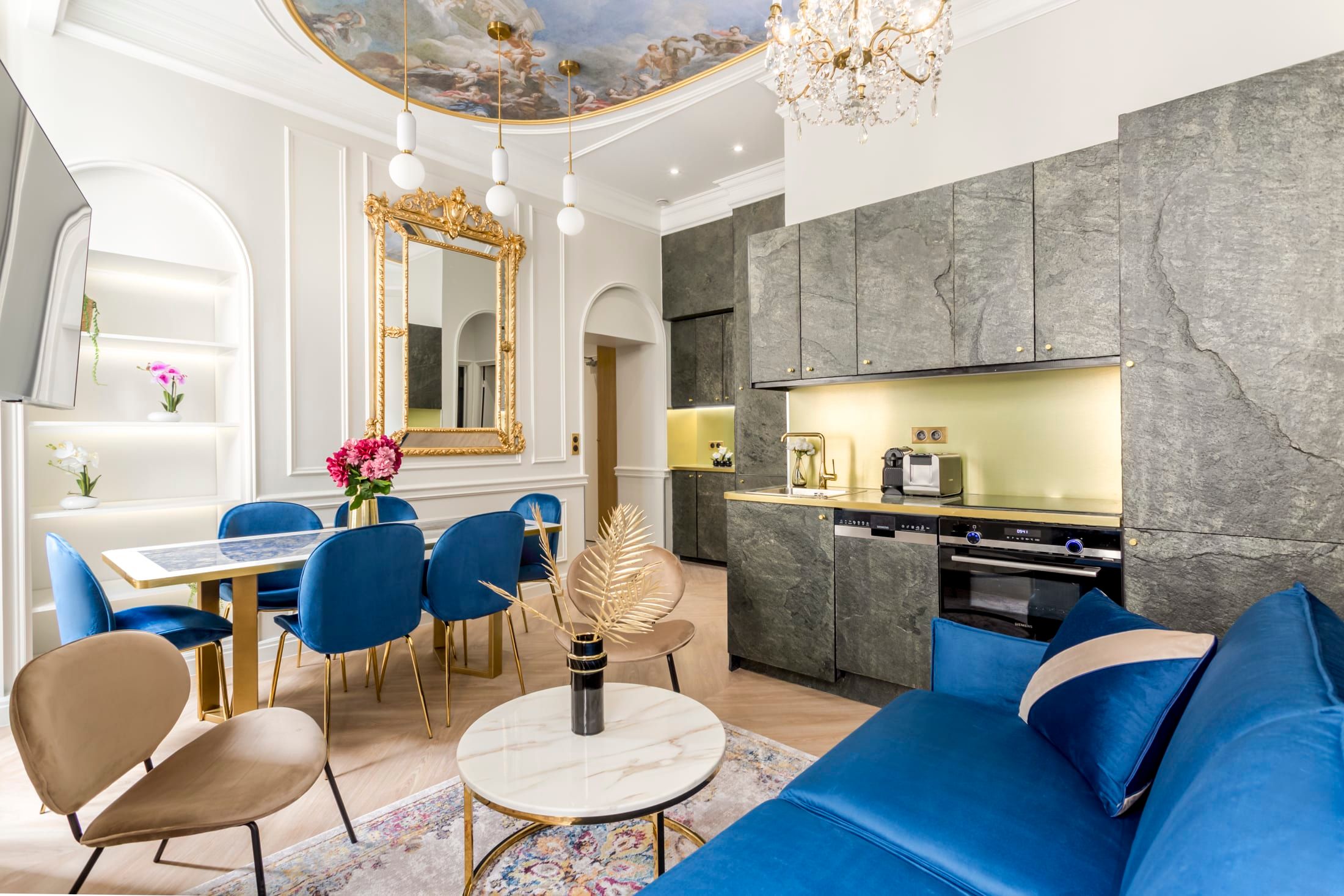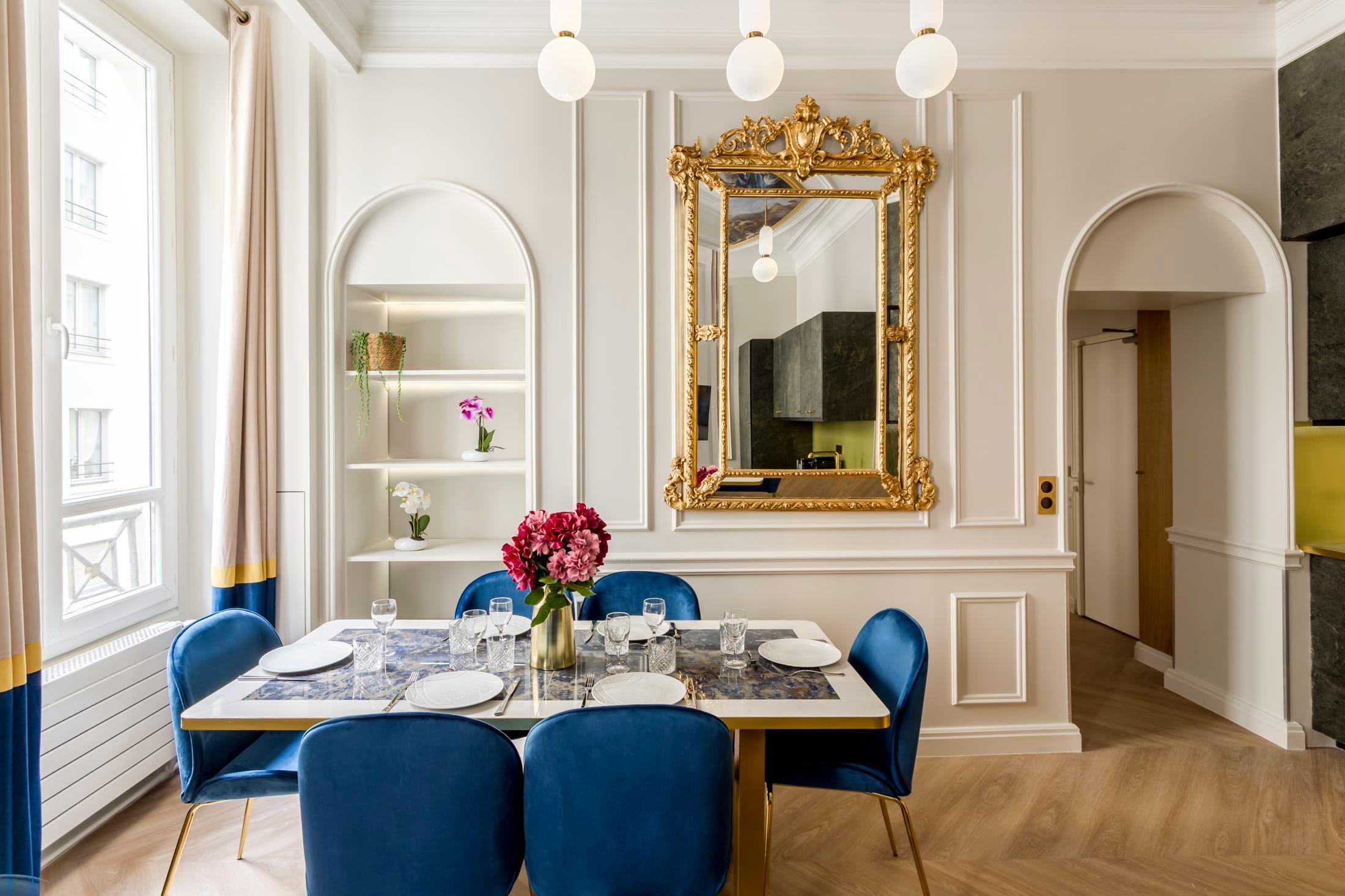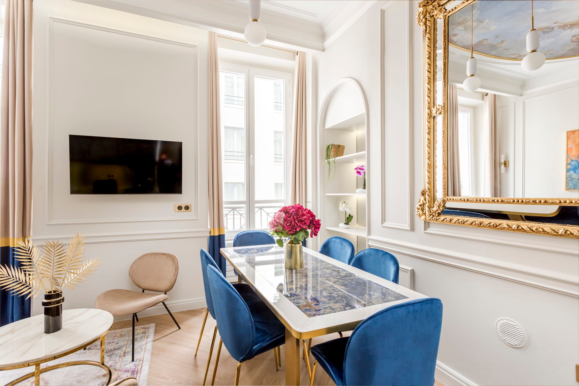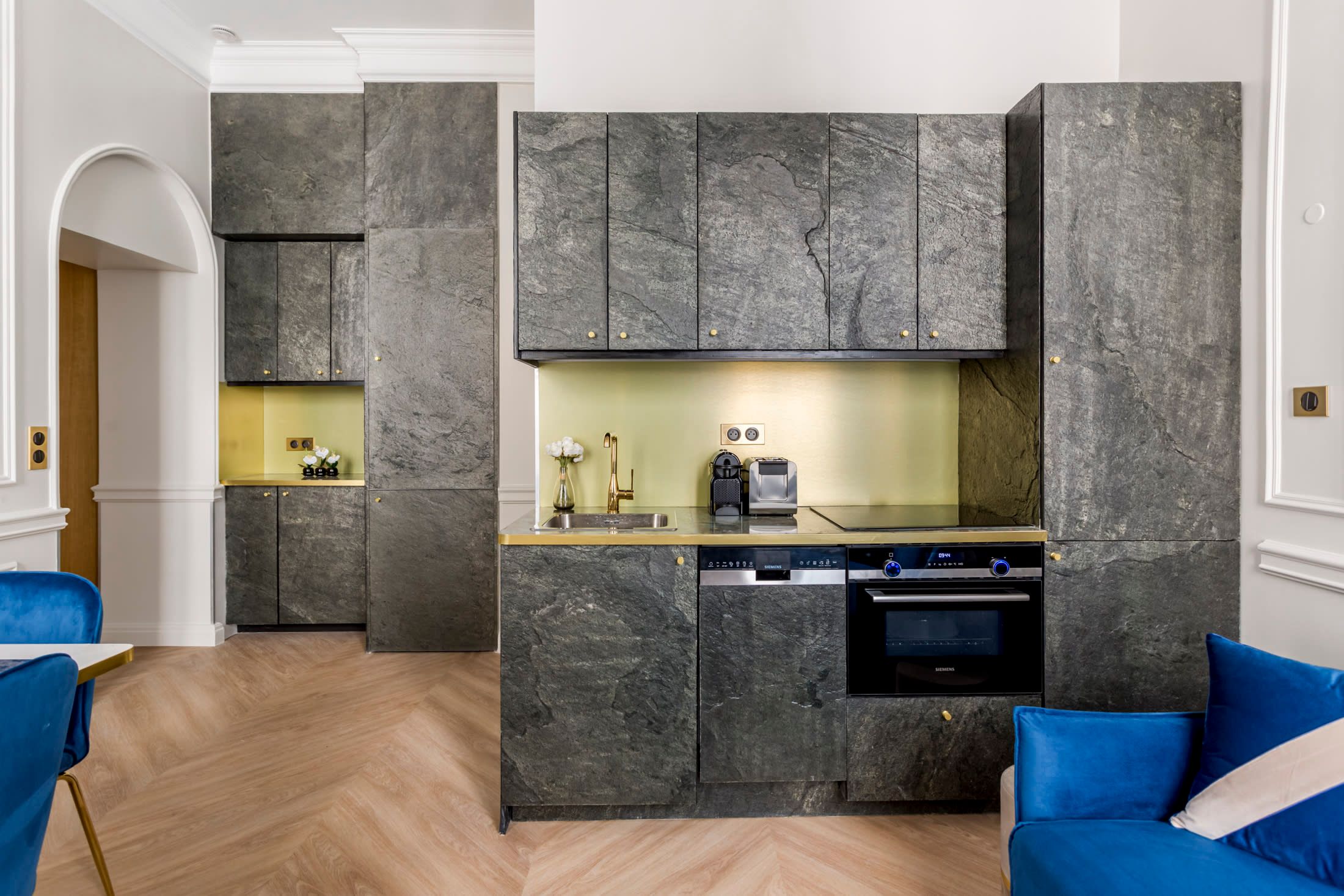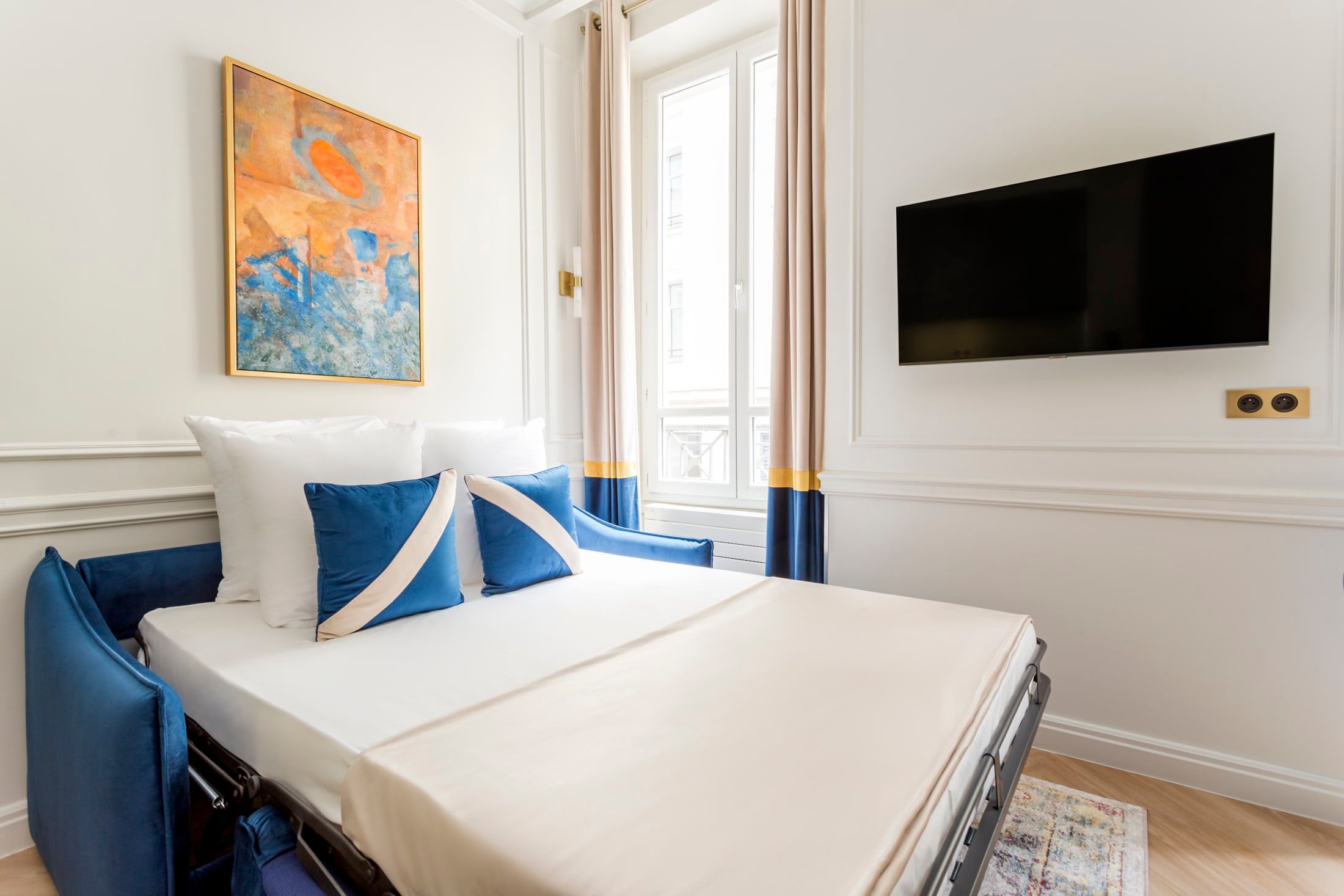 Located in a typical Parisian building from 1850, this stately apartment is your home away from home. You'll be seeing all the sights here, with the Louvre, Place Vendôme and Opéra Garnier within easy walking distance and a myriad of public transportation stops nearby to help you get the most out of your stay. Whether you're travelling for work or leisure, this home is a treat, and it's practical to boot. The cosy sofa bed provides additional sleeping space, and while the kitchen is very compact, you'll have all you need to whip up something light and tasty.