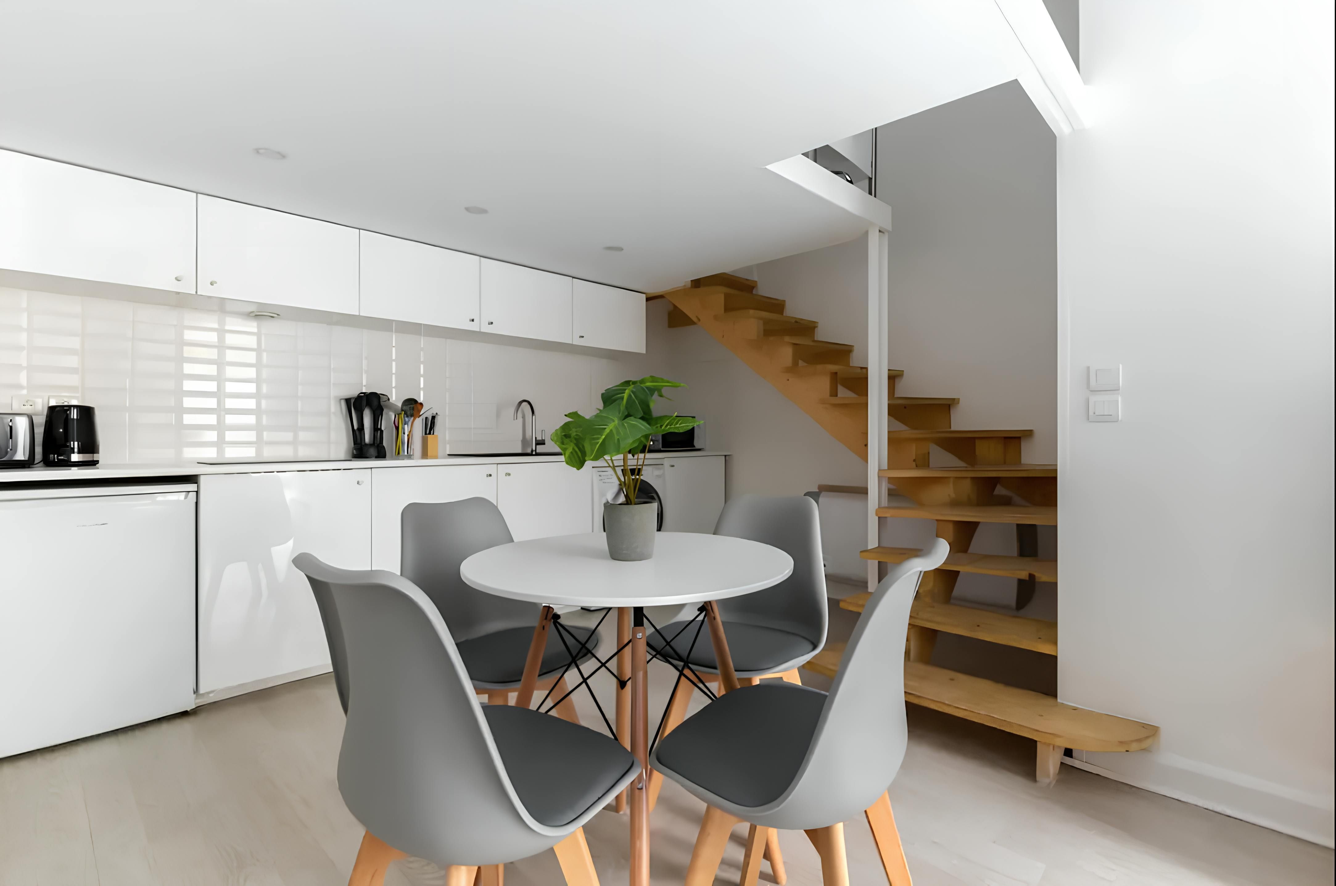 If you’re looking for fuss-free home in a central spot, then this Parisian apartment ticks both boxes. Located just a stone’s throw from the Arc de Triomphe, you’ll be within walking distance of the Champs-Élysées and the Eiffel Tower. While this home is ideal for a couple or solo traveller, the full occupancy layout here won’t suit everyone – the bedroom is on a semi-open mezzanine level, and guests three and four will be sleeping on a sofa bed in the living area below, so privacy is limited. It’s also worth noting that the small kitchen doesn’t have an oven, although with eateries aplenty on the doorstep, that needn’t be a problem.
