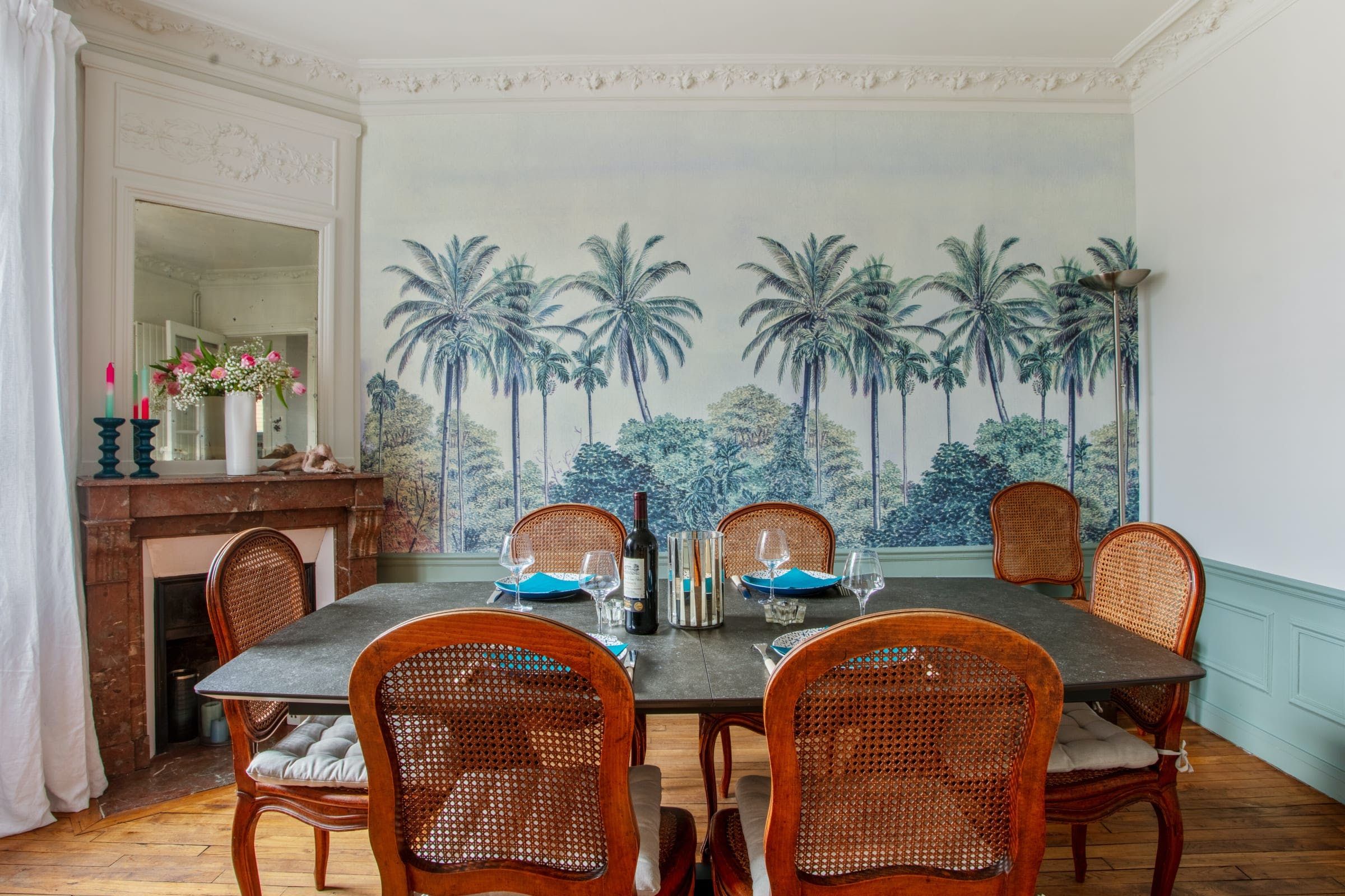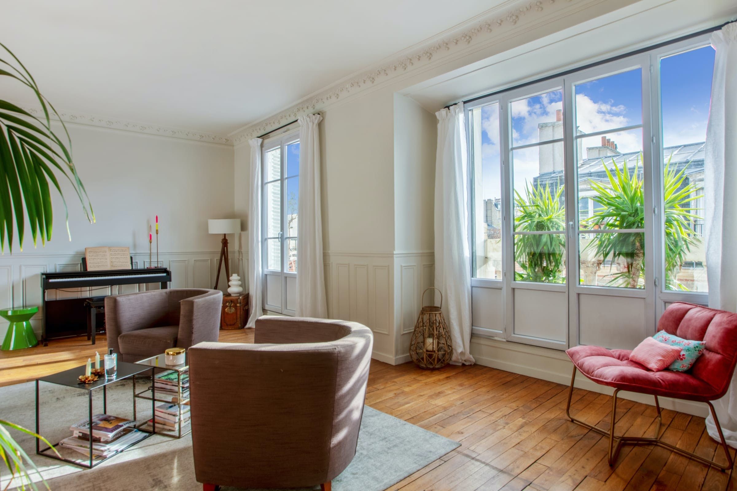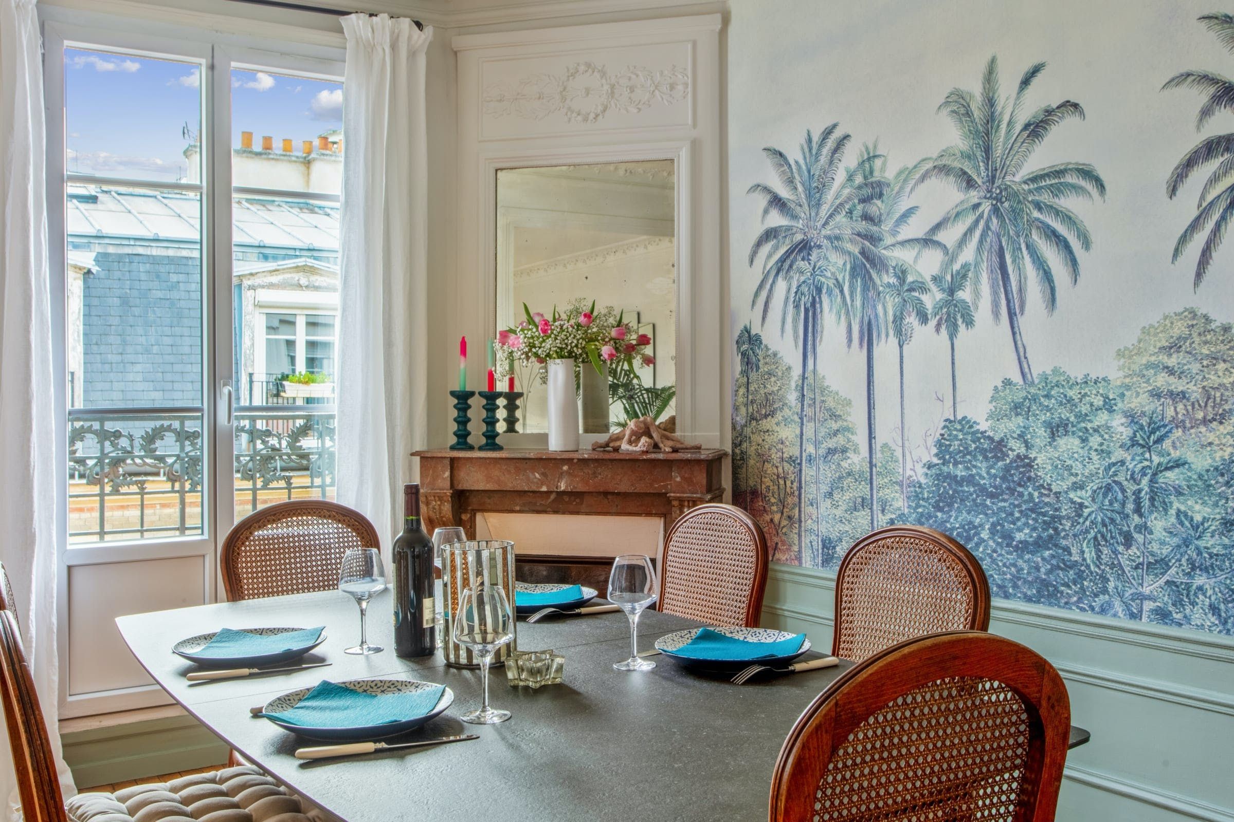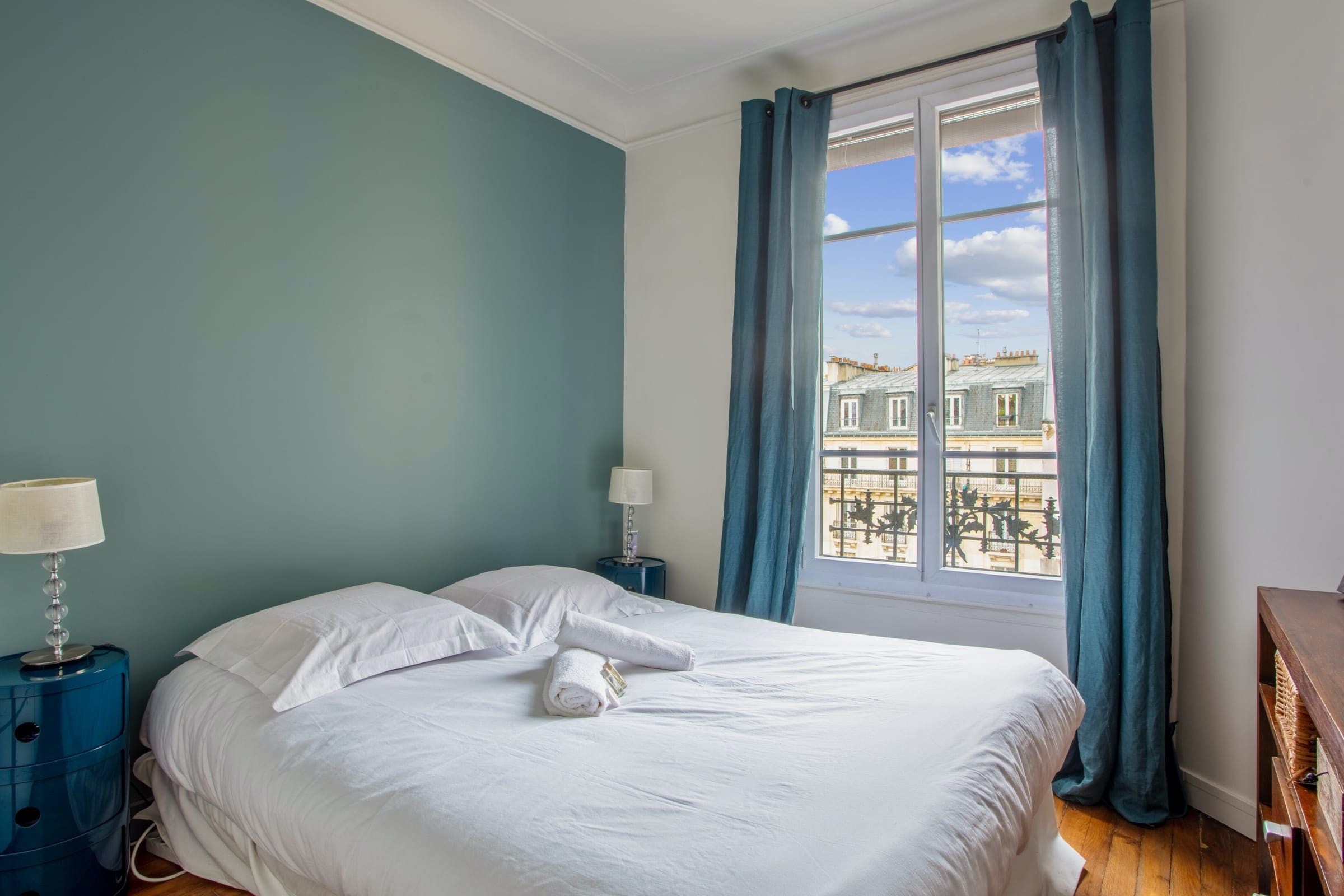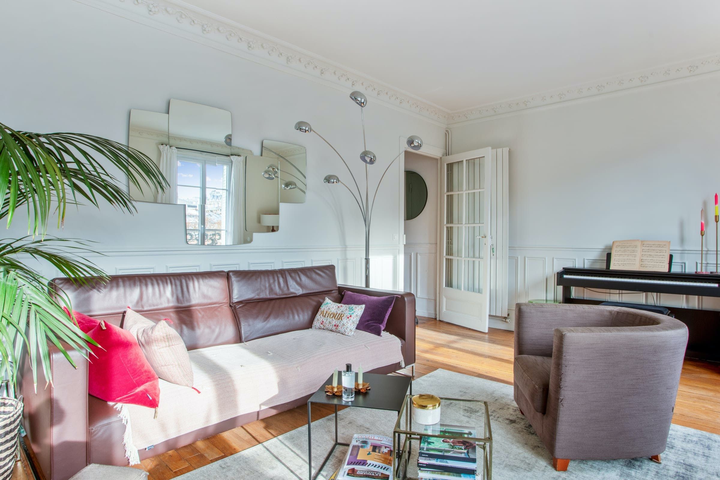 Parisian charm abounds in this delightful apartment. You can look forward to period parquet flooring, a fireplace, and large windows that flood the space with light. The star feature here is undoubtedly the petite balcony, which looks out over Parisian rooftops and the local church – it’s a peaceful spot for your morning coffee and croissant. The apartment is in the 15th arrondissement in a peaceful, family-friendly area. The neighbourhood is full of quiet streets, pleasant shops, and parks. When you want to see more of Paris, there are excellent transport links nearby.