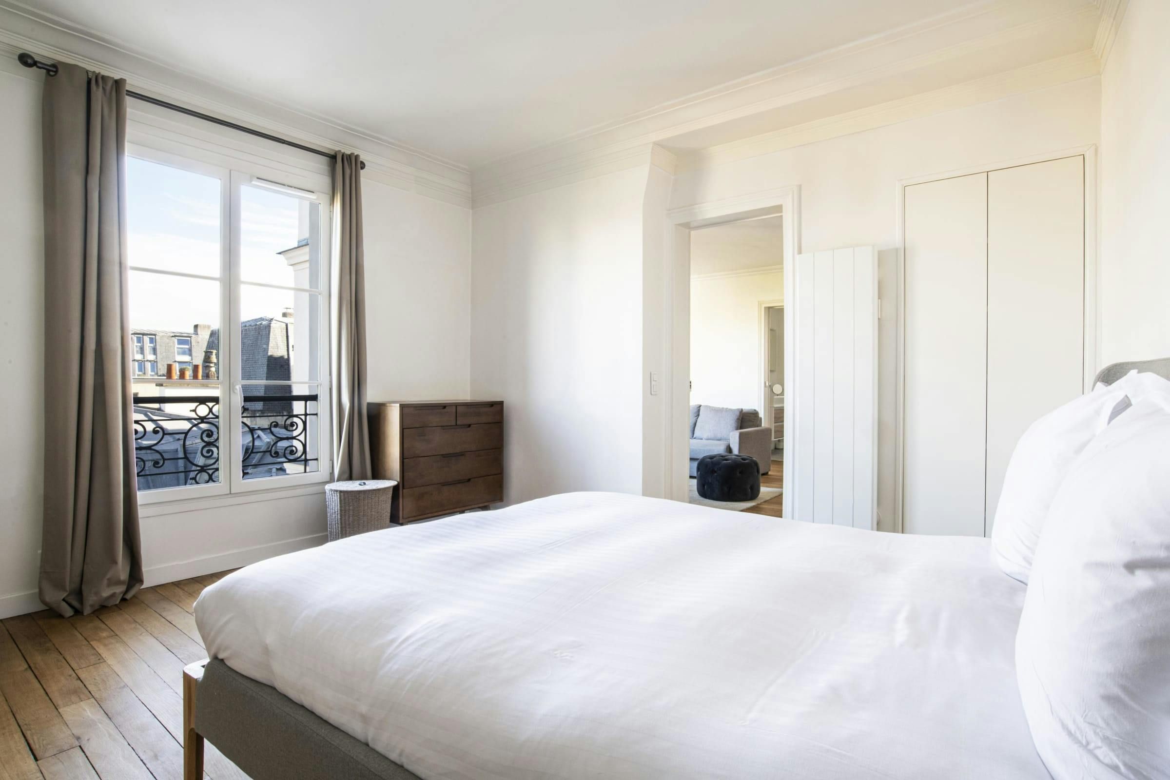 Tucked away in a classic freestone building, this apartment places you right in the cultural heart of Le Marais. Museums, galleries, and Parisian cafés are on your doorstep, yet up on the fifth floor (don’t worry, there’s a lift), you’ll find a calm retreat above the bustle. Light pours into the living space, where a dining nook and fully equipped kitchen make evenings in just as inviting as nights out. With hotel-quality bedding and a queen-size mattress, restful sleep comes easy. Thoughtful touches like a Nespresso machine and smart TV round off the stay – making this a true home from home in the city.